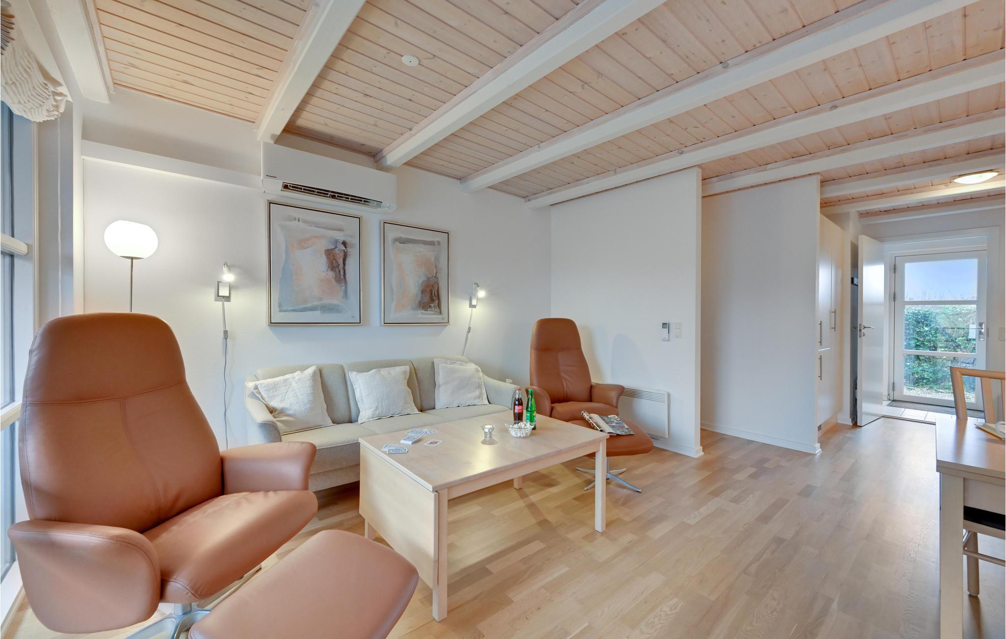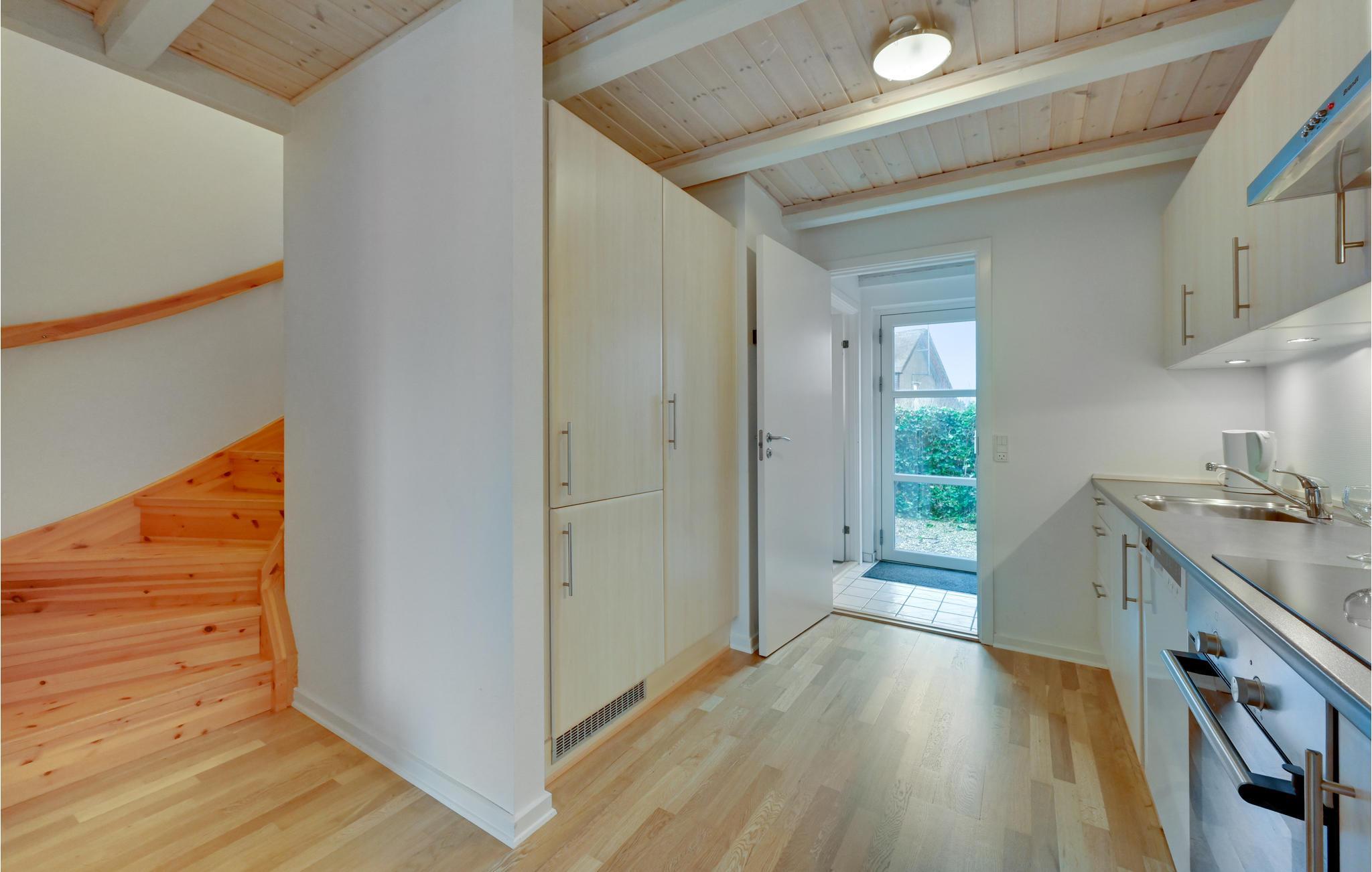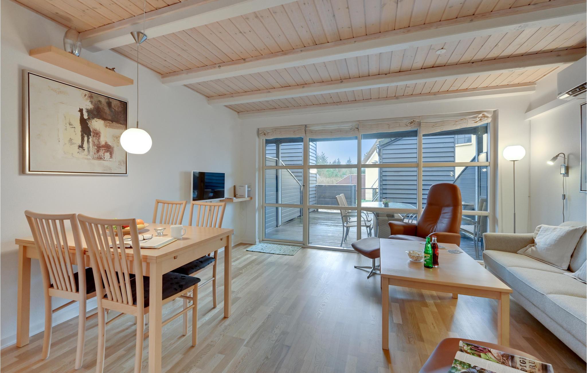 Der venter jer en dejlig feriebolig beliggende meget tæt på den internationale golfbane Henne Golf samt et større ridecenter. Her er tale om hyggeligt indrettet feriebolig med et godt og rummeligt køkken/alrum med loft til kip, der giver en lys og luftig atmosfære, man ikke kan undgå at slappe af i. Fra stuen går en trappe op til førstesalen, hvor de to soveværelser er at finde. Fra køkken/alrummet er der udgang til den delvis overdækkede terrasse.