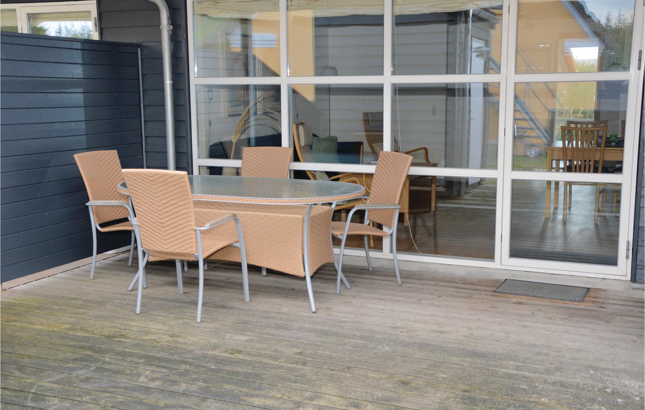 Feriehuset er beliggende midt imellem to tilsvarende boliger, og har derfor en læfuld morgenterrasse, hvor I kan nyde morgenkaffen i ro og mag, inden I begiver jer på udflugt i området.