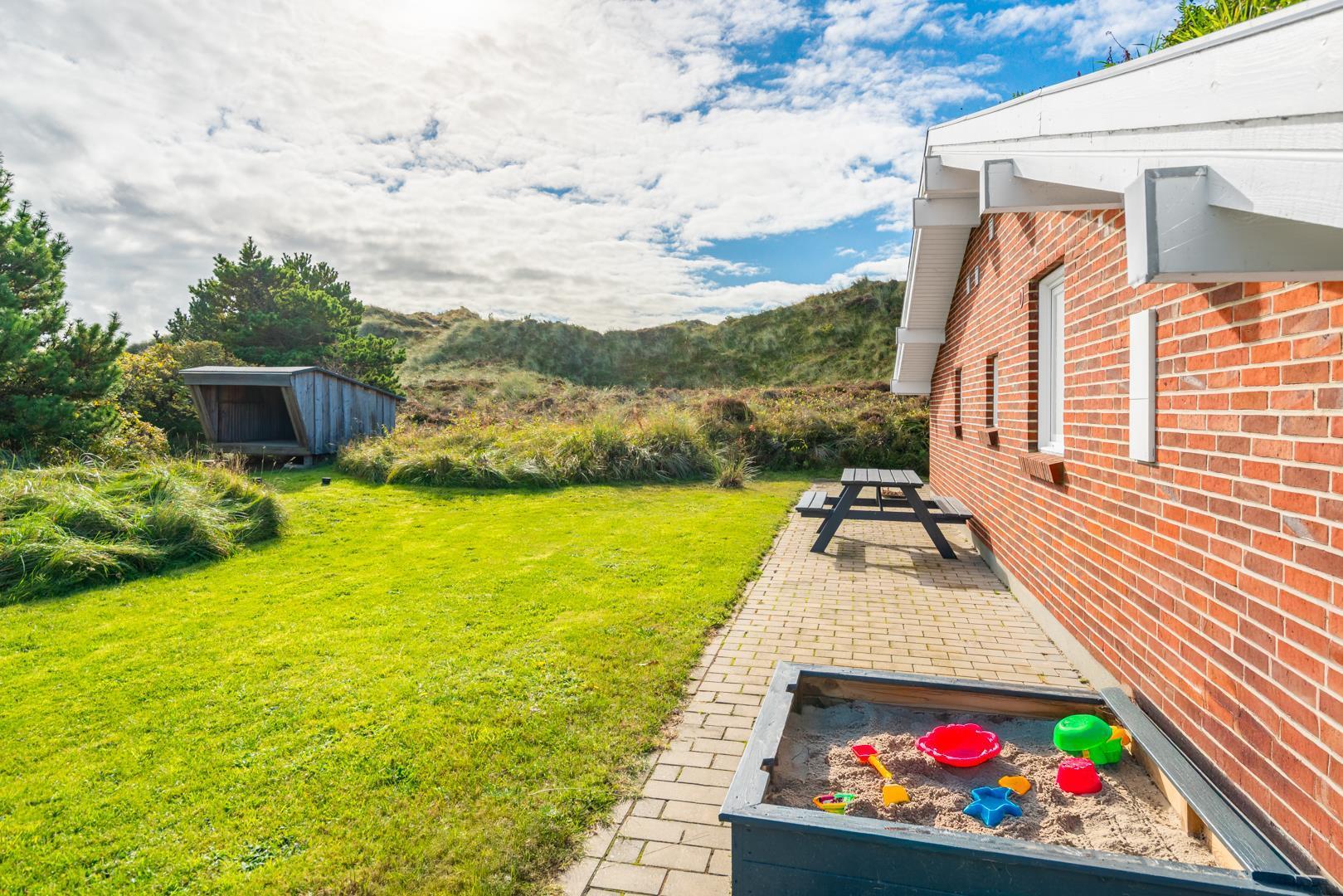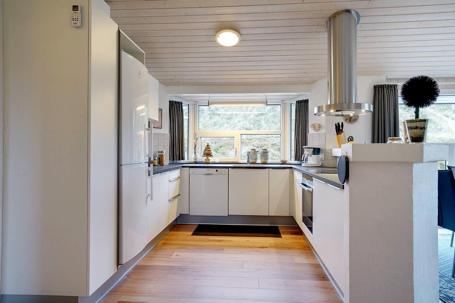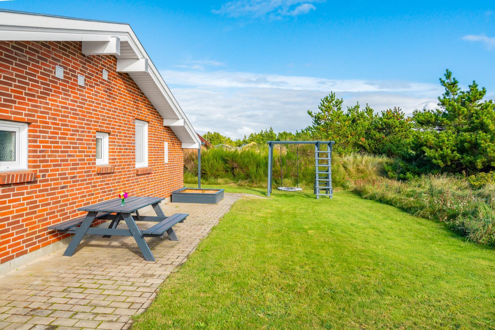 Porsevej 38 Henne Strand har veludstyret og lækkert køkken(2019) i åben forbindelse med spisekrogen, herfra er der direkte ud gang til den overdækkede terrasse. Stor entre med plads til overtøj og sko. 4 gode soverum. Der er også tænkt på de små gæster, så der er gynge og sandkasse på grunden, samt shelter. Et rigtig dejligt og meget velpasset sommerhus, hvor rammerne er tilstede for en dejlig ferie ved Henne Strand hele året. Lige uden for døren er der cykelsti til Filsø og Blåbjerg Plantage.