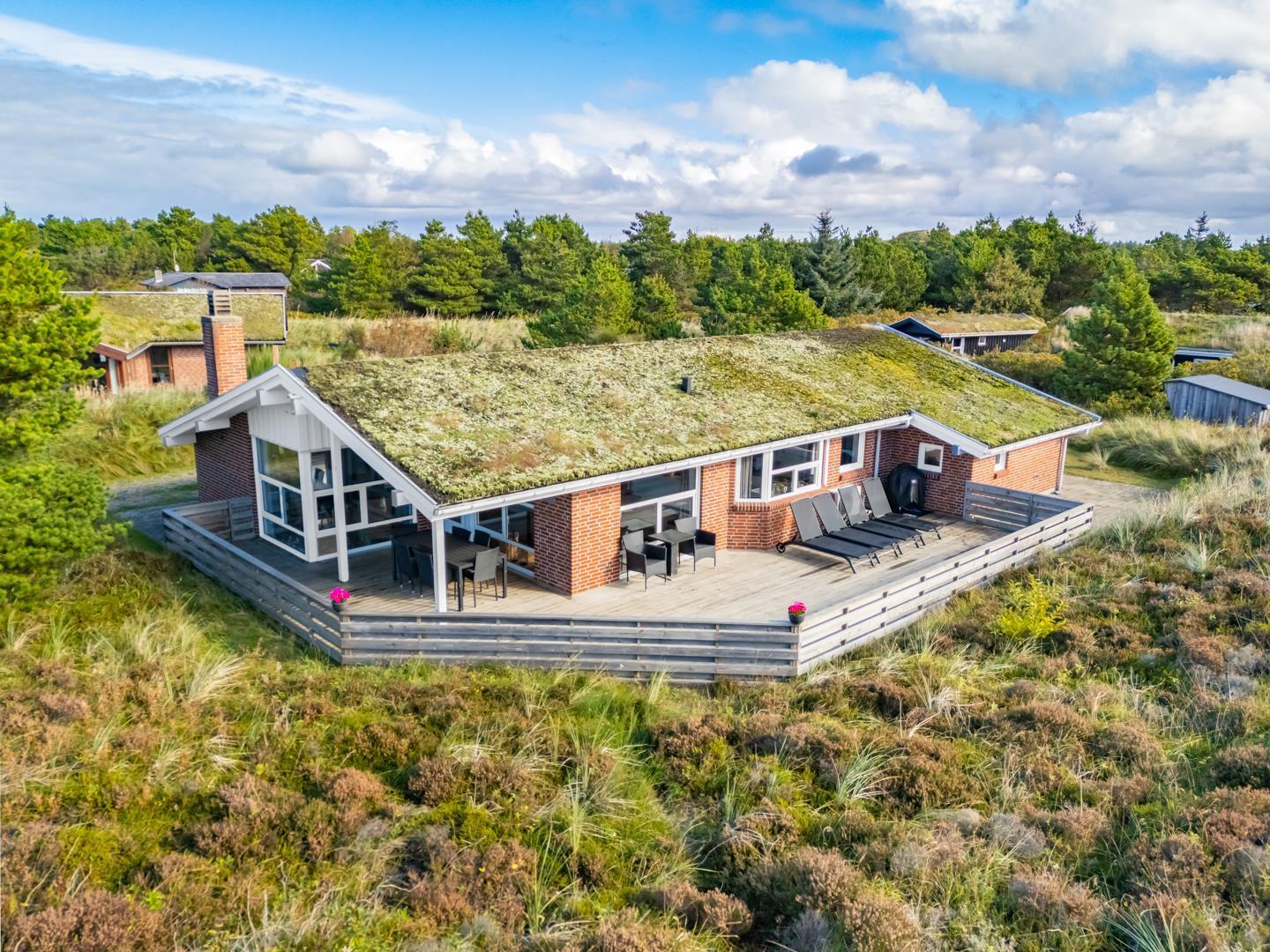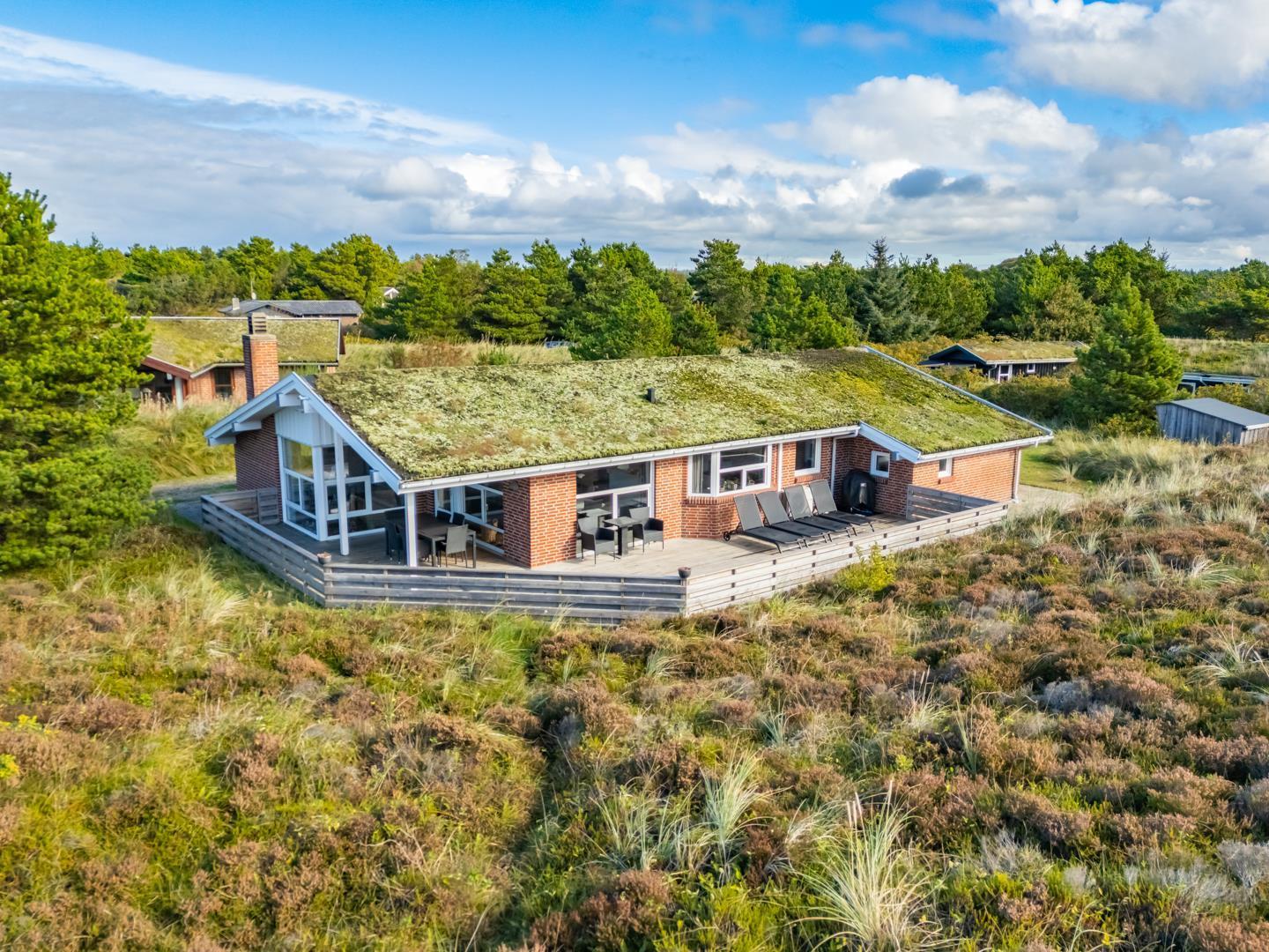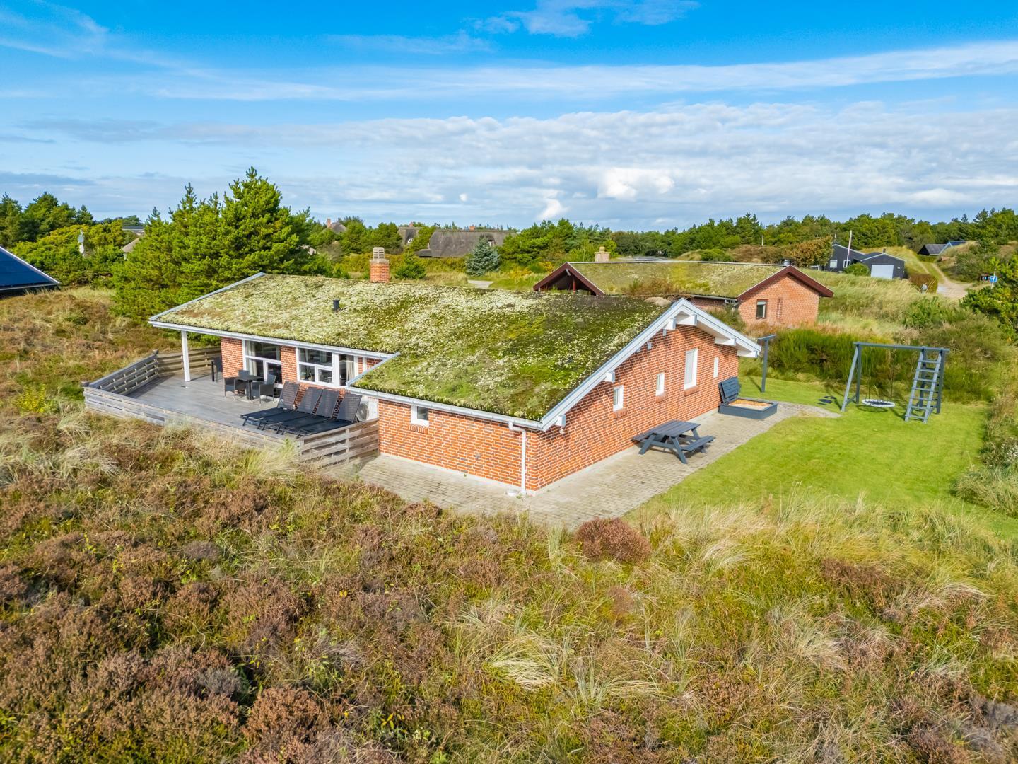 Porsevej 38 Henne Strand har veludstyret og lækkert køkken(2019) i åben forbindelse med spisekrogen, herfra er der direkte ud gang til den overdækkede terrasse. Stor entre med plads til overtøj og sko. 4 gode soverum. Der er også tænkt på de små gæster, så der er gynge og sandkasse på grunden, samt shelter. Et rigtig dejligt og meget velpasset sommerhus, hvor rammerne er tilstede for en dejlig ferie ved Henne Strand hele året. Lige uden for døren er der cykelsti til Filsø og Blåbjerg Plantage.
