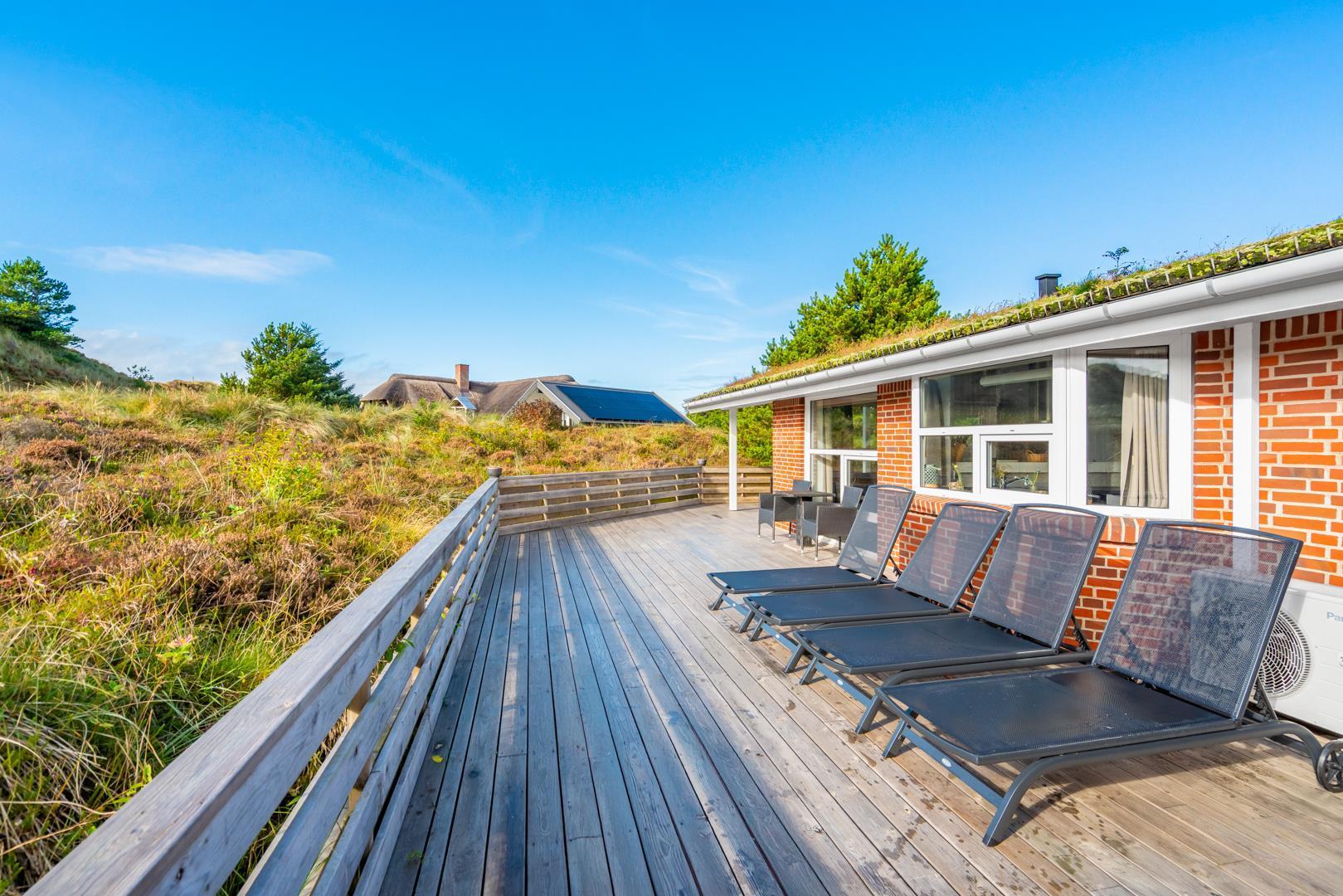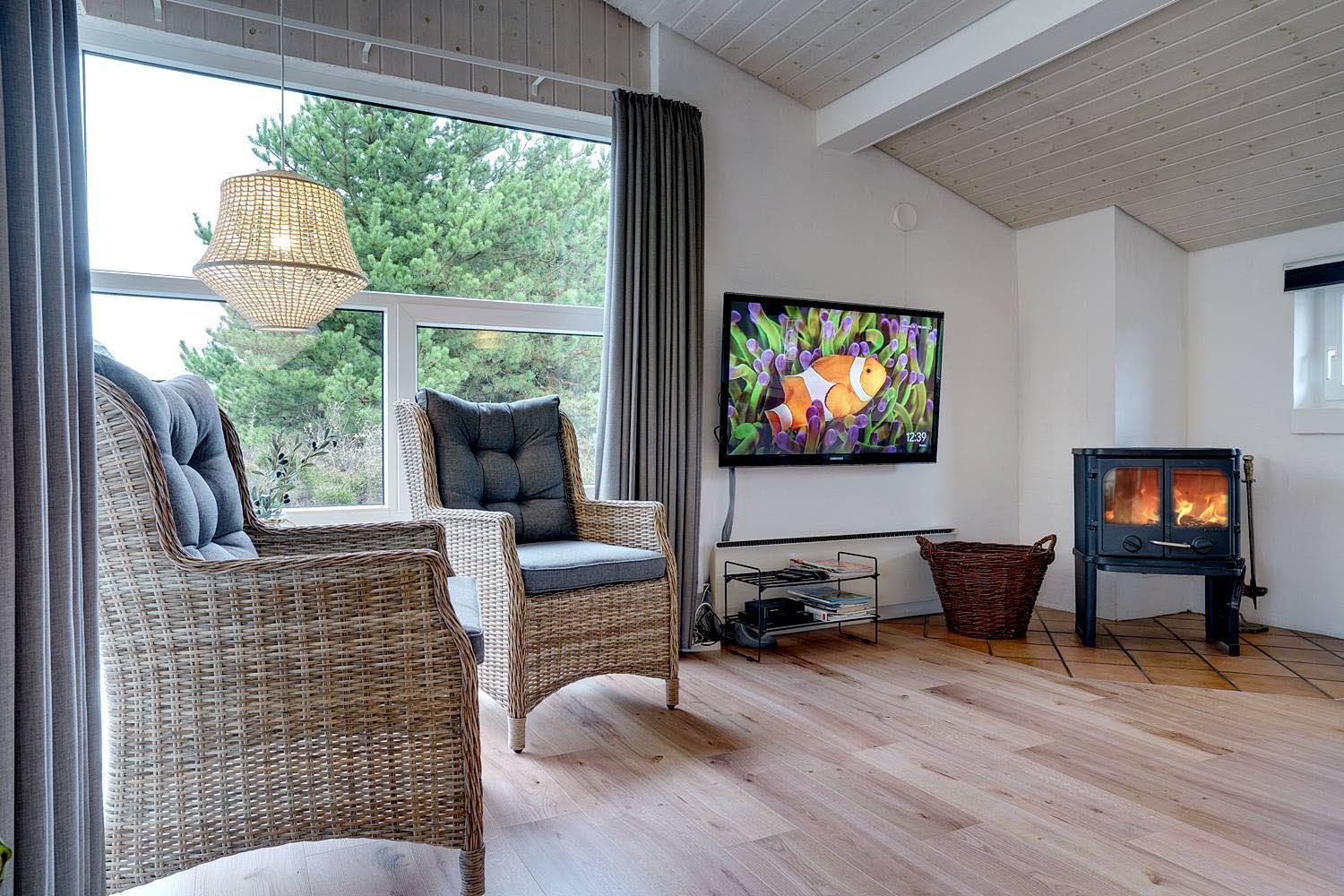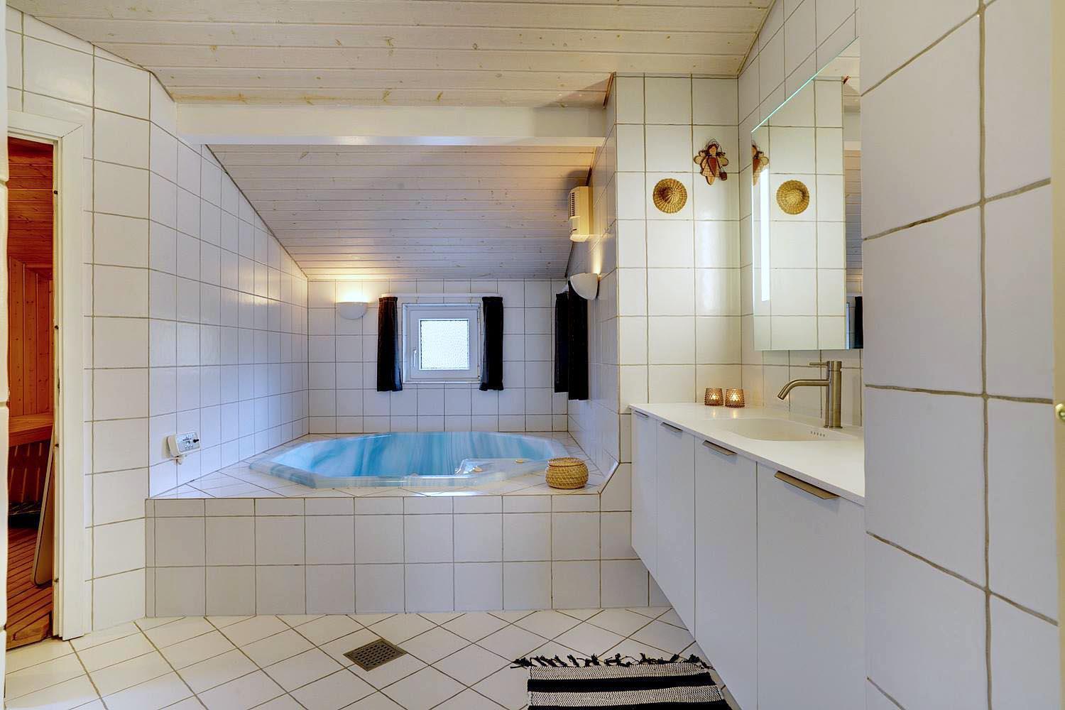 I gåafstand til Henne Strands hyggelige handelsliv finder I dette dejlige og velholdte feriehus med 2 flotte badeværelser som er blevet moderniseret. I det ene badeværelse er der 4 personers spa og sauna. Stor stue med brændeovn og komfortable møbler, bla. stor hjørnesofa. Der er også tænkt på det praktiske med vaskemaskine og tørretumbler.