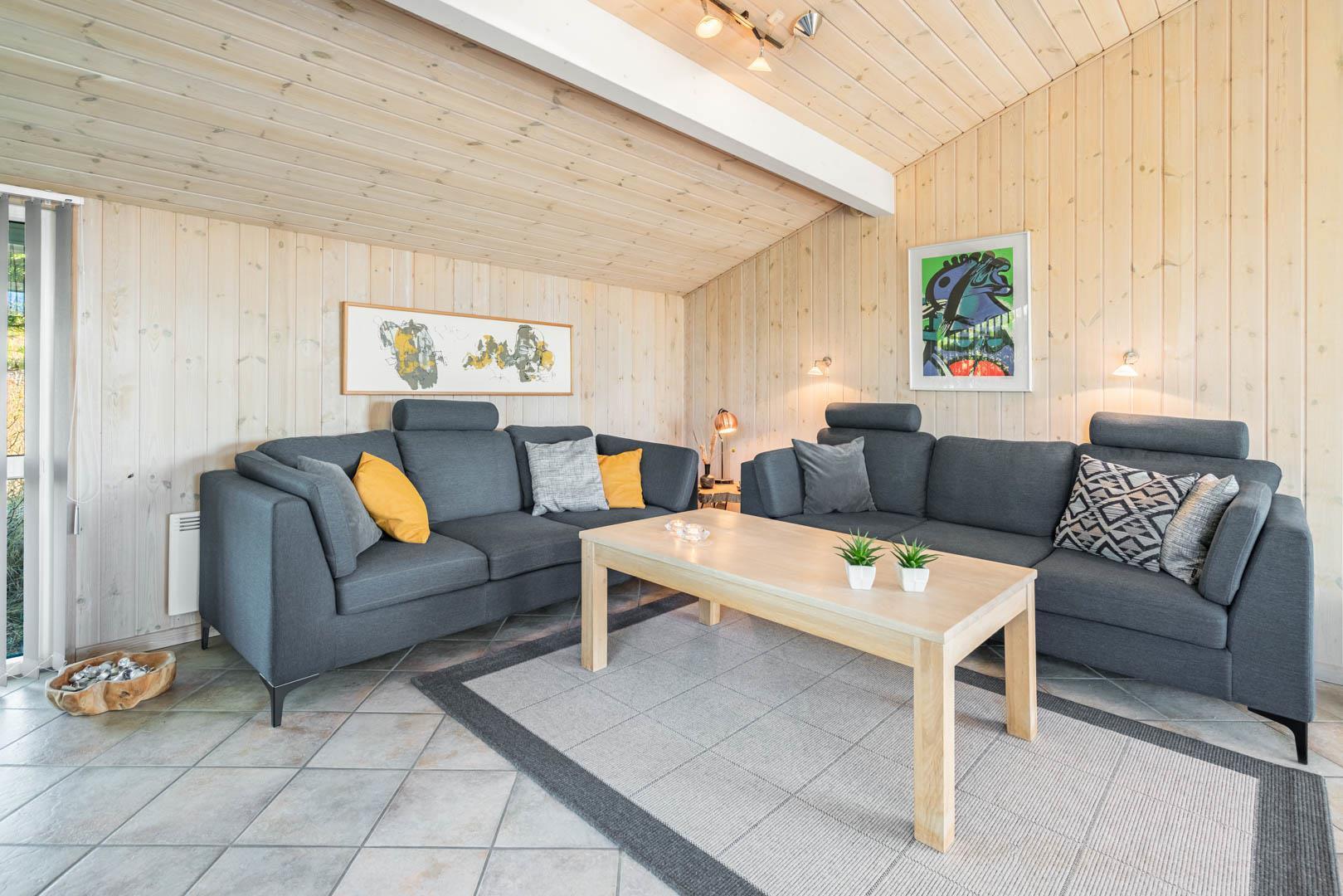 Dette velpassede sommerhus er indrettet med gode kvalitetsmøbler og har et flot køkken/alrum med direkte udgang til en dejlig, delvist overdækket terrasse. Den hyggelige stue er udstyret med komfortable møbler, Apple TV og Sonos-anlæg, så du kan nyde både afslapning og underholdning.