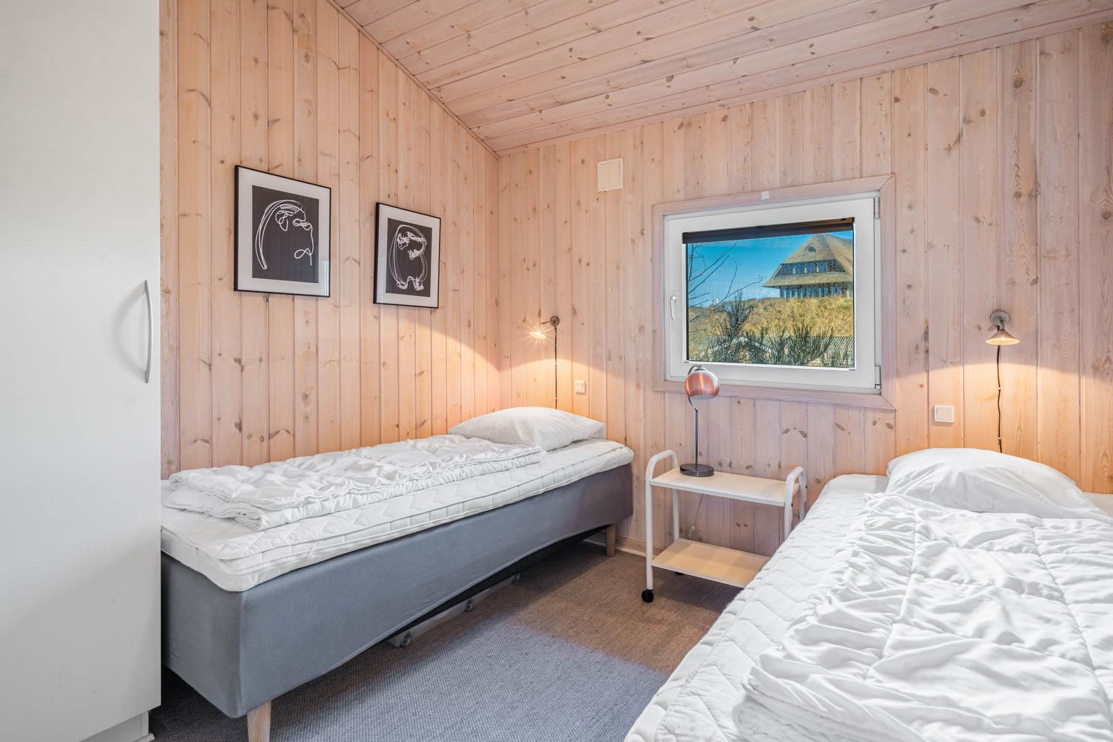 Feriehuset har tre gode soveværelser og et flot badeværelse med både spa og sauna – perfekt til velvære efter en dag ved stranden. Huset ligger fredeligt i en "gryde" med kort afstand til både havet og byen.