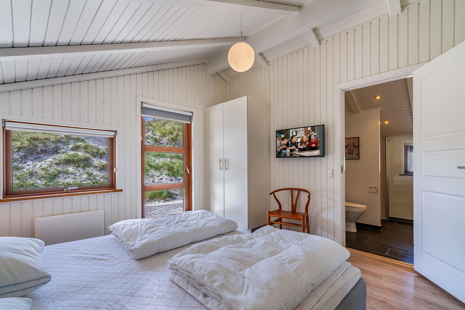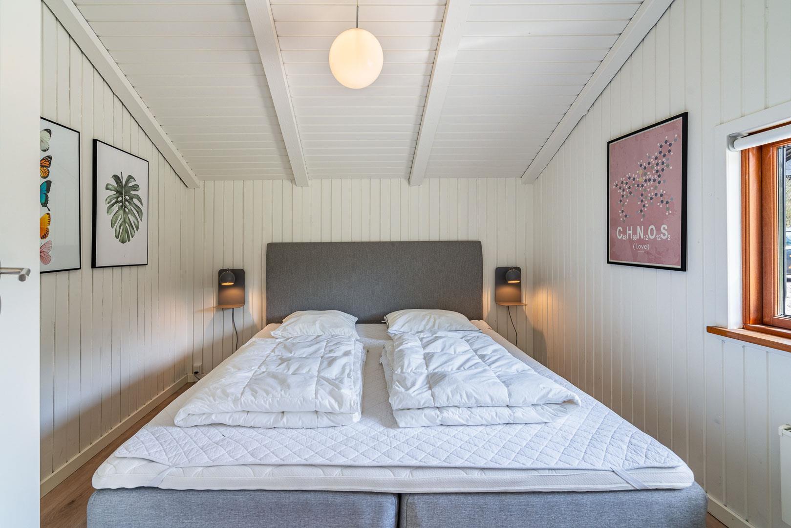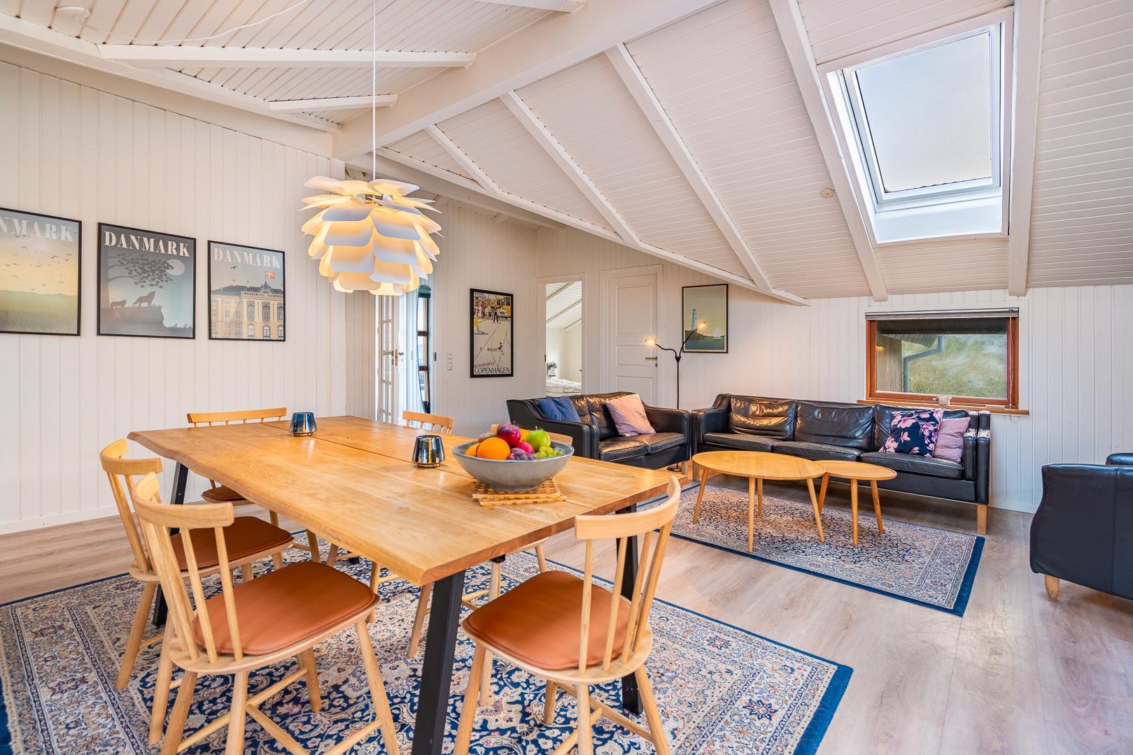 Her er plads til 6 personer med fire skønne soveværelser og to badeværelser. To af værelserne er med dobbeltsenge og derudover er her to værelser med en enkeltseng – perfekt hvis du rejser med teenagere der ønsker sit eget rum. Fra et af soveværelserne kan du træde direkte ud på morgenterrassen, hvor både morgensolen og morgenkaffen kan nydes, samtidig med at du hører det brusende Vesterhav.
