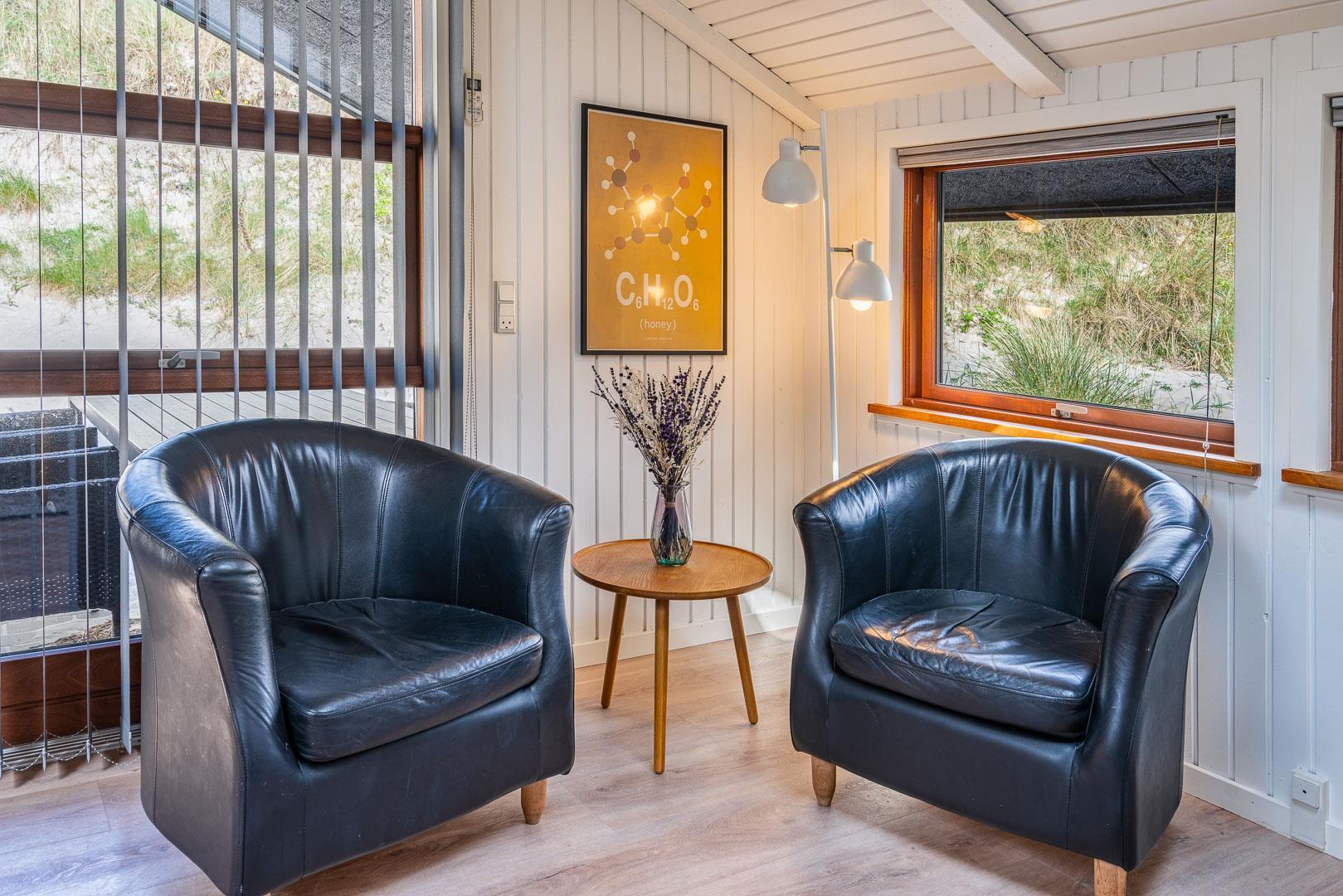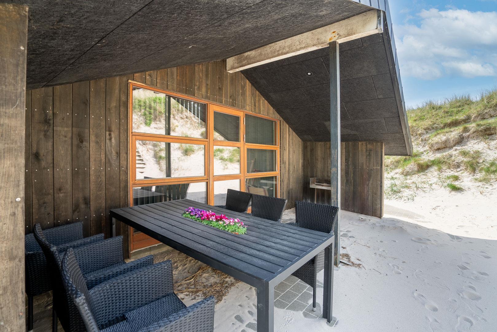 Flere steder rundt om sommerhuset, finder du terrasser med gode læ forhold afhængig vind og vejr, og med udsigt til klitterne. Book dette skønne sommerhus hvis du vil prøve at holde ferie på en af de bedste beliggenheder i Henne Strand – en uovertruffen sommerhusoplevelse året rundt.