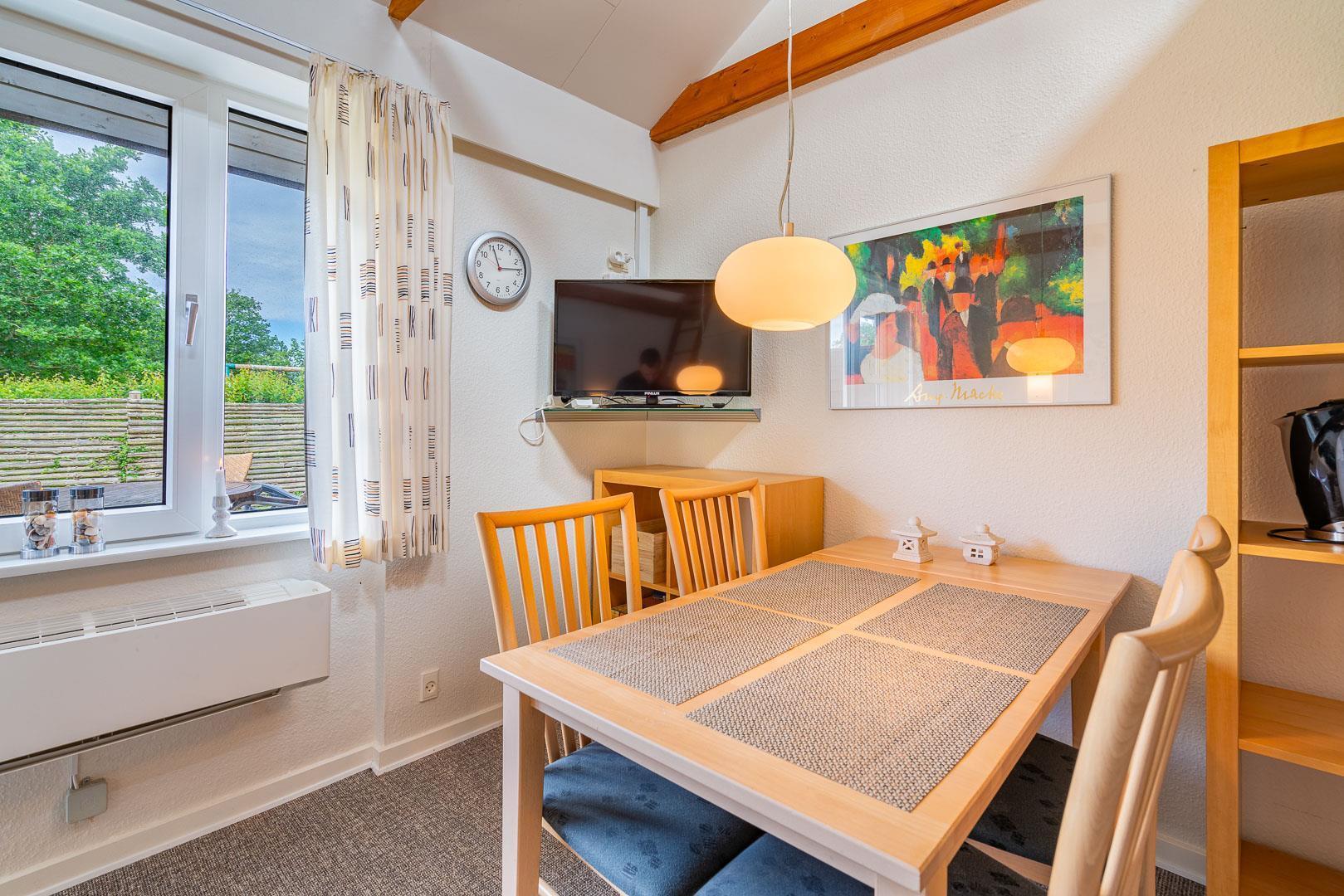 Velholdt ferielejlighed beliggende ca. 200 meter fra Henne Golfbane. Ferielejligheden er indrettet med 1 soverum med dobbeltseng. 2 madrasser på hems 1. sal. Fra det kombinerede køkken/alrum er der direkte udgang til lejlighedens terrasse. Ud over golf, er der god mulighed for at besøge områdets ride center og i kort cykelafstand ligger Blåbjerg Plantage. Blåbjerg Plantage er beliggende sydvest for Nr. Nebel grænsende helt ud til klitheden langs vestkysten, og mod nord ligger plantagen i direkte sammenhæng med Nymindegab Plantage. Blaabjerg Plantage har næsten overalt præg af sandflugt og byder på spændende natur med klitter, kystskrænter, bjerge, hede, egekrat og plantage. Man kan endvidere være heldig at se noget af det kronvildt der er i plantagen. Langs kysten er der anlagt en række parkeringspladser. Inde i plantagen er der gang-, ride- og cykelstier.