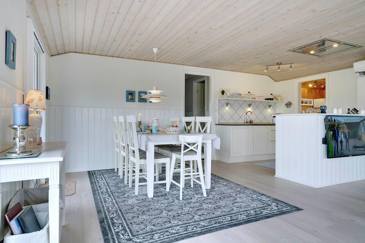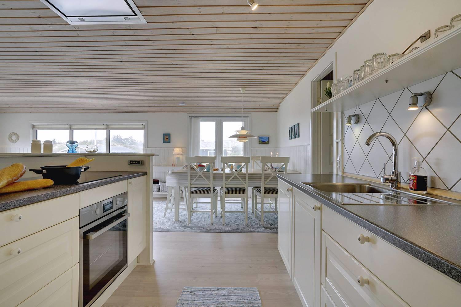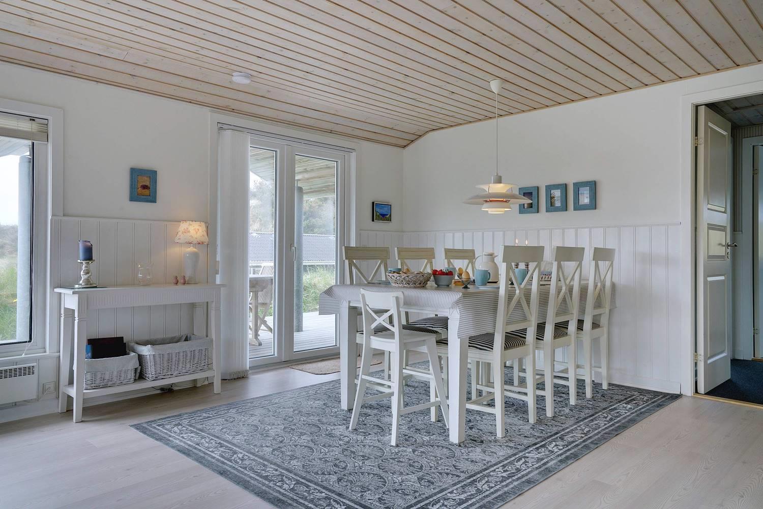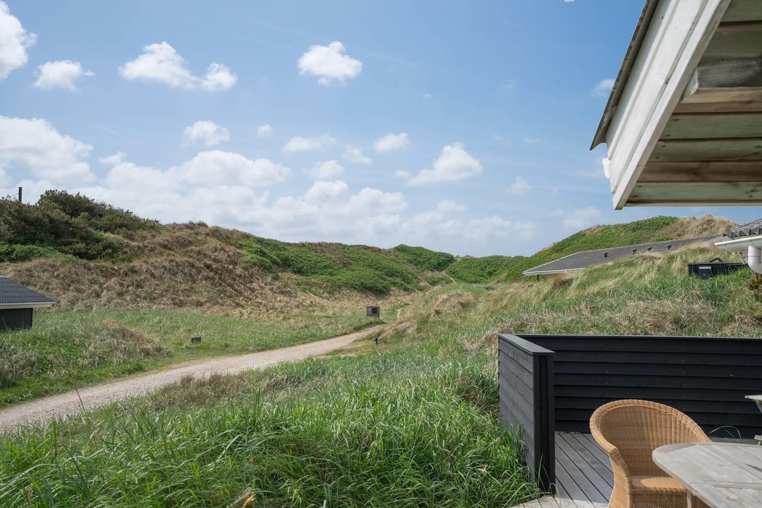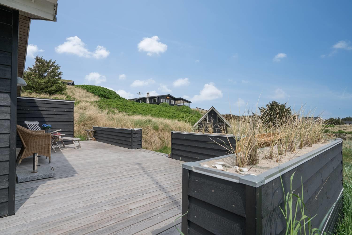 Dette flotte og velpassede feriehus ligger på en skøn klitgrund i roligt område og ud til stort klitområde. Indvendigt står huset meget lyst, venligt og indrettet med et personligt præg. Det flotte køkken er kombineret med stuen, som er indrettet med pæne og gode møbler. Et godt feriehus som emmer af hygge.