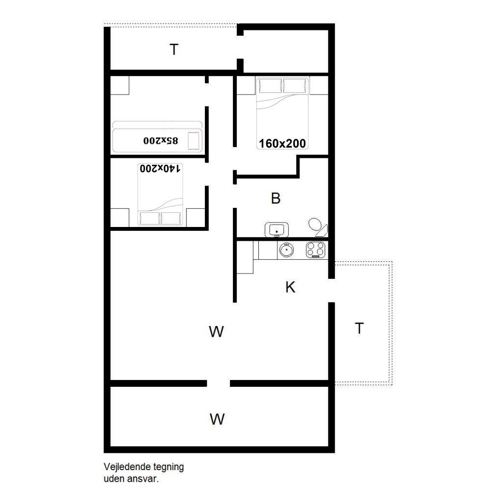 Sengestørrelse: 1 dobbeltseng 160 x 200 cm + 1 dobbeltseng 140 x 200 cm + 1 køjeseng 85 x 200 cm