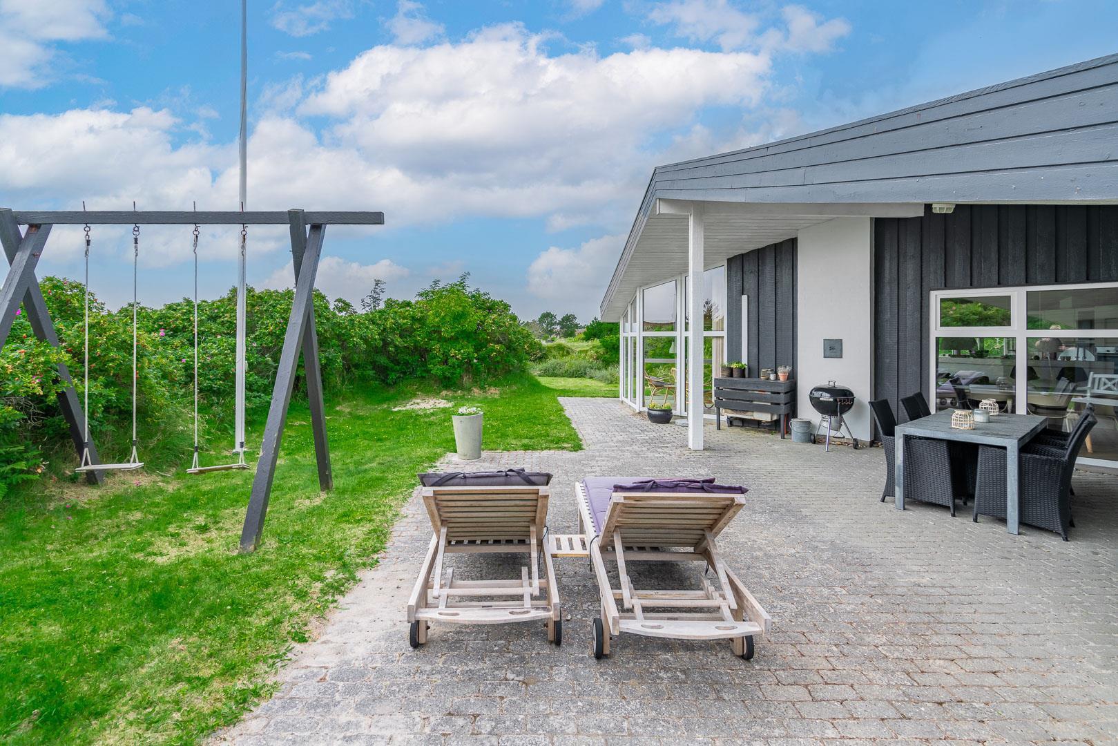 Du finder ikke meget bedre omgivelser at tilbringe ferien end her i Henne. Du er omgivet af en fantastisk natur med store brede sandstrande, der åbner sig bag bælter af bløde, marehalmsbeklædte klitter. Det er oplagt at drage på opdagelse i Blåbjerg Plantage eller ved Henne Mølle Å. Fra feriehuset er der kun 15 minutters gåafstand til Strandvejen, hvor der er restaurant, tøjforretninger, købmænd og cafeer.
