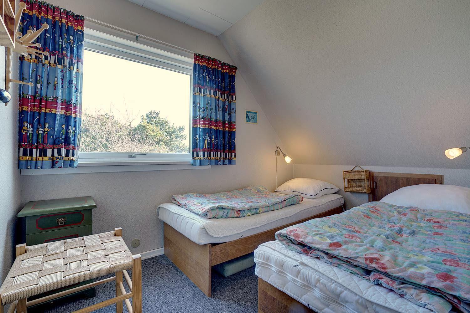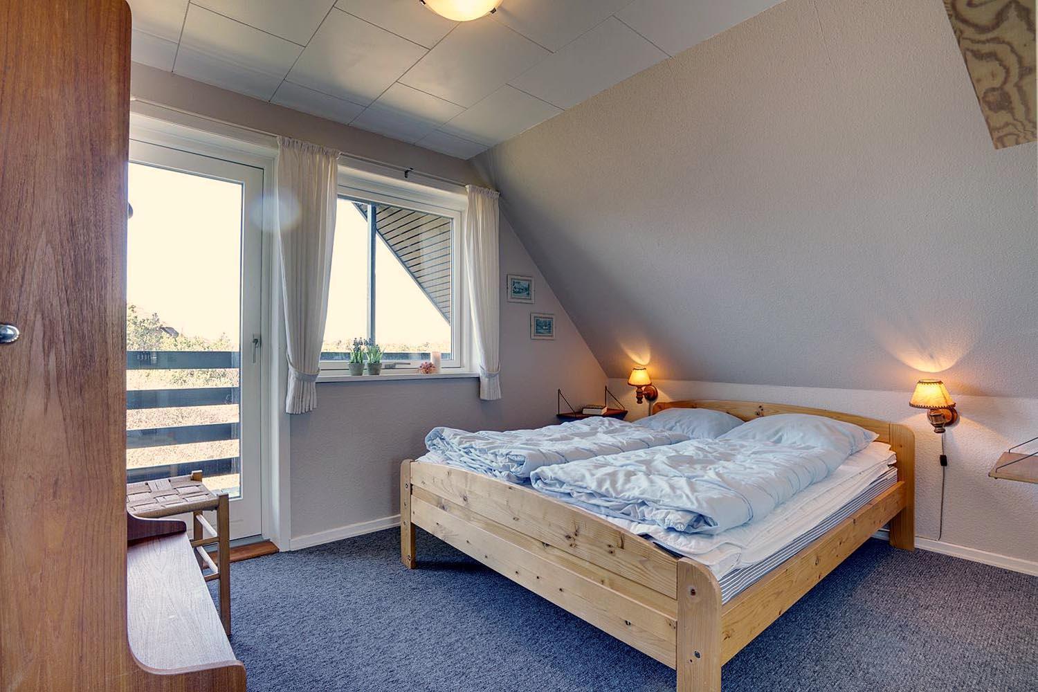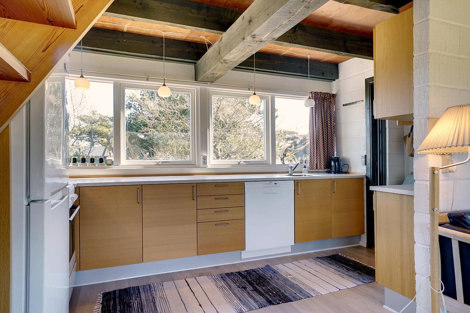 Lille, hyggeligt stråtækt feriehus beliggende på en ugeneret klitgrund for enden af blind vej. Huset er løbende blevet moderniseret bl.a. med nyere køkken. Hyggelig indrettet stue med brændeovn og spisekrog. Ældre badeværelse i stueetagen. På 1 sal finde I husets 4 soverum. Der er på grunden en sandkasse og gynge til de små gæster. Flere gode terrasser og en balkon. Trådløs internet findes også i huset.