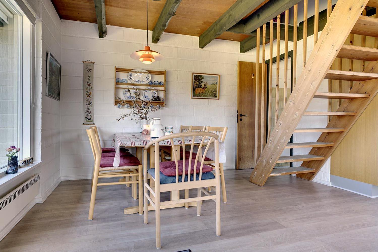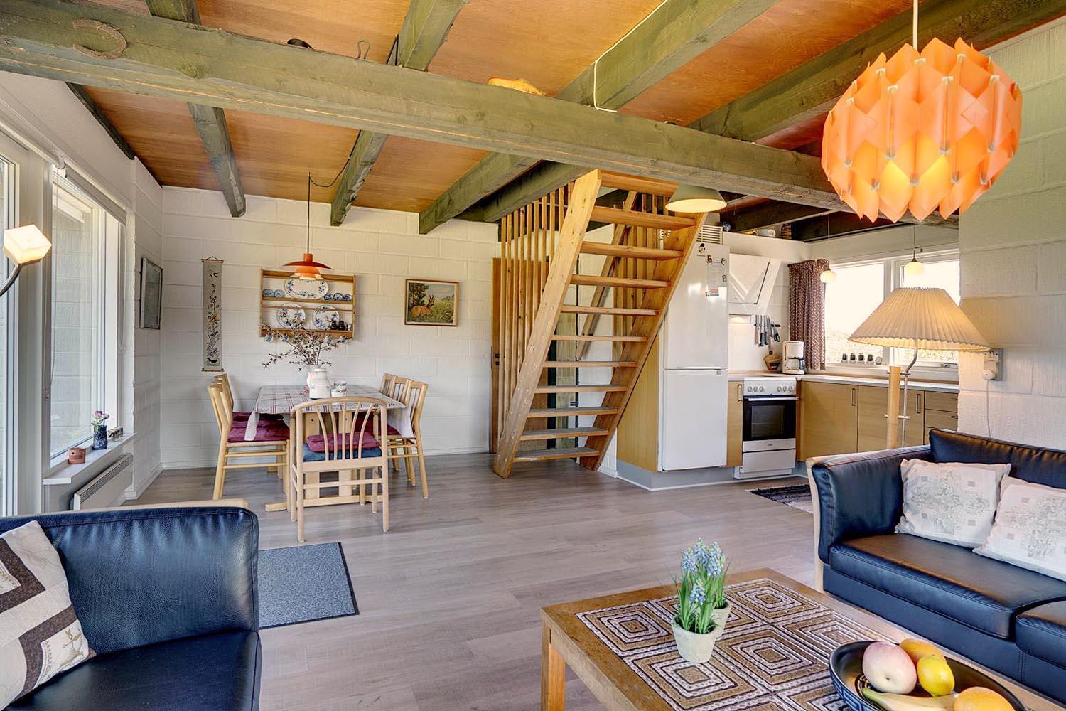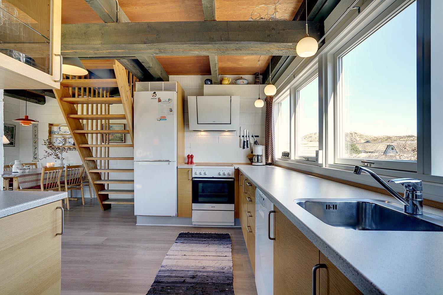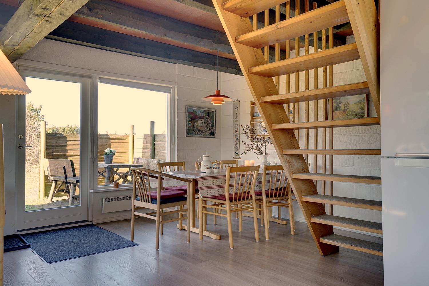 Lille, hyggeligt stråtækt feriehus beliggende på en ugeneret klitgrund for enden af blind vej. Huset er løbende blevet moderniseret bl.a. med nyere køkken. Hyggelig indrettet stue med brændeovn og spisekrog. Ældre badeværelse i stueetagen. På 1 sal finde I husets 4 soverum. Der er på grunden en sandkasse og gynge til de små gæster. Flere gode terrasser og en balkon. Trådløs internet findes også i huset.
