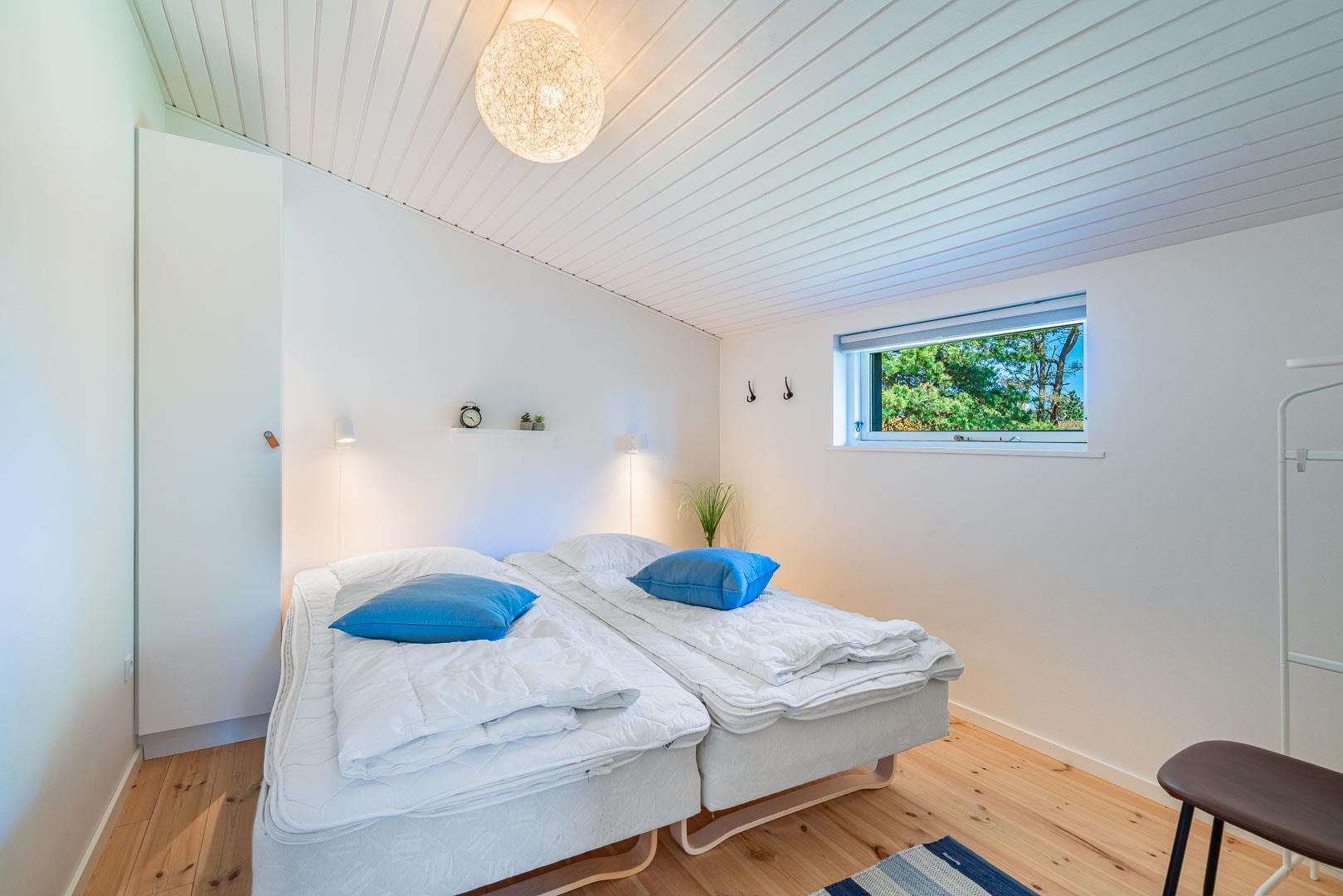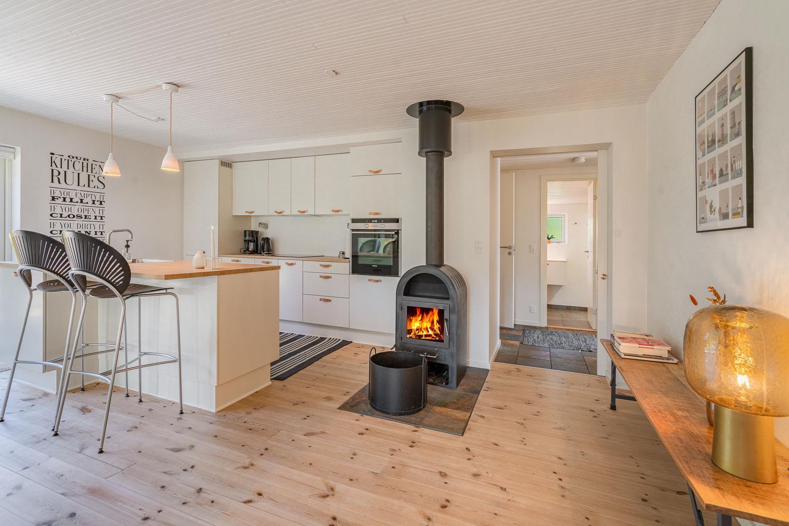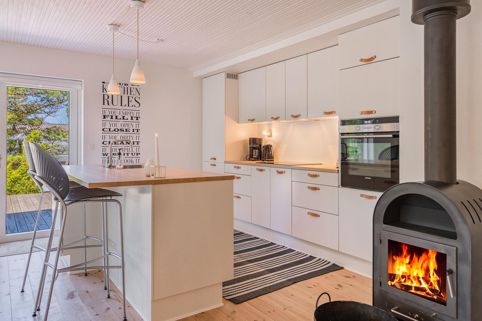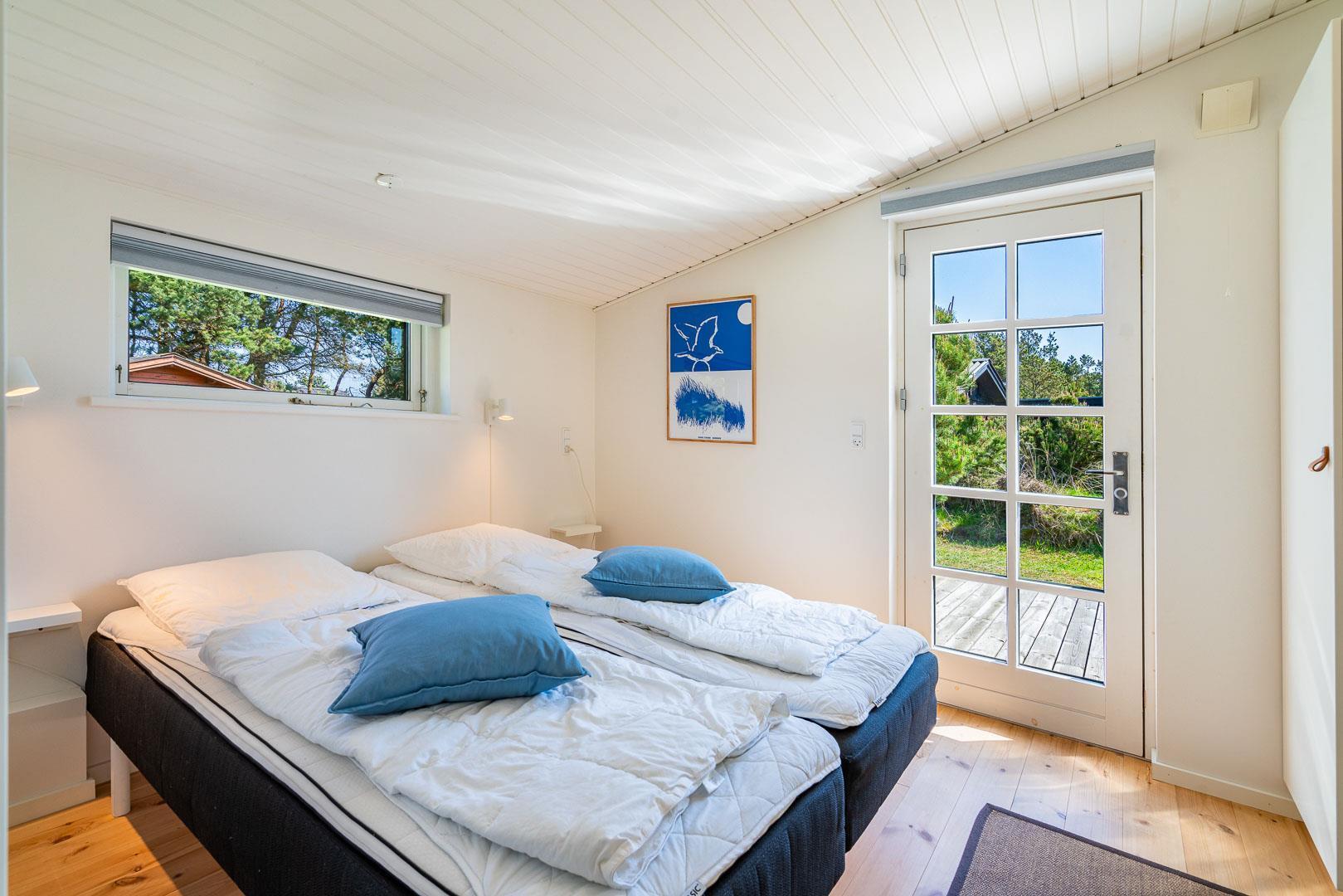 Oplev en uforglemmelig ferieoplevelse i dette hyggelige luksuriøse sommerhus i Henne Strand, som løbende er blevet renoveret. Her ligger den skønneste badestrand og det livlige byliv lige rundt om hjørnet. Sommerhus byder på en lys og indbydende indretning med en åben stue, der smelter sammen med det moderne køkkenalrum. Brændeovnen i stuen skaber en varm og hyggelig atmosfære på kølige aftener, og den direkte adgang fra spisestuen til den ene af husets træterrasser inviterer til udendørs måltider og afslapning. Med fire lyse soveværelser, herunder tre værelser med dobbeltsenge og et værelse med en enkeltseng, er der rigelig plads til hele familien eller vennerne. De to skønne badeværelser med bruseniche tilføjer ekstra komfort og luksus til opholdet.