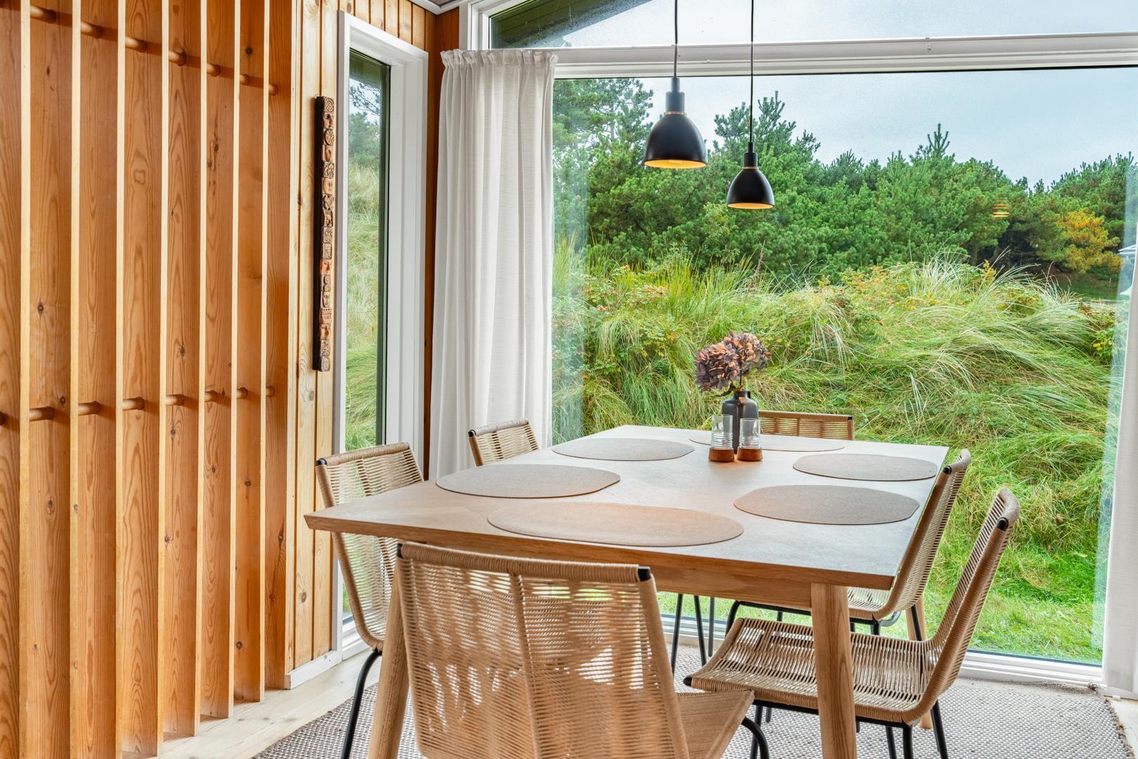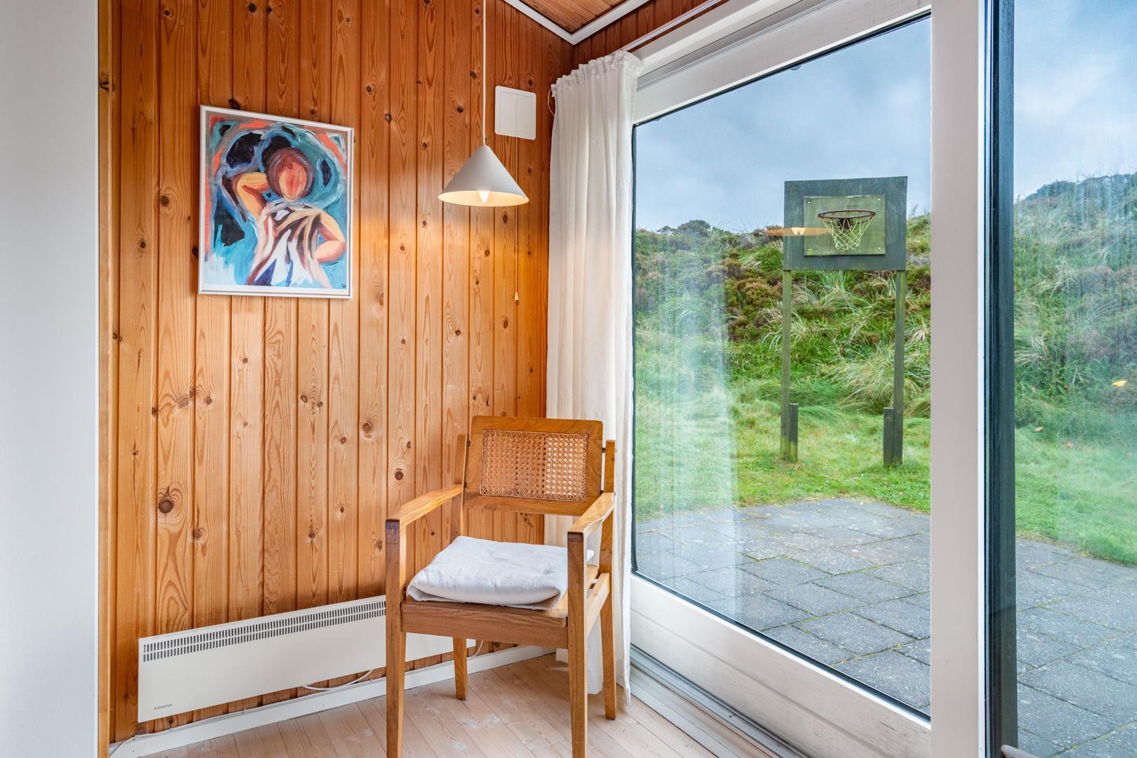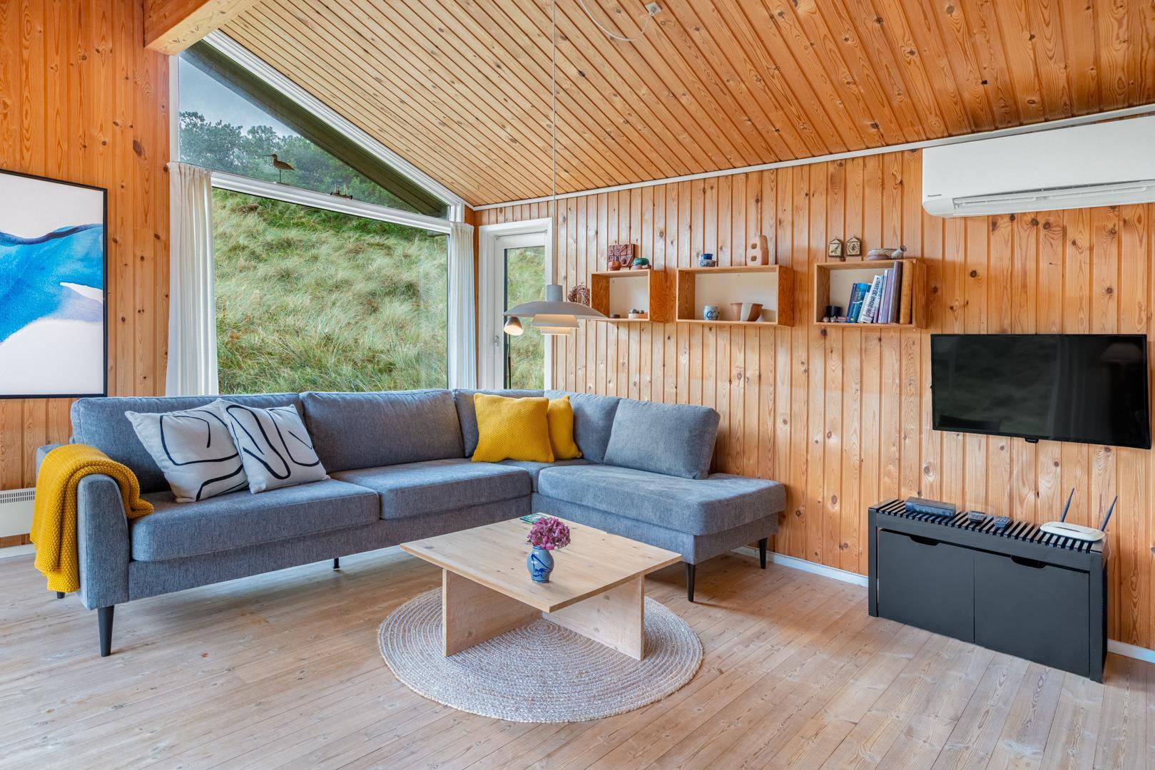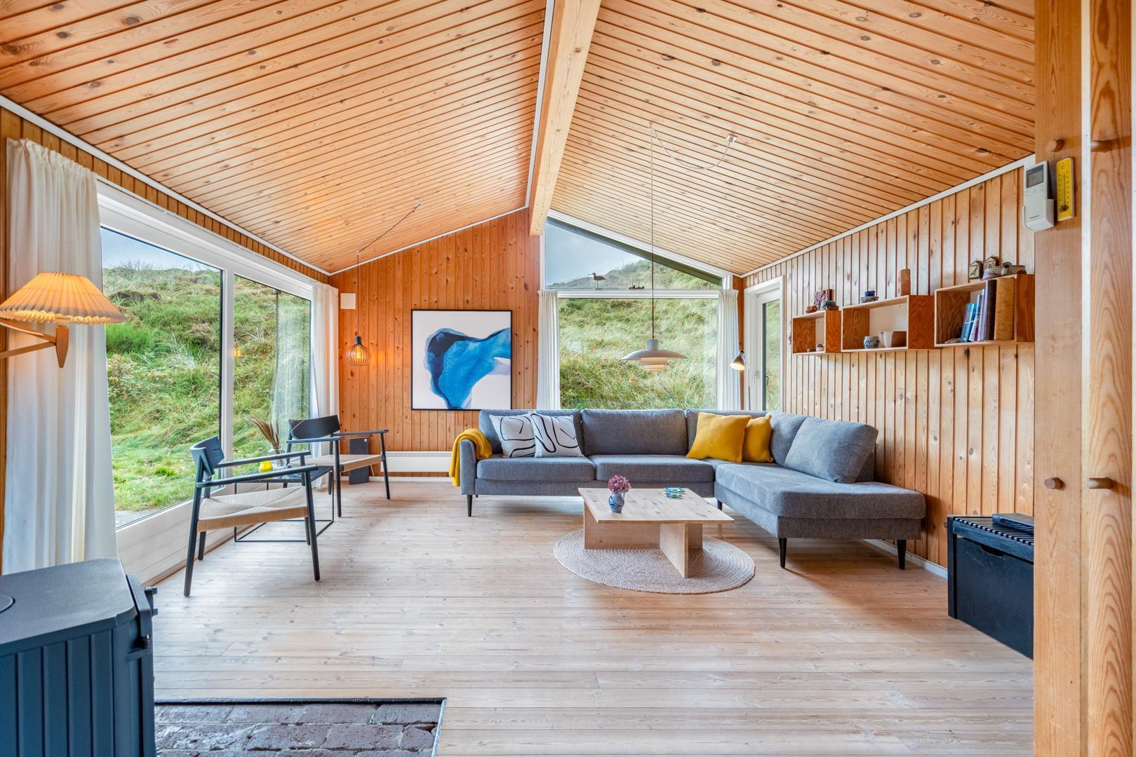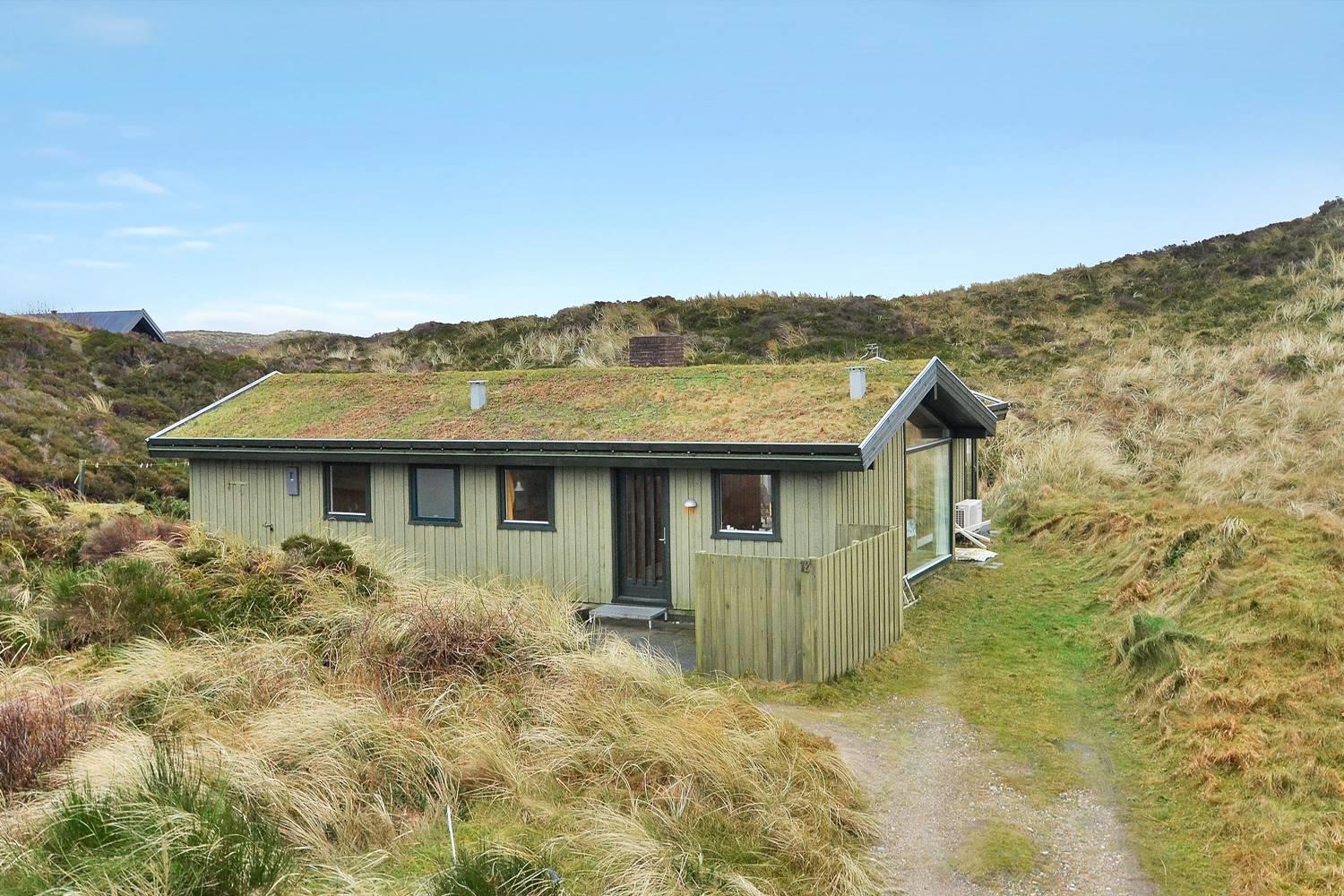 Feriehuset Storkenæbvej 12 ligger ugeneret på klitgrund tæt ved Henne Strand med dejlig terrasse og moderne faciliteter.
