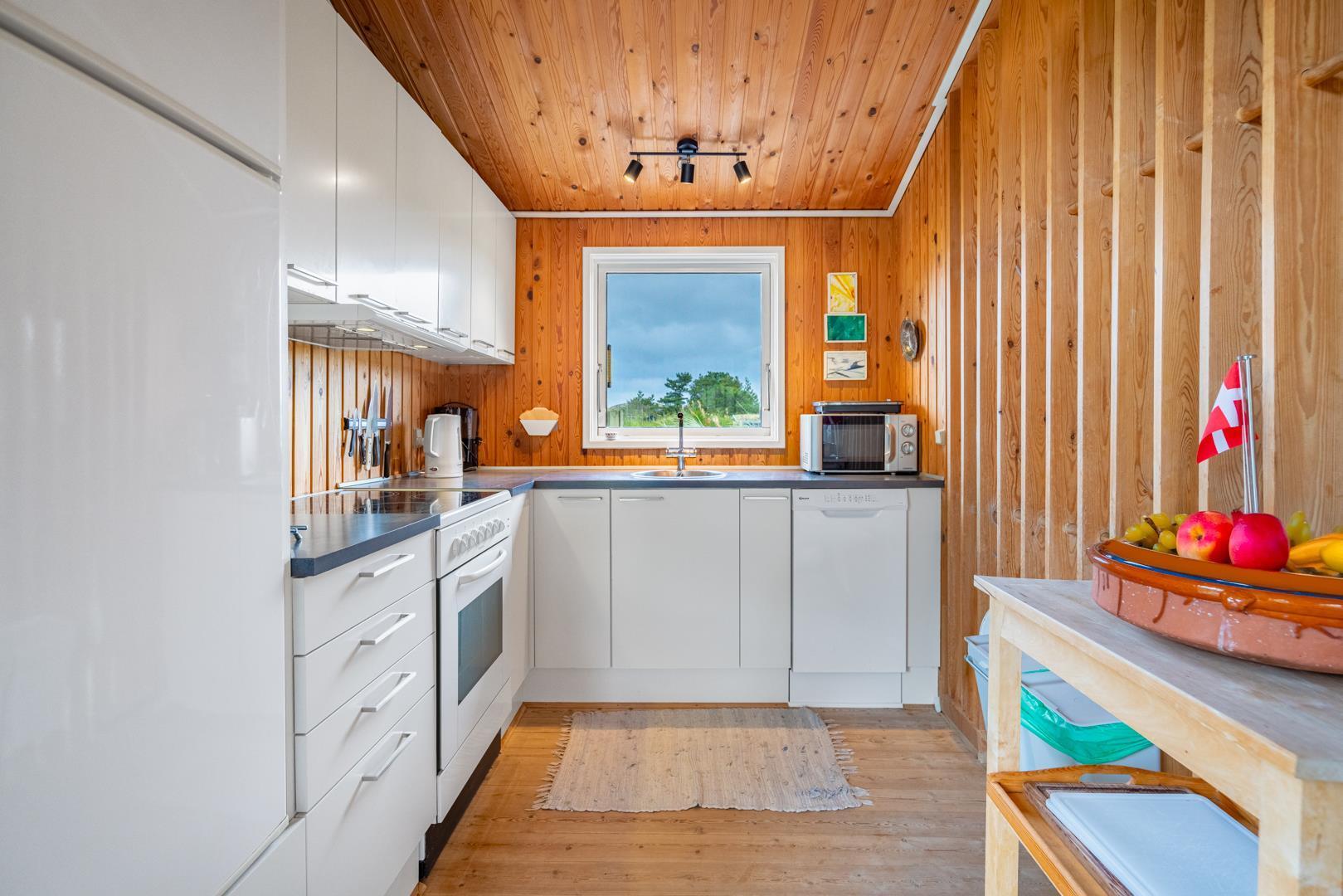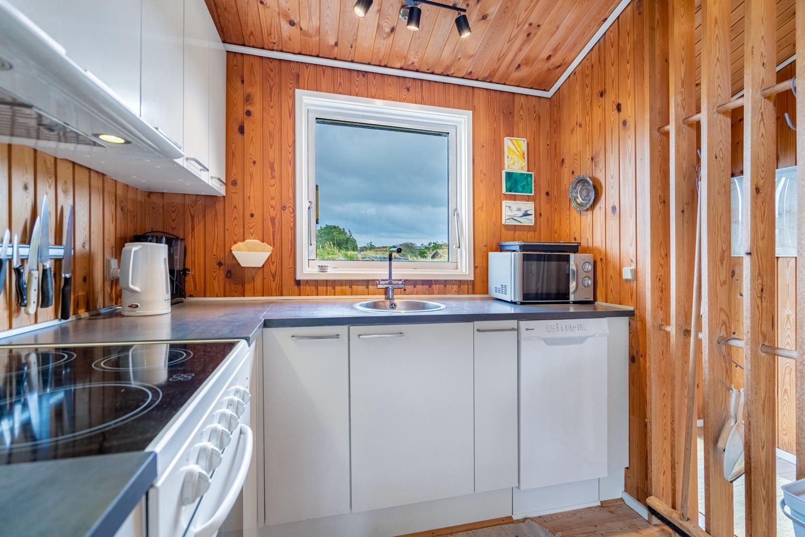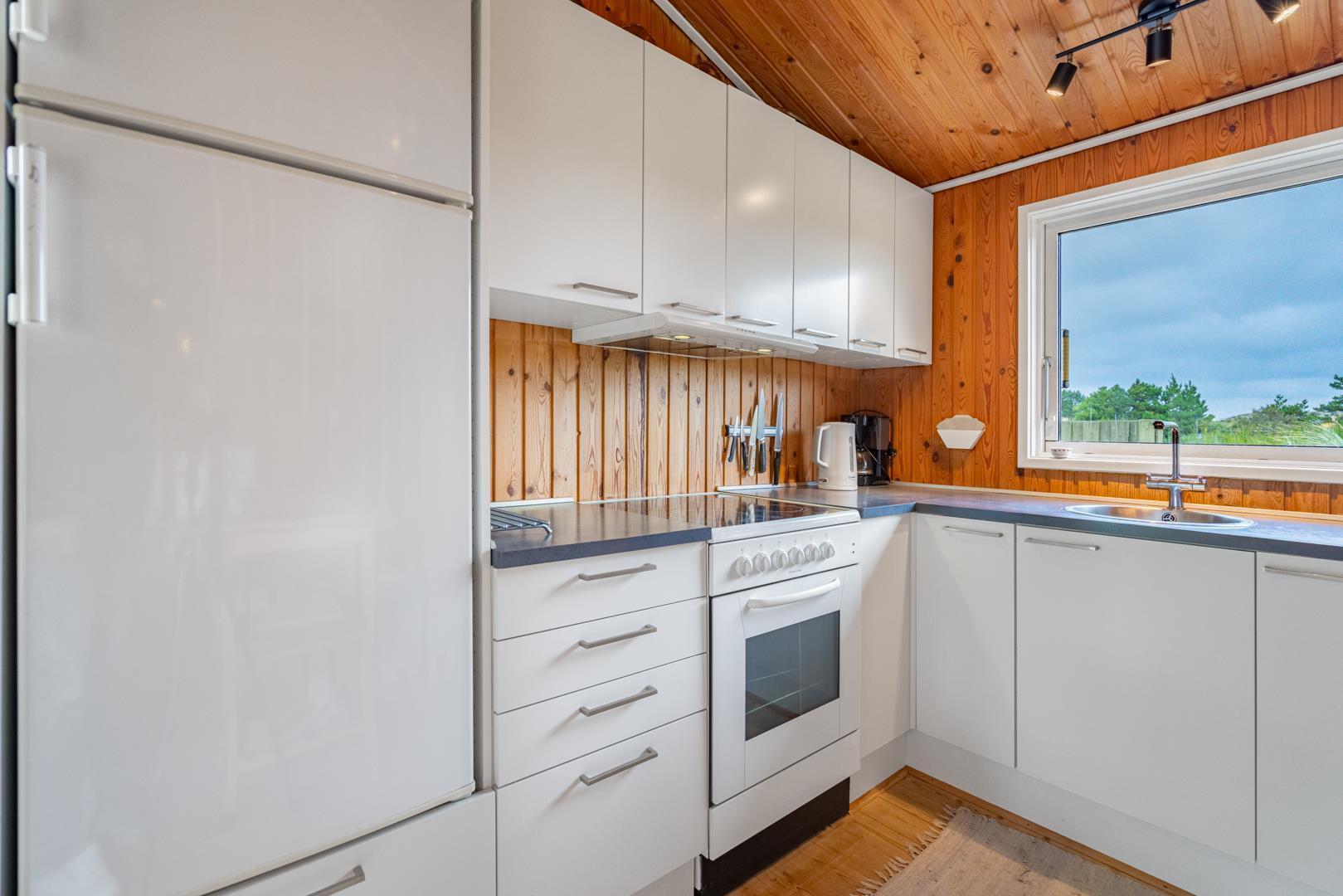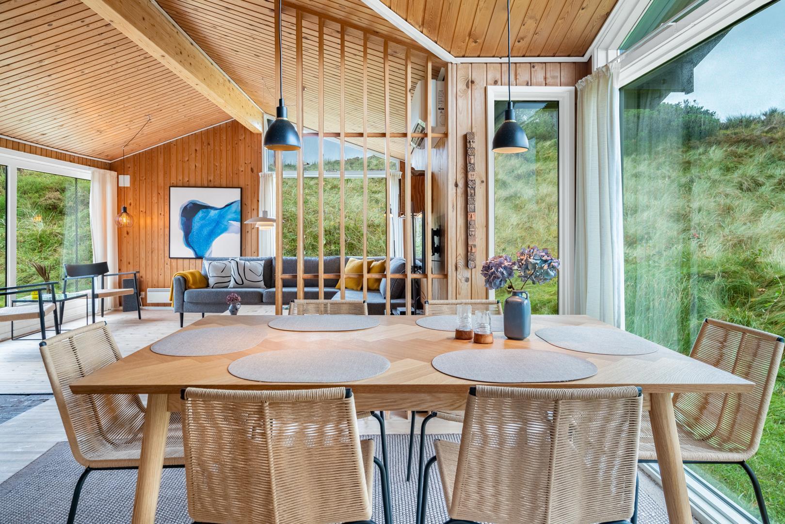 Feriehuset Storkenæbvej 12 ligger ugeneret på klitgrund tæt ved Henne Strand med dejlig terrasse og moderne faciliteter.