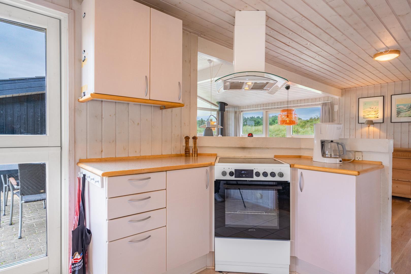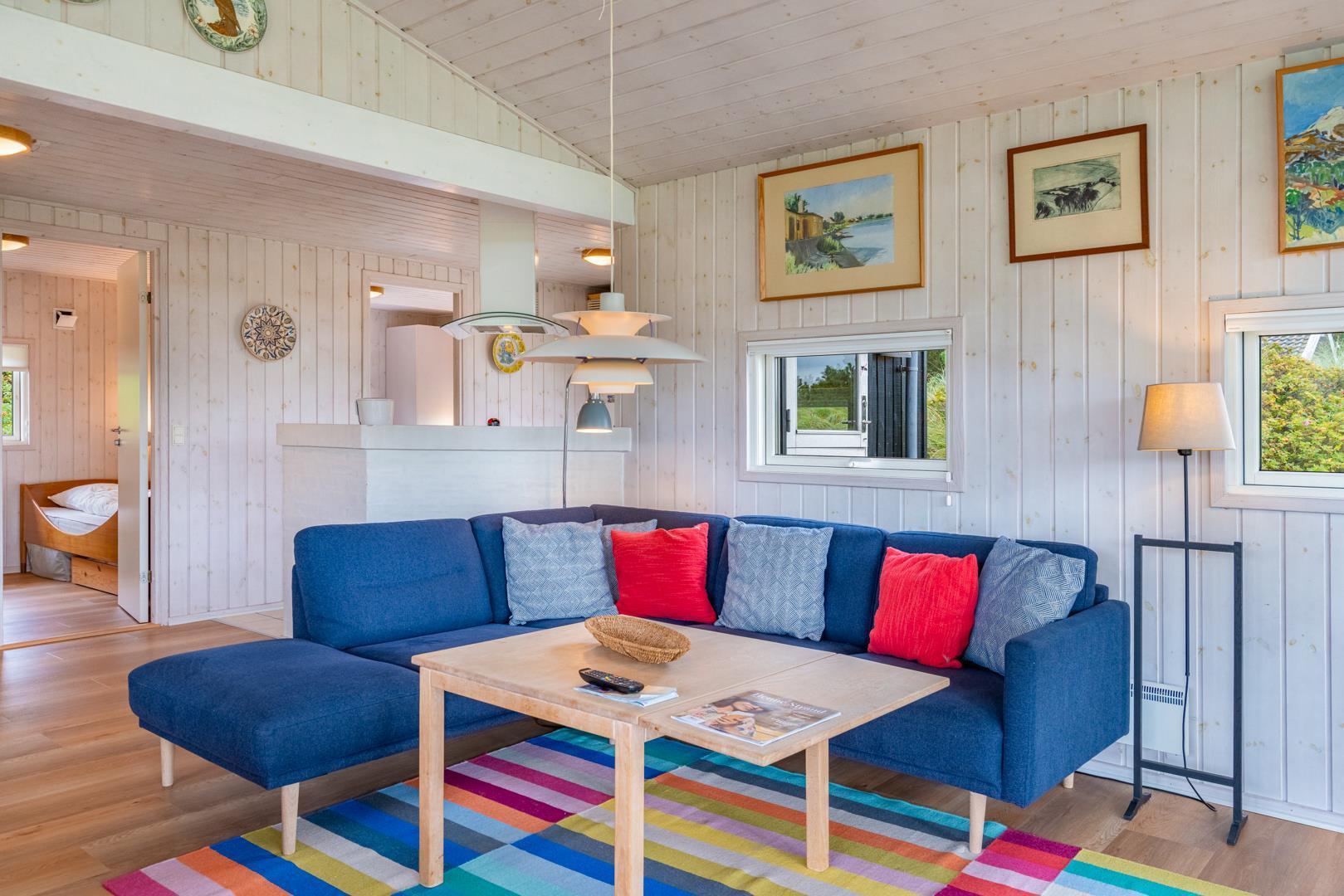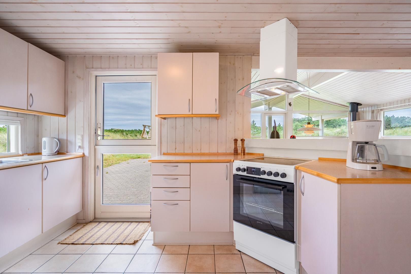 Fantastisk feriehus beliggende i første klitrække ud til stort, fredet naturområde på en blind vej, kun 200 m fra vesterhavet. Flere dejlige terrasser hvoraf en er delvis overdækket. Dejligt badeværelse med sauna. Den velindrettede køkkenafdeling er bl.a. udstyret med mikrobølgeovn og opvaskemaskine. Fra den hyggelige og smagfuldt indrettede opholdsstue er der udsigt til flotte klitarealer. 2 værelser med dobbeltsenge og 1 værelse med 2 enkeltsenge til 2 børn. Et lækkert hus i naturskønne omgivelser.