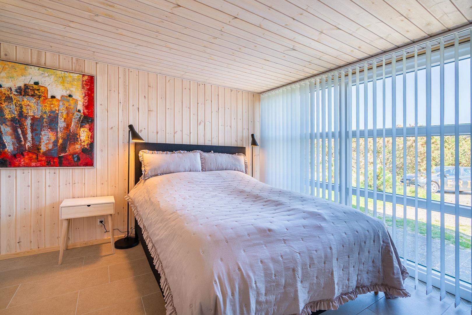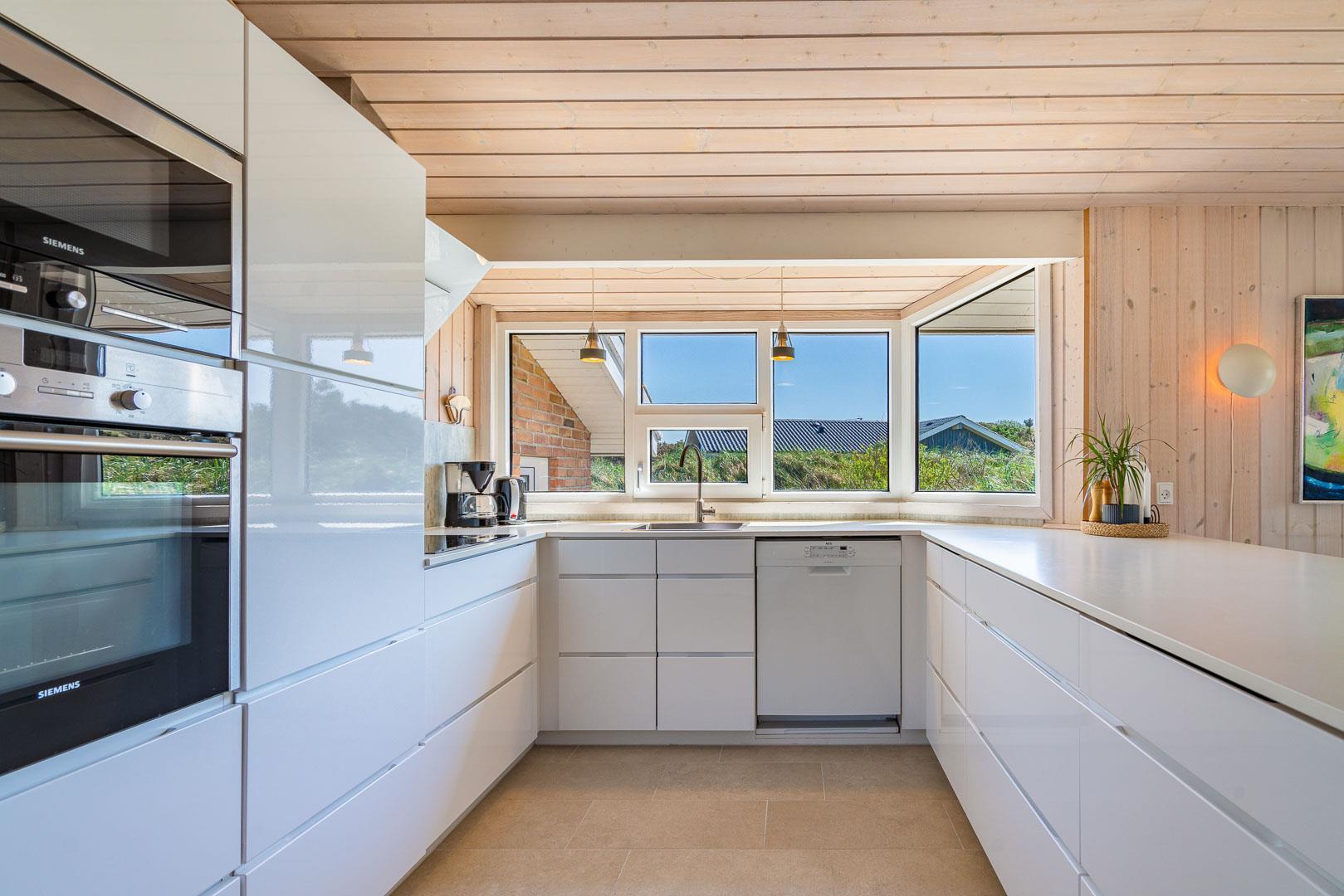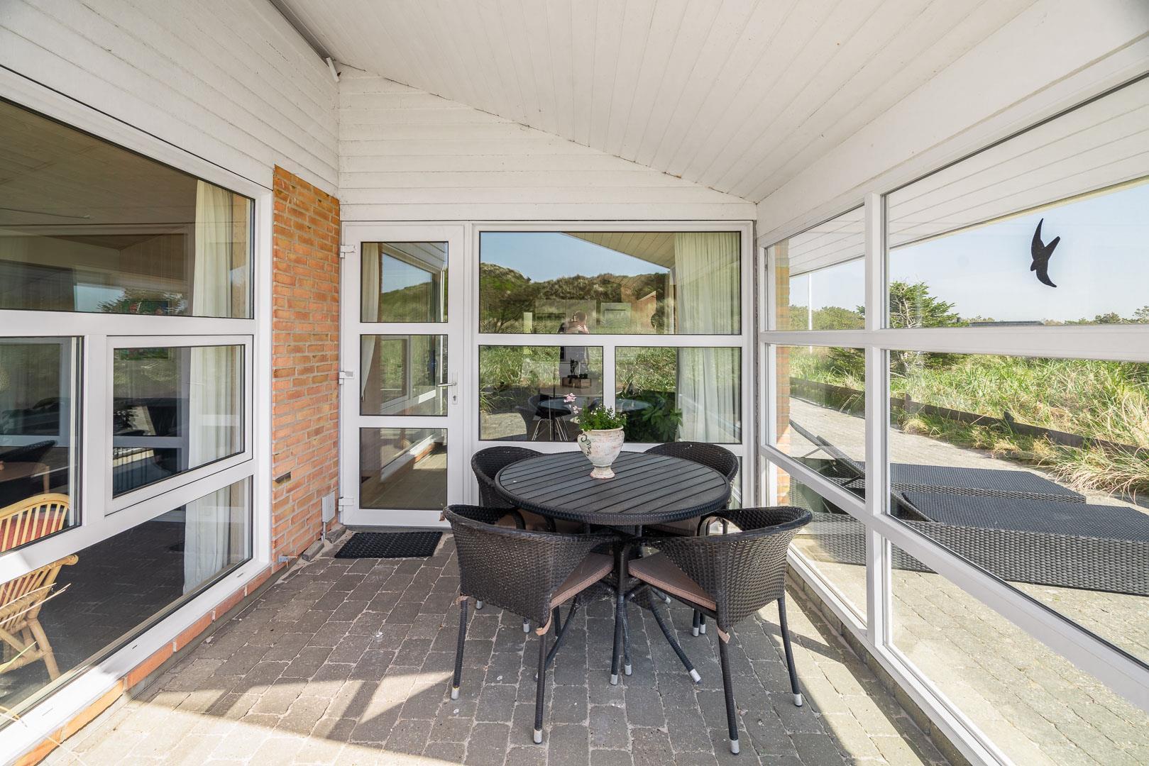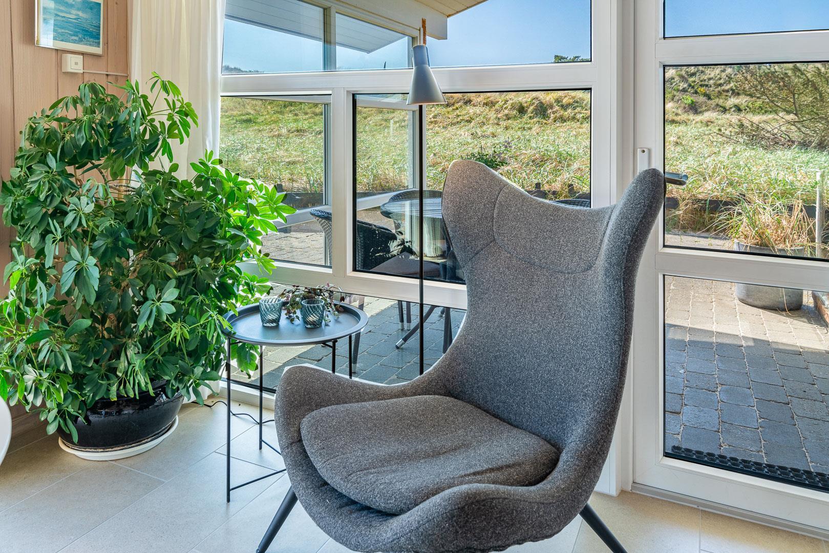 På en stor flot naturgrund ligger dette velpassede feriehus helt ugeneret og med pragtfuld udsigt over det fredede klitområde. Nyere køkken med åben forbindelse til den velmøblerede stue. 3 gode soverum som er udstyrede med boksmadrasser. Nyt flot badeværelse med badekar og sauna, samt ekstra WC i forbindelse med det ene soverum. Tre terrasser omkranser huset, så udelivet og den skønne udsigt kan nydes hele dagen. Fra køkken/spiseafdeling er der direkte udgang til terrasse hvoraf den ene er overdækket. . Et 'super-hus', hvor rammerne er til stede for en rigtig god ferie - hele året.