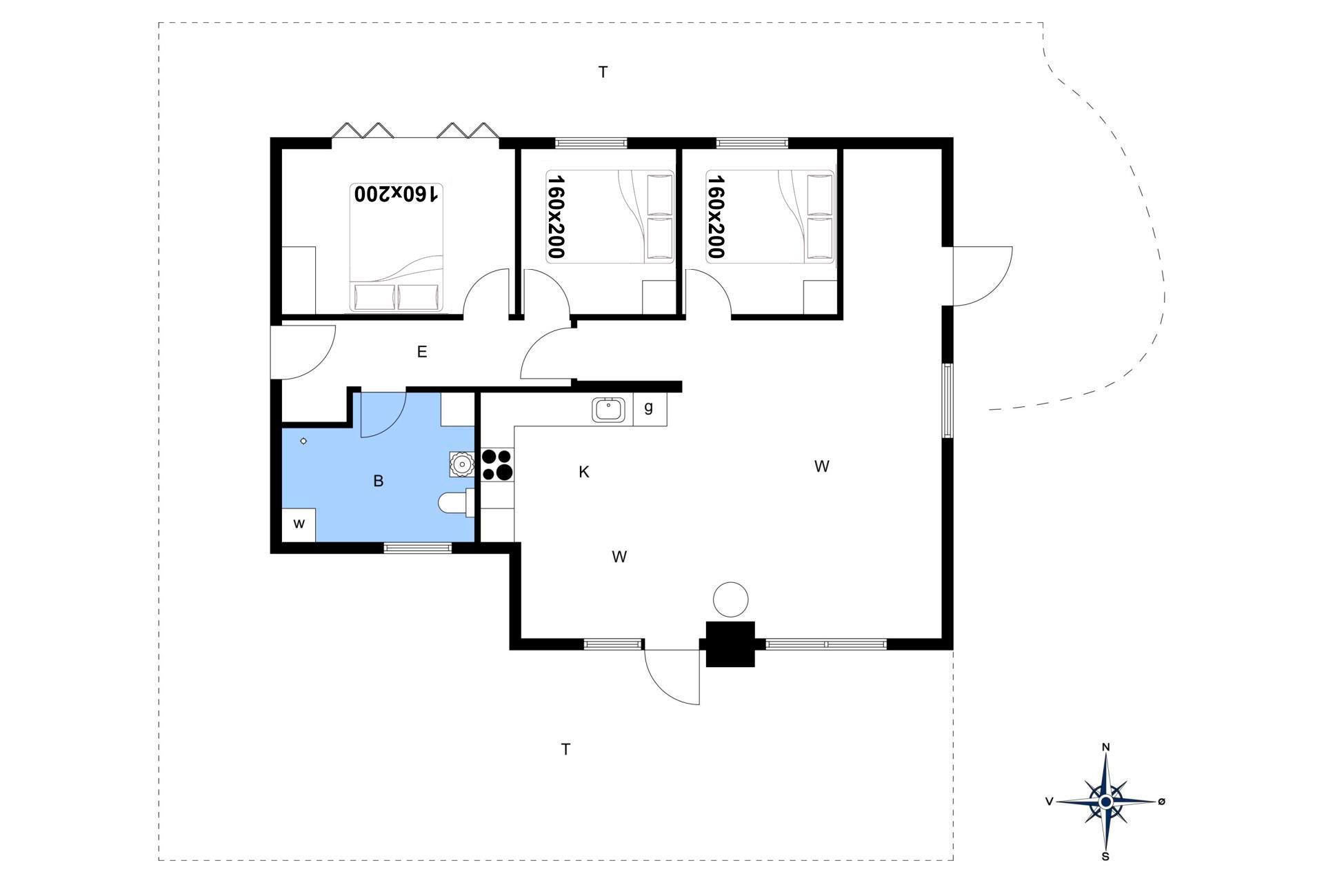 Huset rummer tre soveværelser, alle udstyret med dobbeltsenge (160 x 200 cm), samt et lækkert badeværelse med bruseniche, toilet, håndklædetørrer og kombineret vaskemaskine/tørretumbler – praktisk for både korte og længere ophold.
