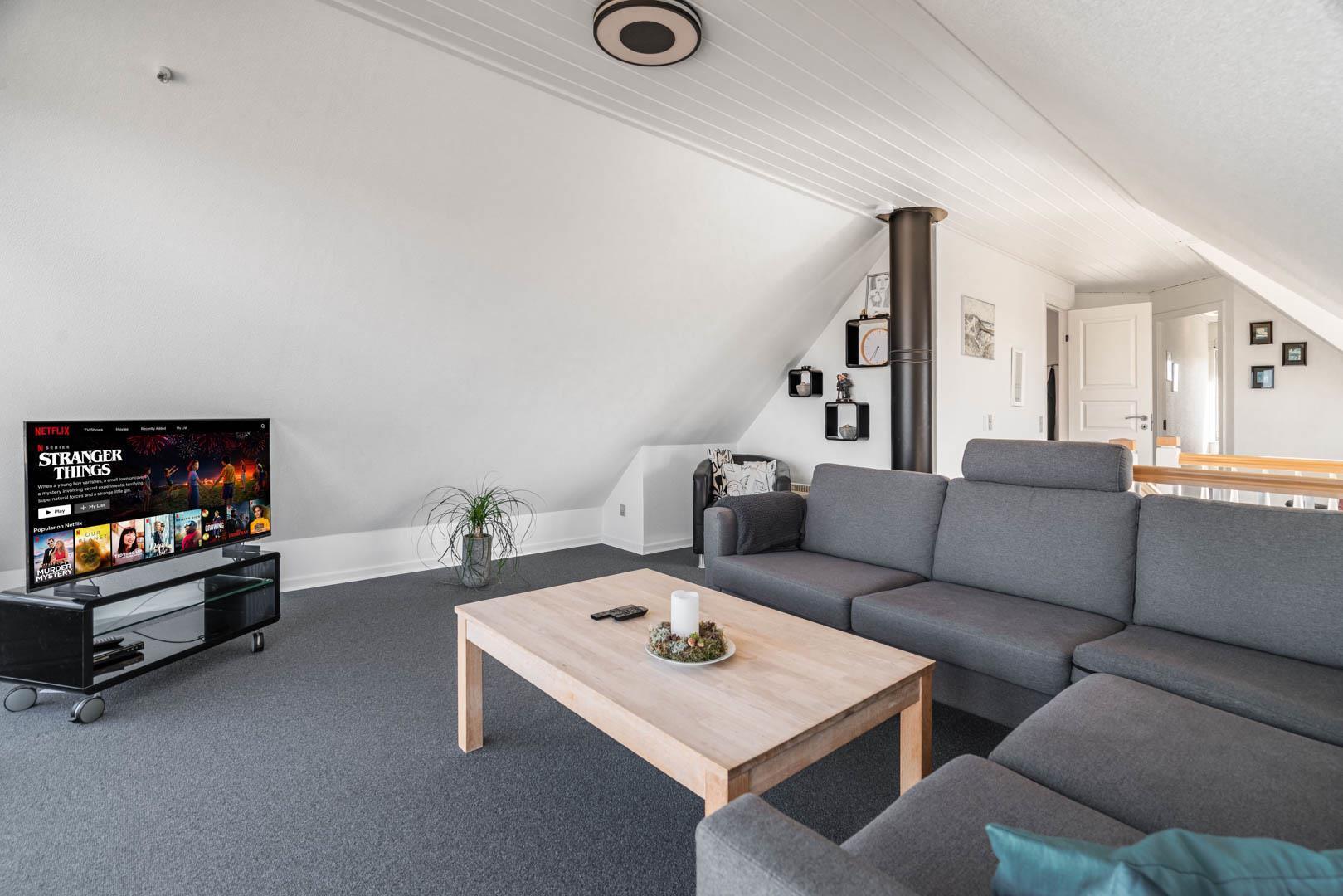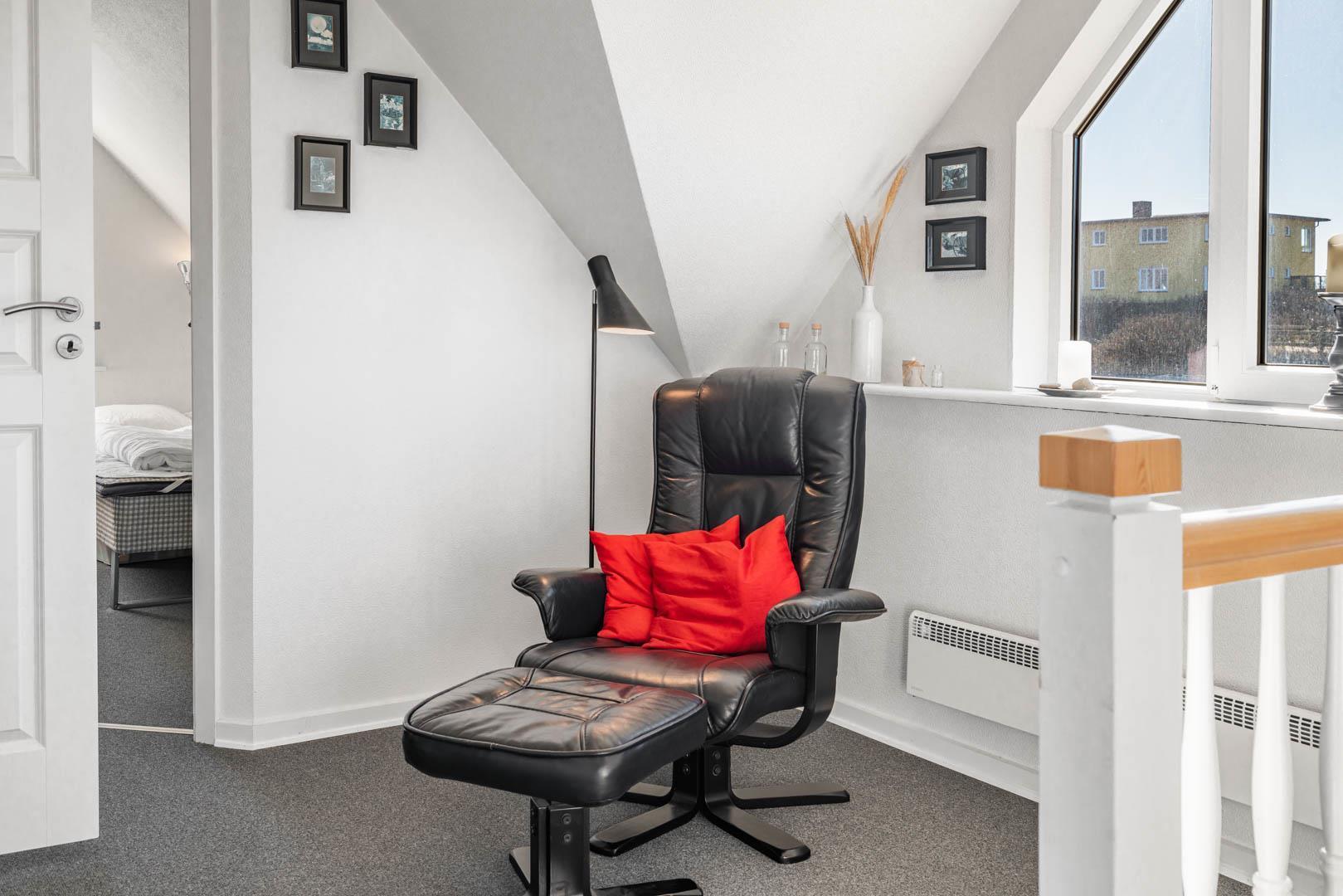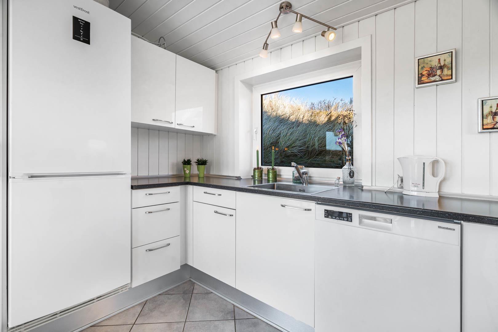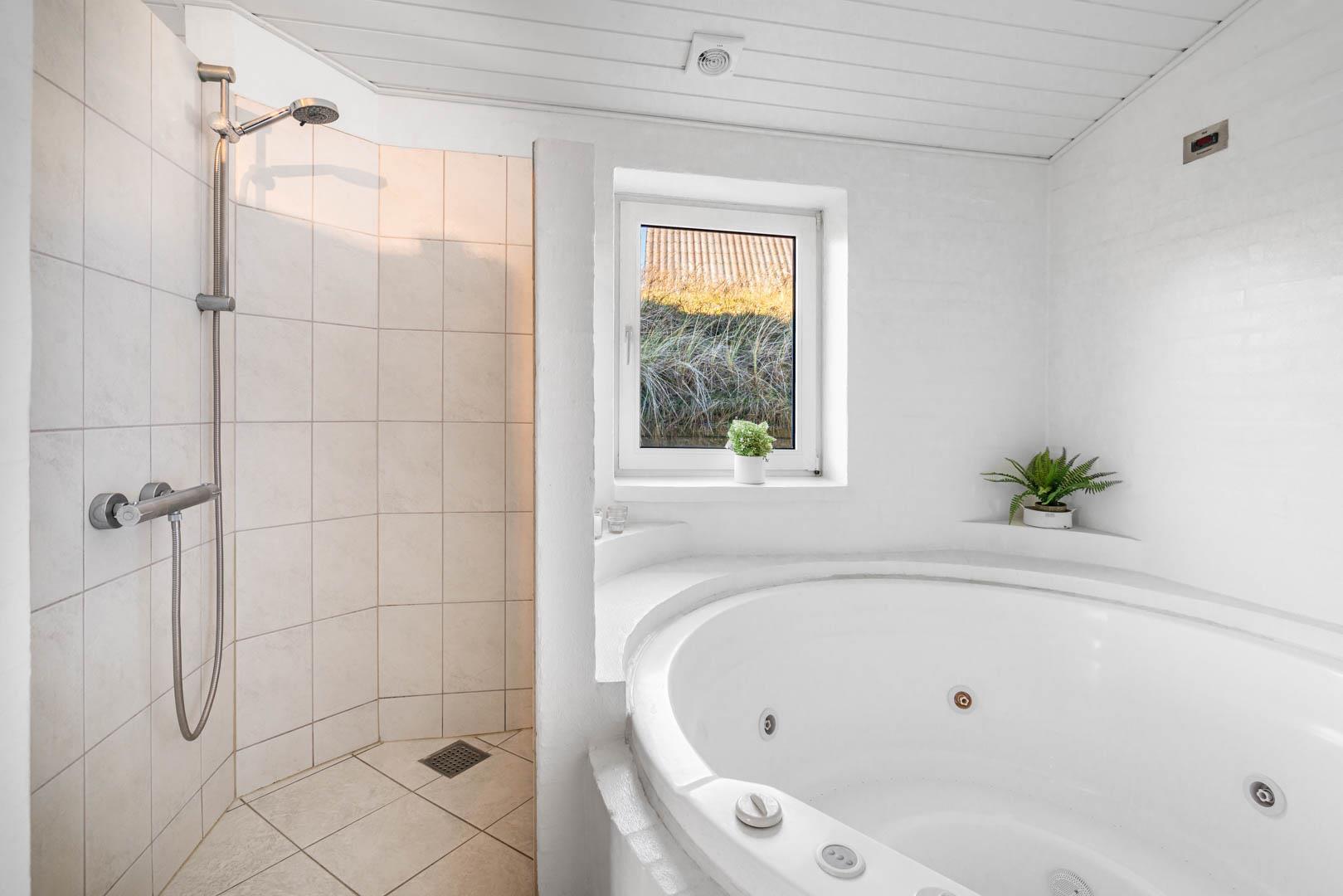 Nyd stilheden under stjernerne, mens I betragter solen, der synker ned i det aftenblanke Vesterhav. Sådan kan I tilbringe hver eneste ferieaften i dette feriehus ligger i tredje række til stranden, og hvis I på et tidspunkt får løsrevet dig fra den smukke udsigt, kan den sidste rest af hverdagsstress opløses i husets wellnessafdeling, som har både spa, dampbad og sauna.
