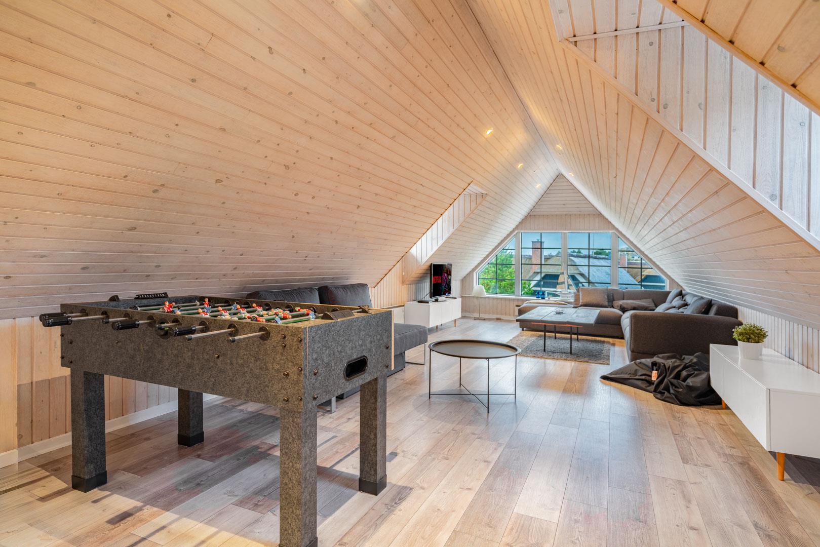 Smagfuldt og rigtig godt indrettet pool hus med stråtag og med en 70 kvm. stor træbelagt terrasse med standvands spa, beliggende på en større ugenert kuperet klitgrund i gåafstand fra Henne Strand by samt den sprudlende Vesterhav. Sommerhuset er praktisk indrettet med rummeligt køkken/alrum med brændeovn samt varmepumpe og herfra er der adgang til 1. salen med ekstra soverum og en unik panoramaudsigt over den flotte og rolige klitområde. Opsat bordfodbold. Pool området ligger i forbindelsen med køkken/alrummet, hvorfra alle aktiviteter i pool rummet kan følges igennem de store panorama vinduer.