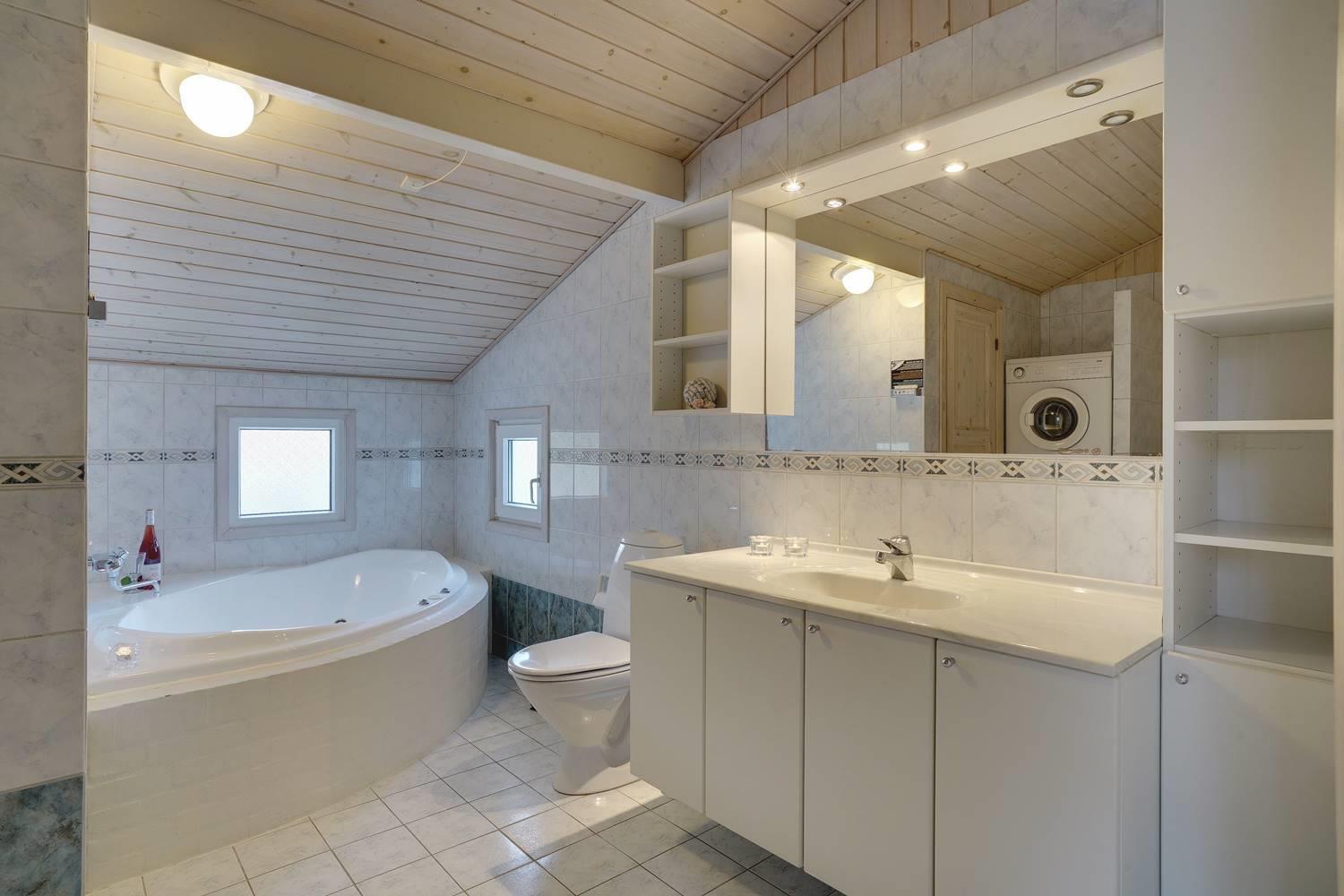 På en skøn, kuperet grund i roligt område for enden af blind stikvej ligger dette pragtfulde og velpassede kvalitetshus. Dejligt, kombineret køkken-/ spiseafdeling hvorfra der er udgang til overdækket terrasse. Den hyggelige stue er indrettet med gode kvalitets møbler - der er et lille trin mellem spiseafdeling og stuen. 3 soverum med gode senge. Flot badeværelse med spa og adgang til sauna. Om der er morgen-, eftermiddags- eller aftensol, kan denne i alle døgnets lyse timer nydes fra sommerhusets terrasser.