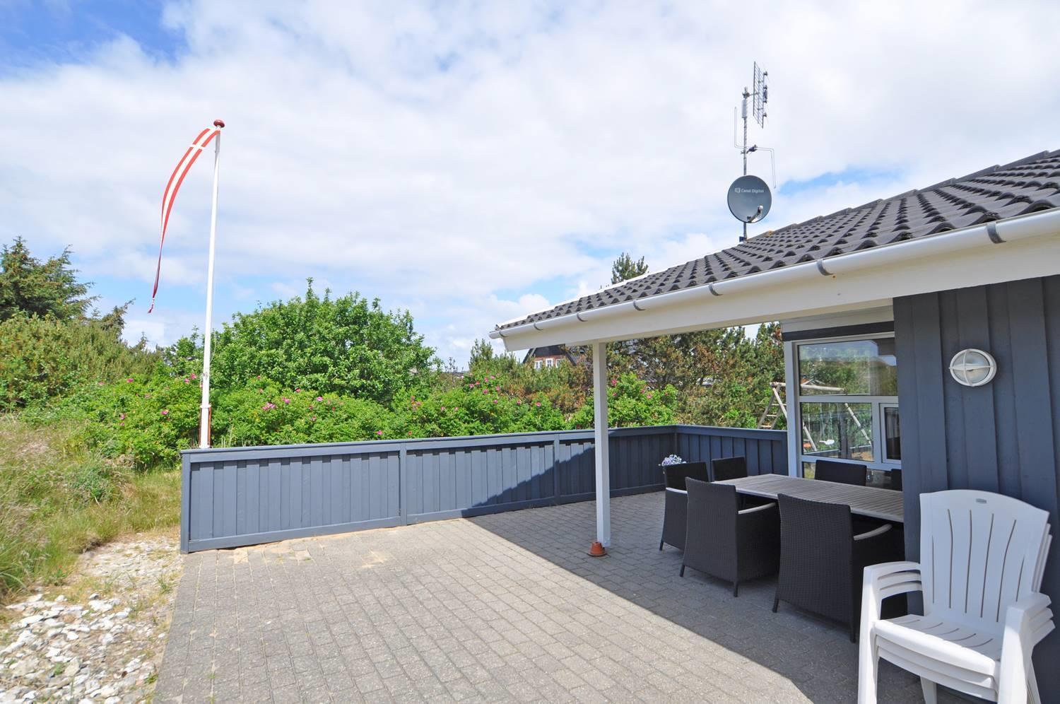 Velholdt kvalitetshus med sauna og spa nær Henne Strand, perfekt til afslapning hele dagen på overdækket terrasse.