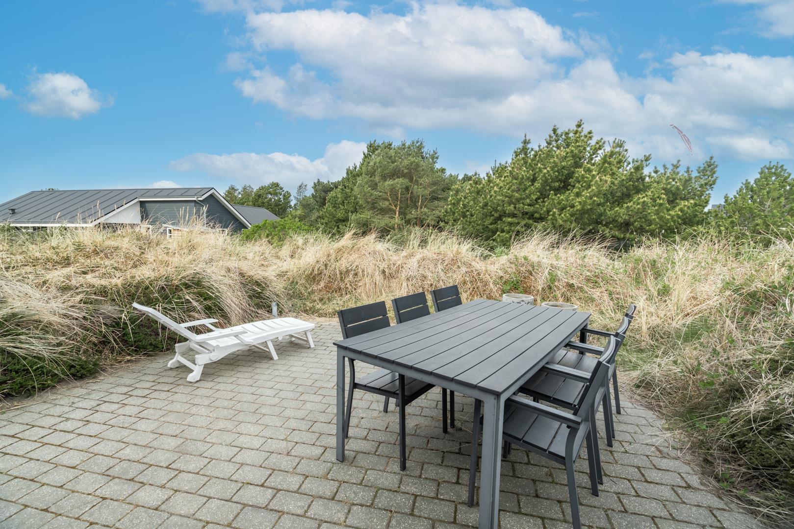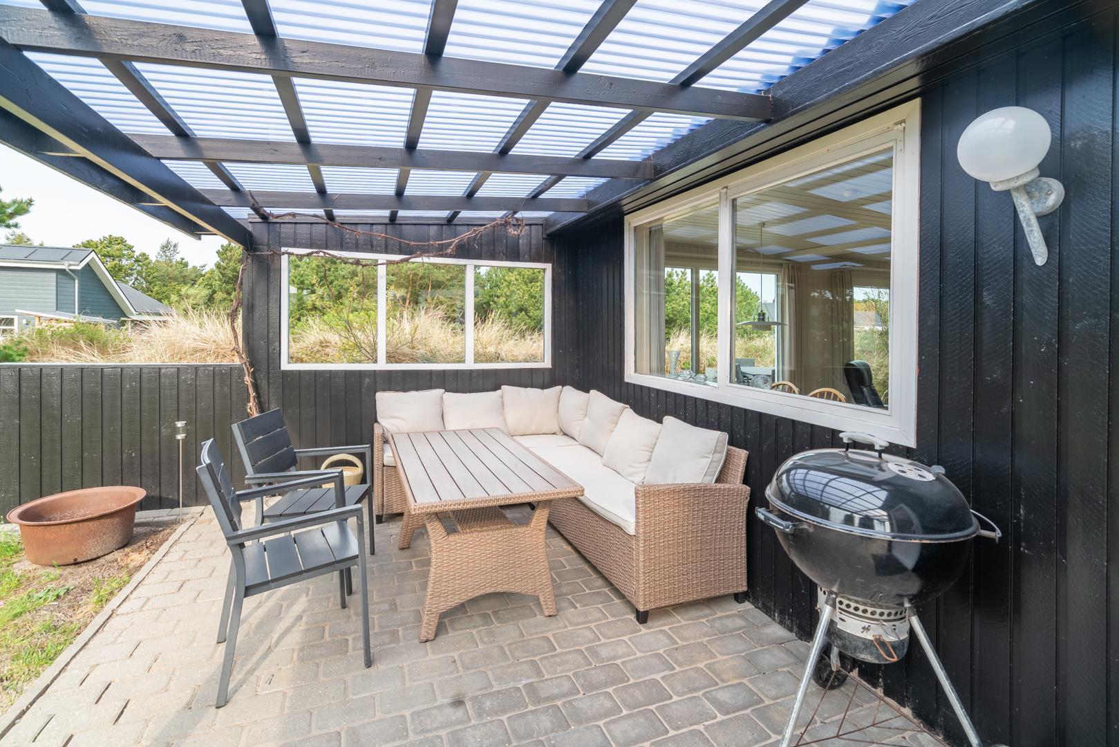 Fra stuen er der adgang til én af de tre skønne terrasser, hvor du kan nyde solen, finde læ for vinden eller bare slappe af med udsigt til den fredelige naturgrund og de omkringliggende klitter. Terrasserne er udstyret med havemøbler – ideelt til lange sommeraftener under åben himmel.