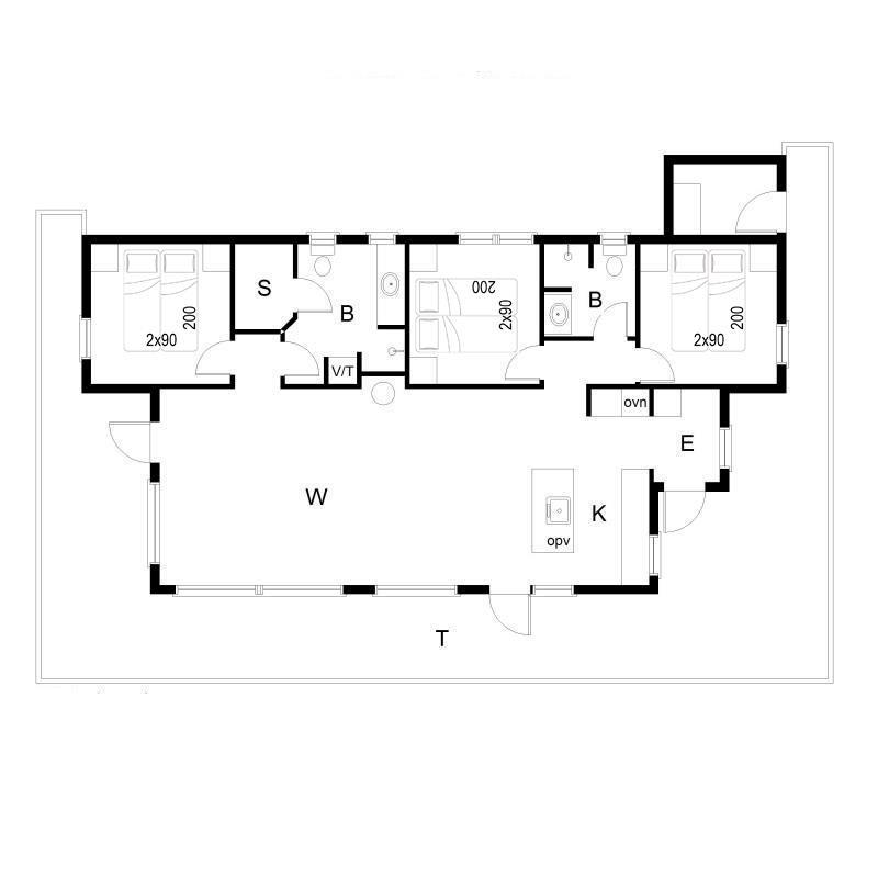 hyggelig brændeovn. Her kan eftermiddagskaffen nydes sammen med udsigten til naturens farver, gennem de store glaspartier, der strækker sig fra gulv til loft. Herudover byder huset på tre soveværelser med god skabsplads og dobbeltsenge, og endelig er her praktisk børneudstyr som babybadekar, barneseng og højstol.