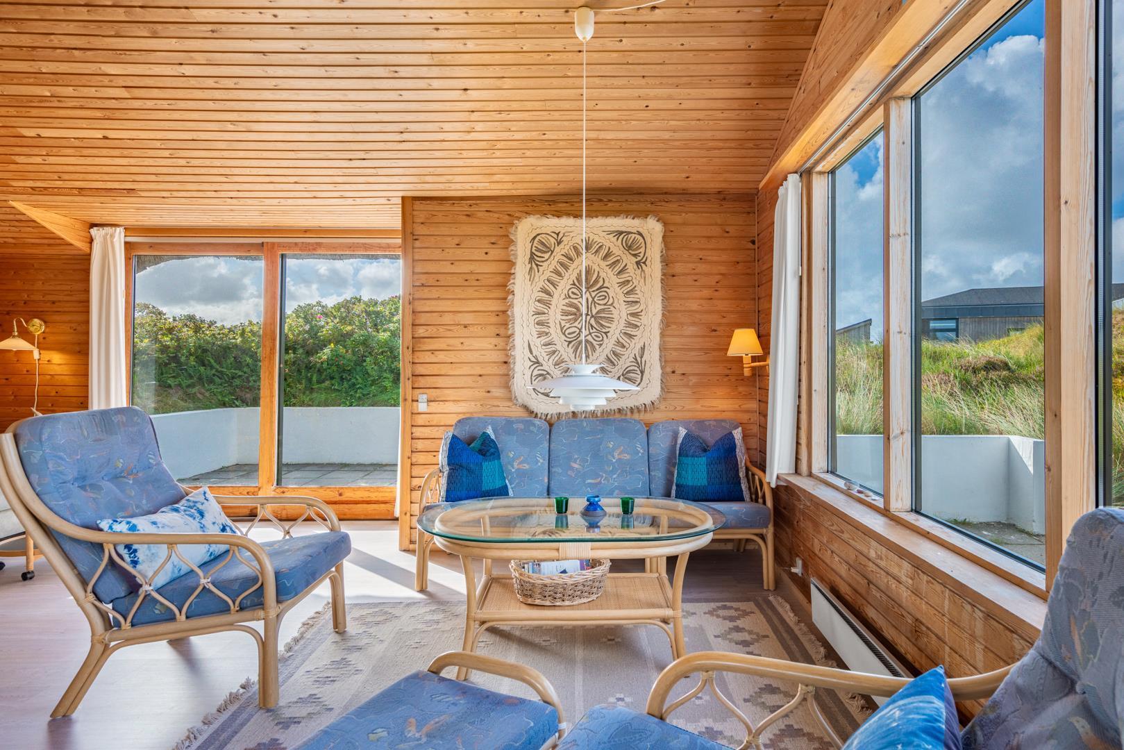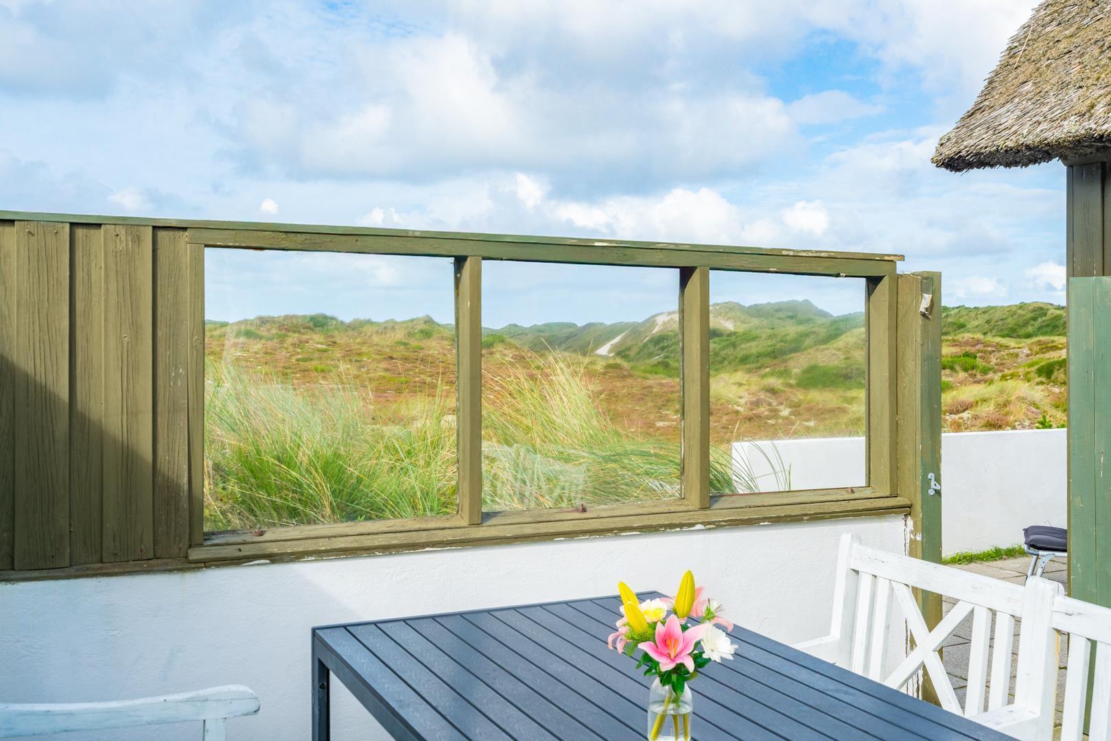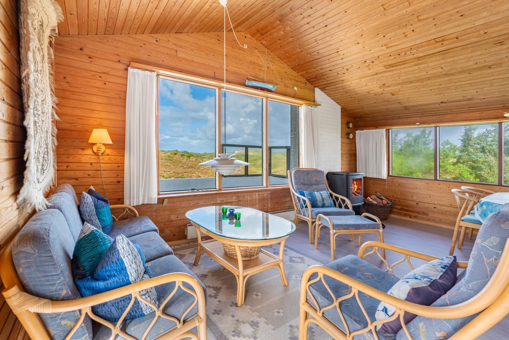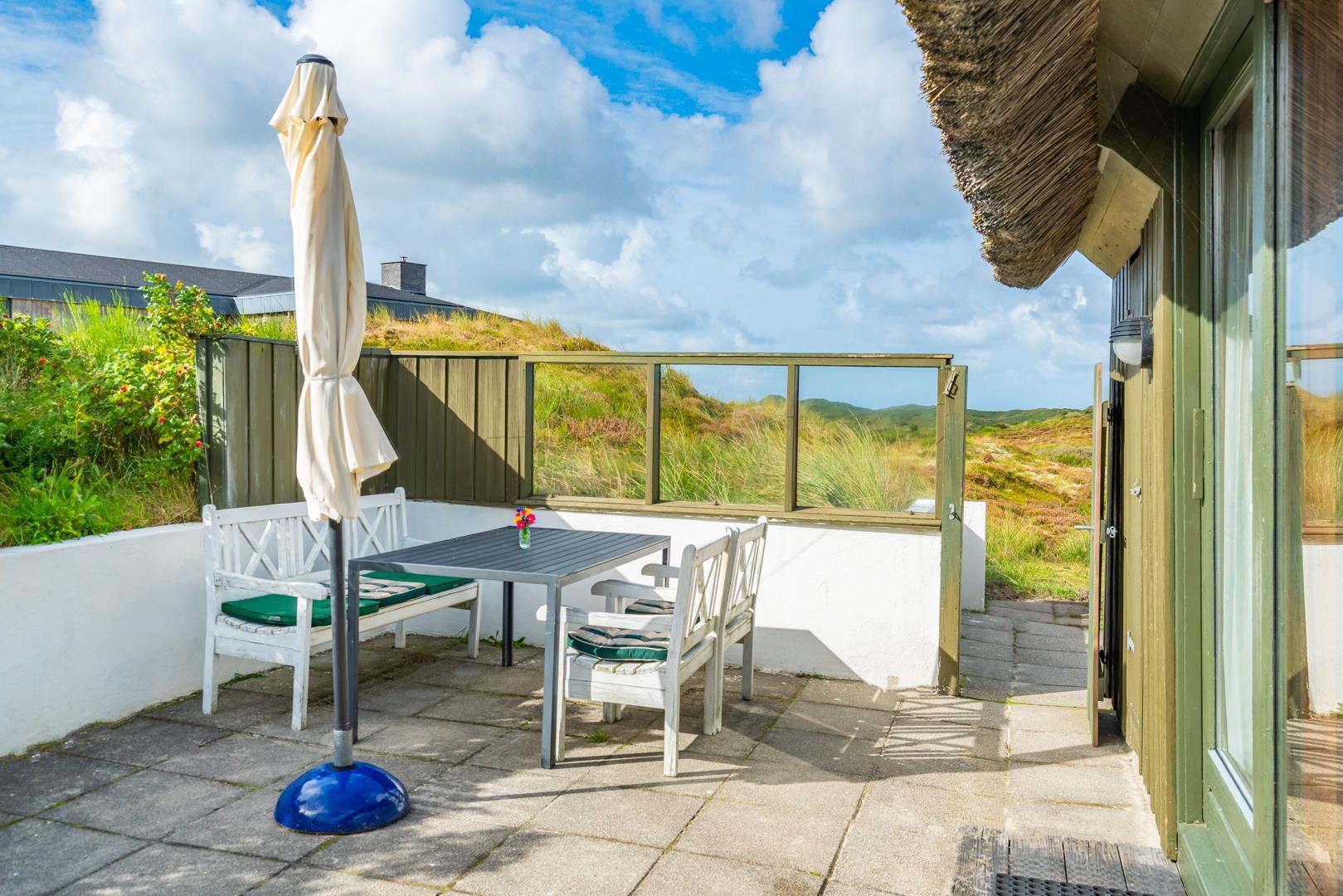 Fra stuen, der har en indbydende atmosfære, er der direkte udgang til dejlige, ugenerede terrasser med en fantastisk udsigt. Her kan du nyde morgenkaffen med udsigt over det smukke klitlandskab eller slappe af med en god bog, mens du lytter til havets brusen i baggrunden. De skønne udendørsarealer indbyder til hyggelige stunder med familien og vennerne.