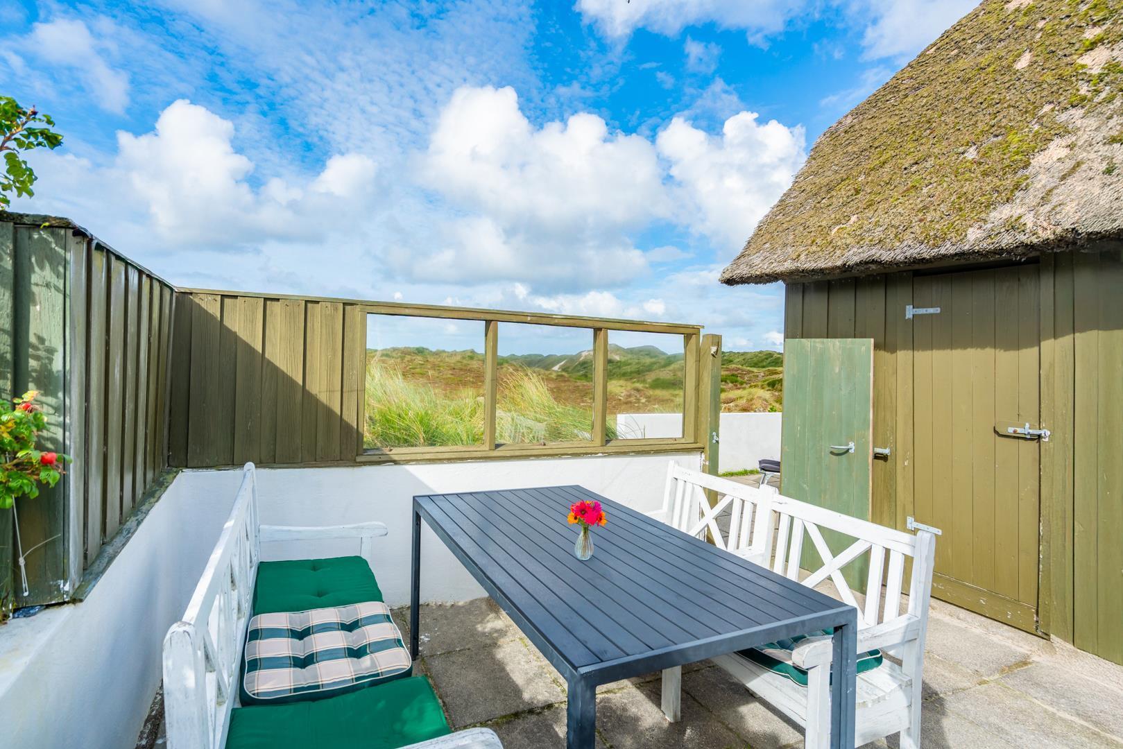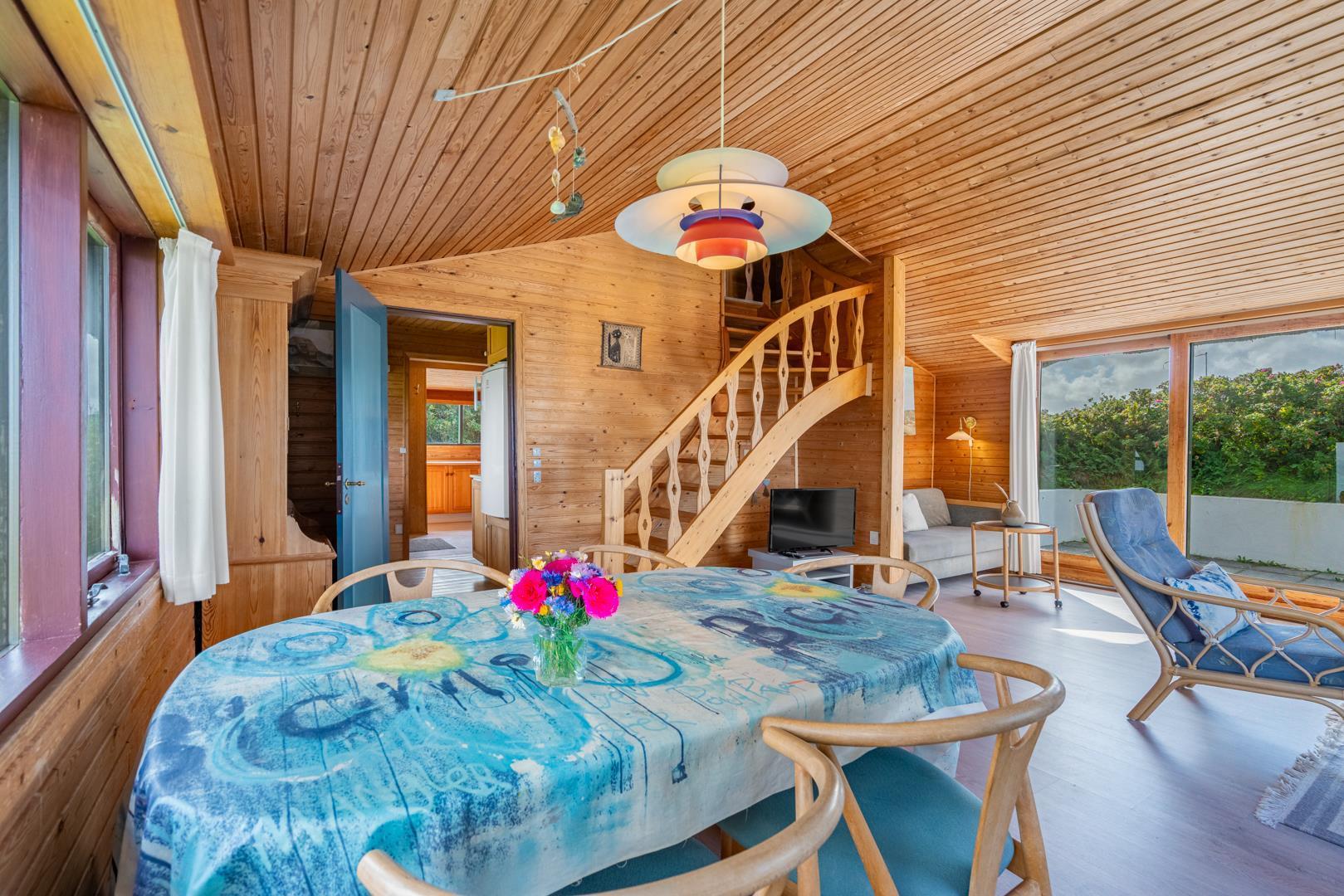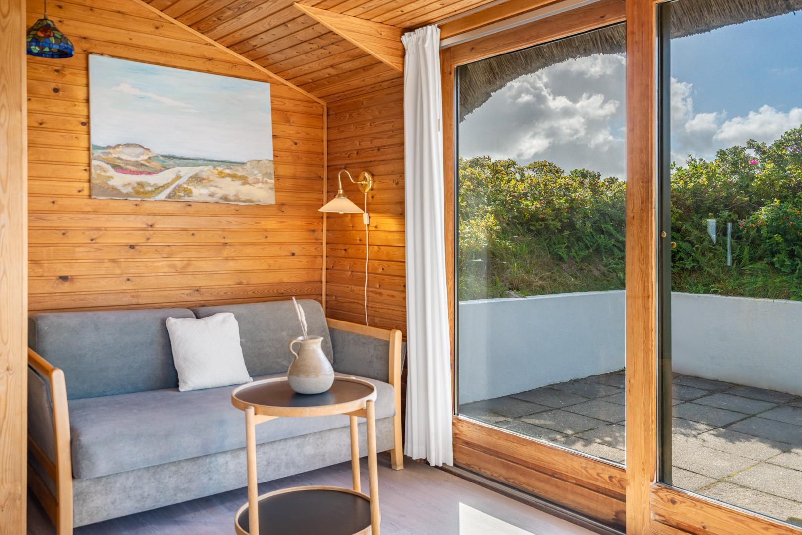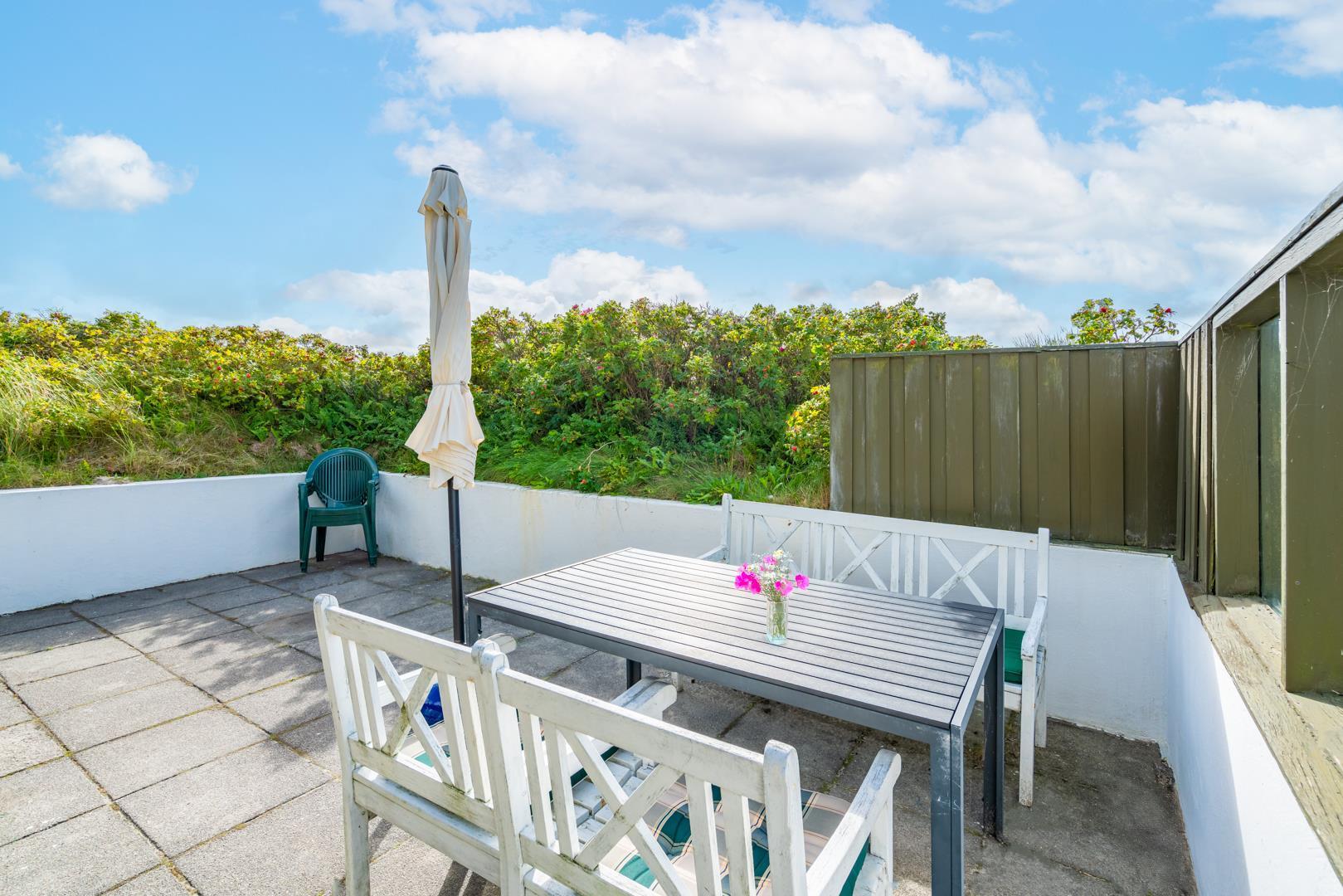 Fra stuen, der har en indbydende atmosfære, er der direkte udgang til dejlige, ugenerede terrasser med en fantastisk udsigt. Her kan du nyde morgenkaffen med udsigt over det smukke klitlandskab eller slappe af med en god bog, mens du lytter til havets brusen i baggrunden. De skønne udendørsarealer indbyder til hyggelige stunder med familien og vennerne.
