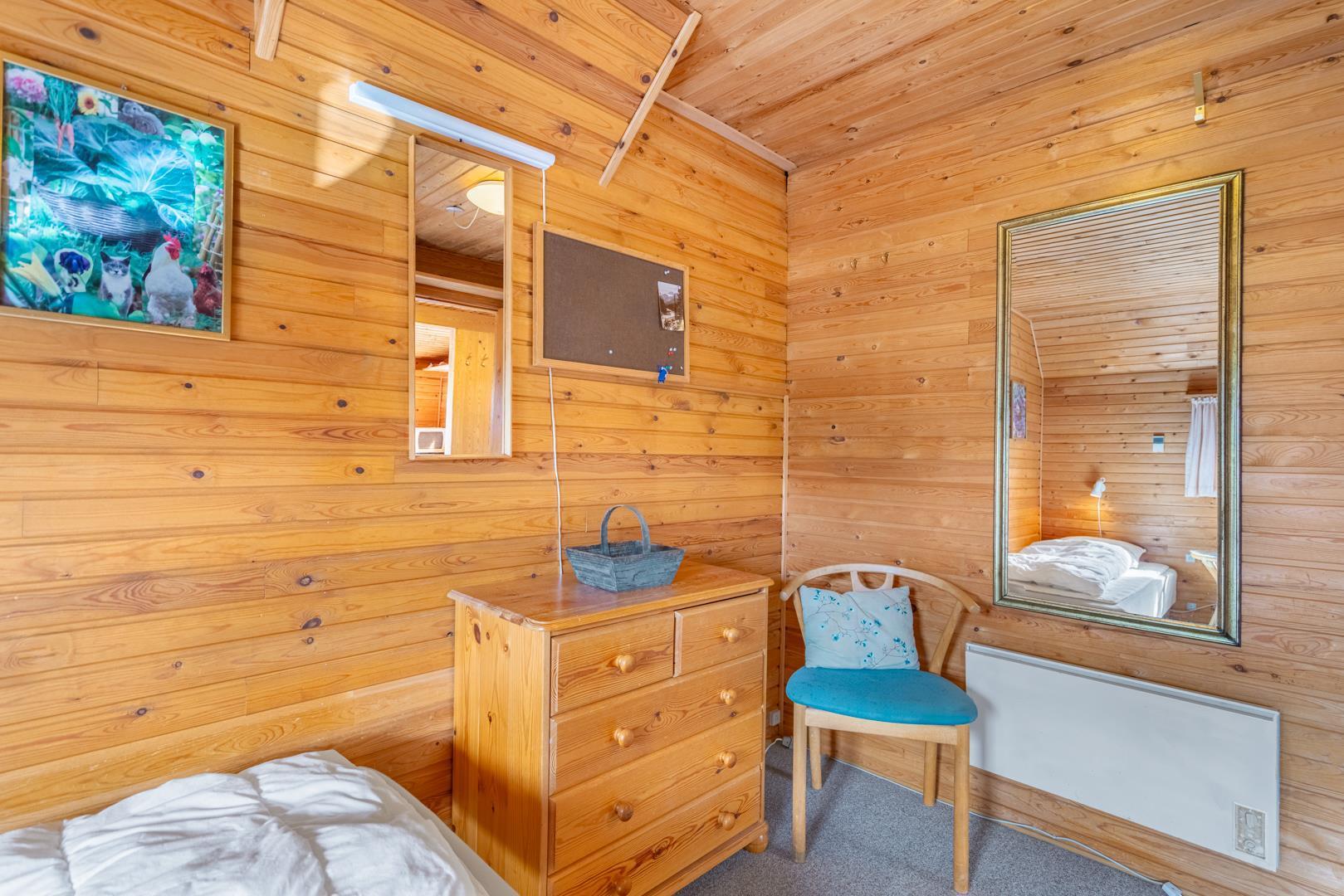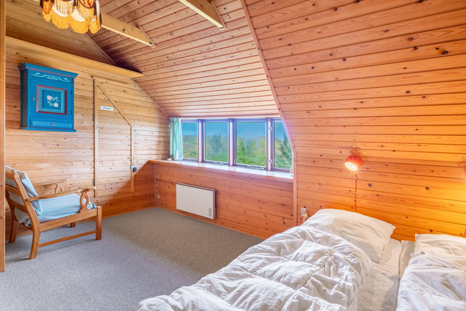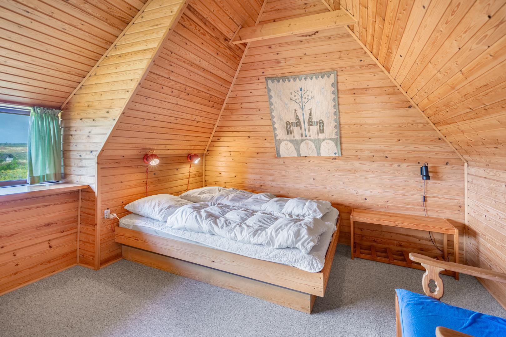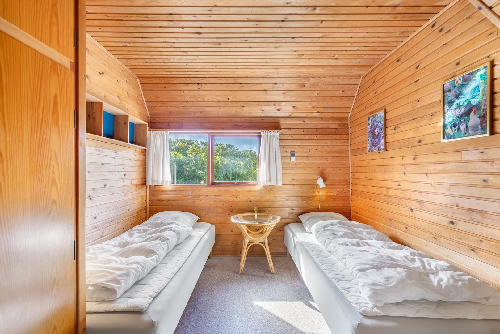Sommerhuset har to soveværelser: det første med en dobbeltseng, og det andet med to enkeltsenge.