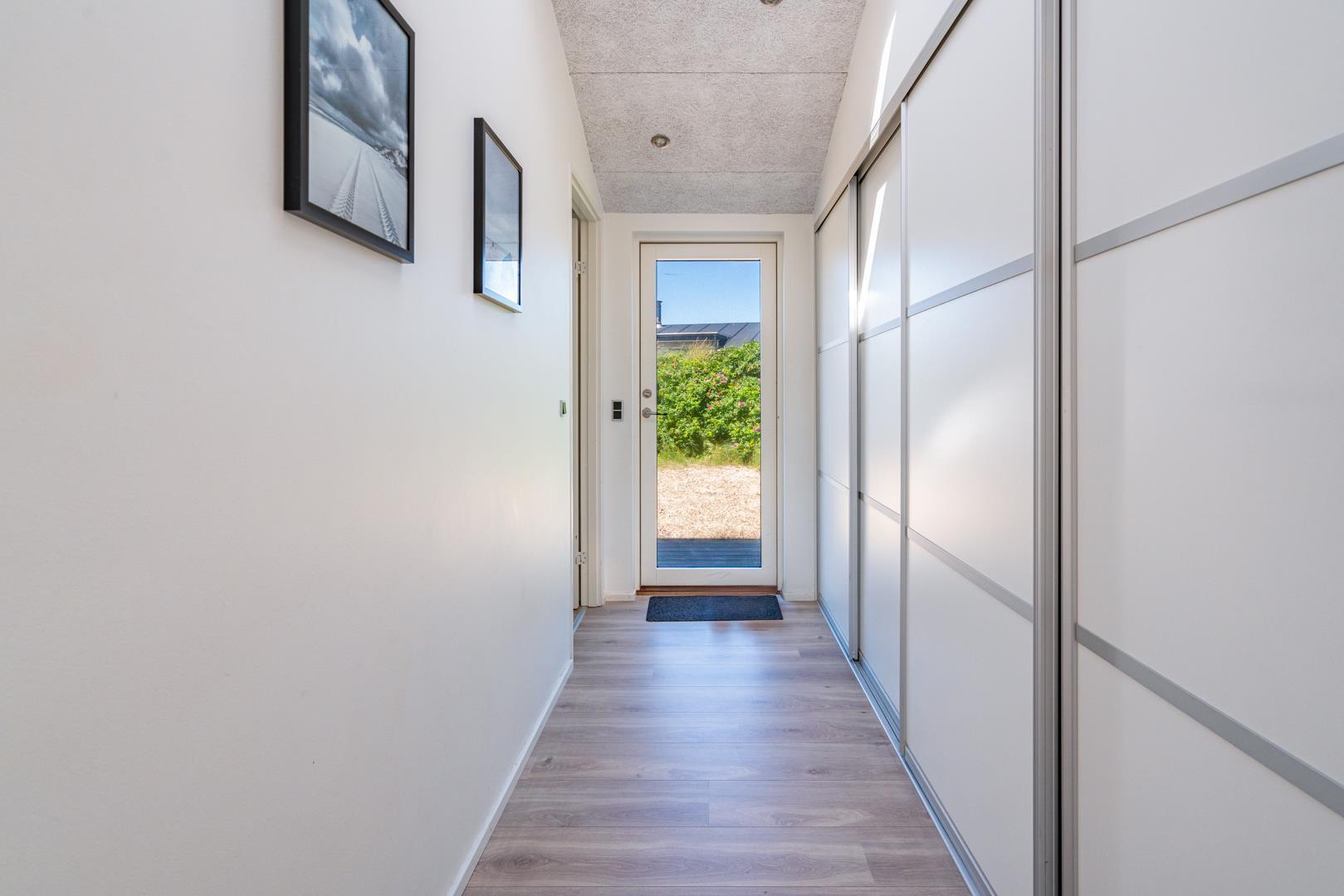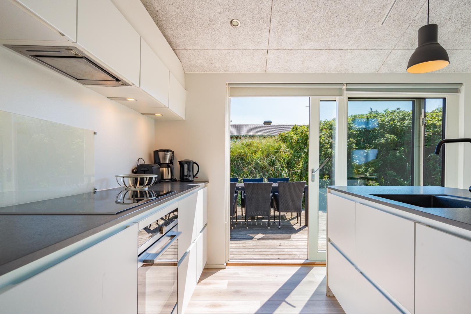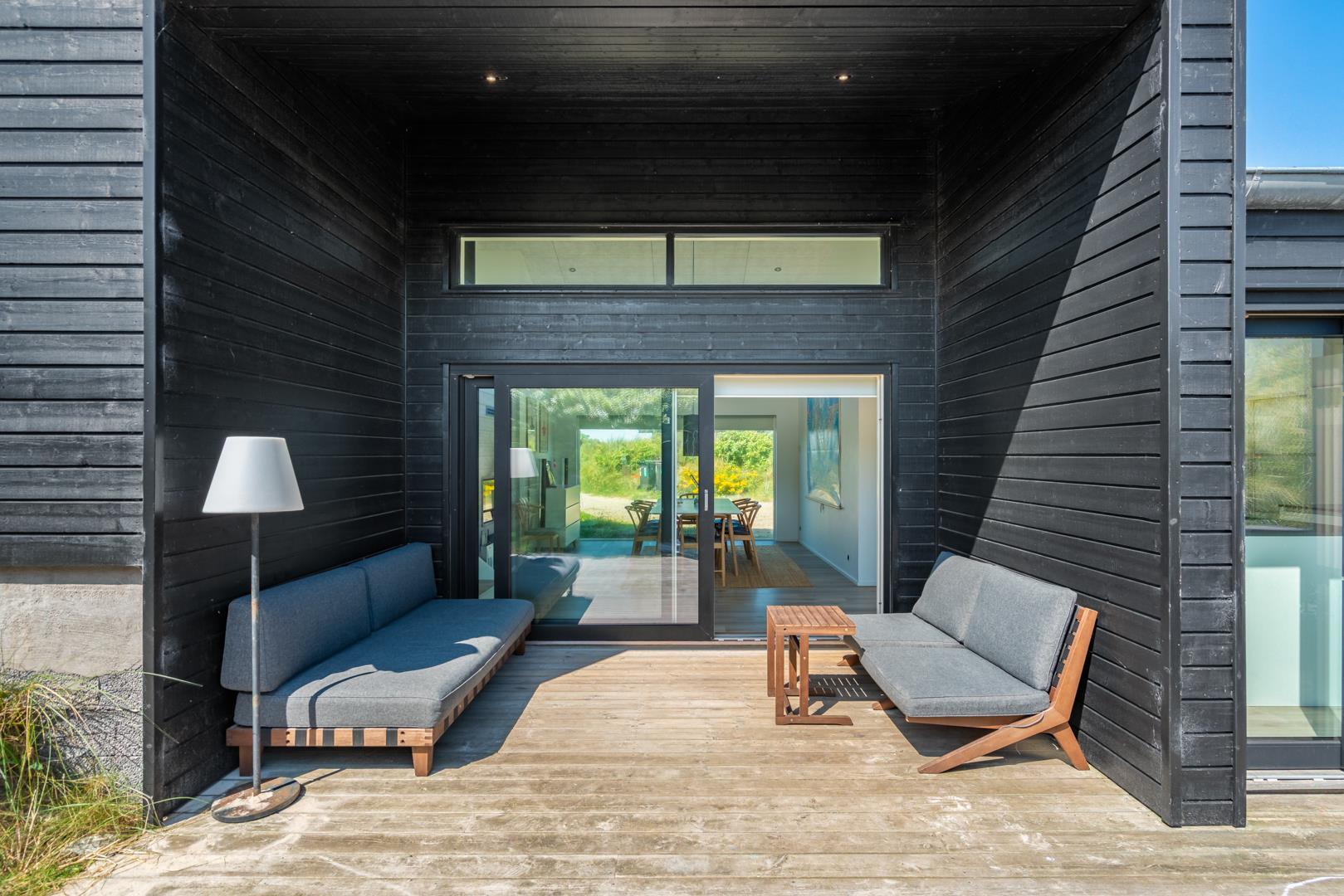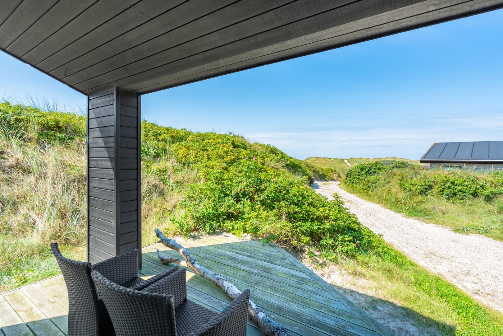Grunden er en smuk, kuperet klitgrund, og der er gjort meget for, at I kan nyde de naturskønne omgivelser. Således danner et stort terrassedæk om huset masser af hyggekroge, hvor feriedagene kan udspille sig i liggestolene eller ved havebordet under overdækningen.