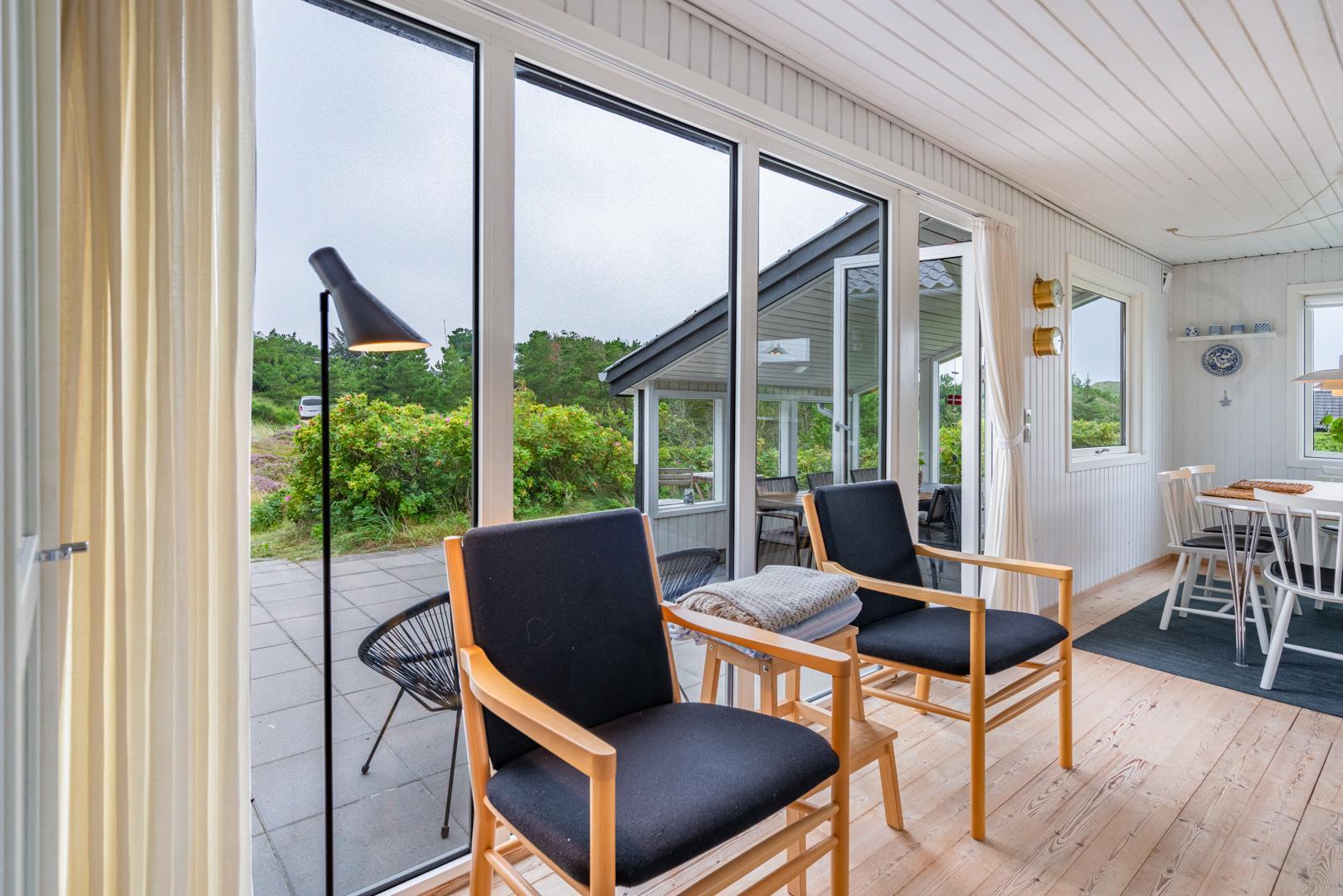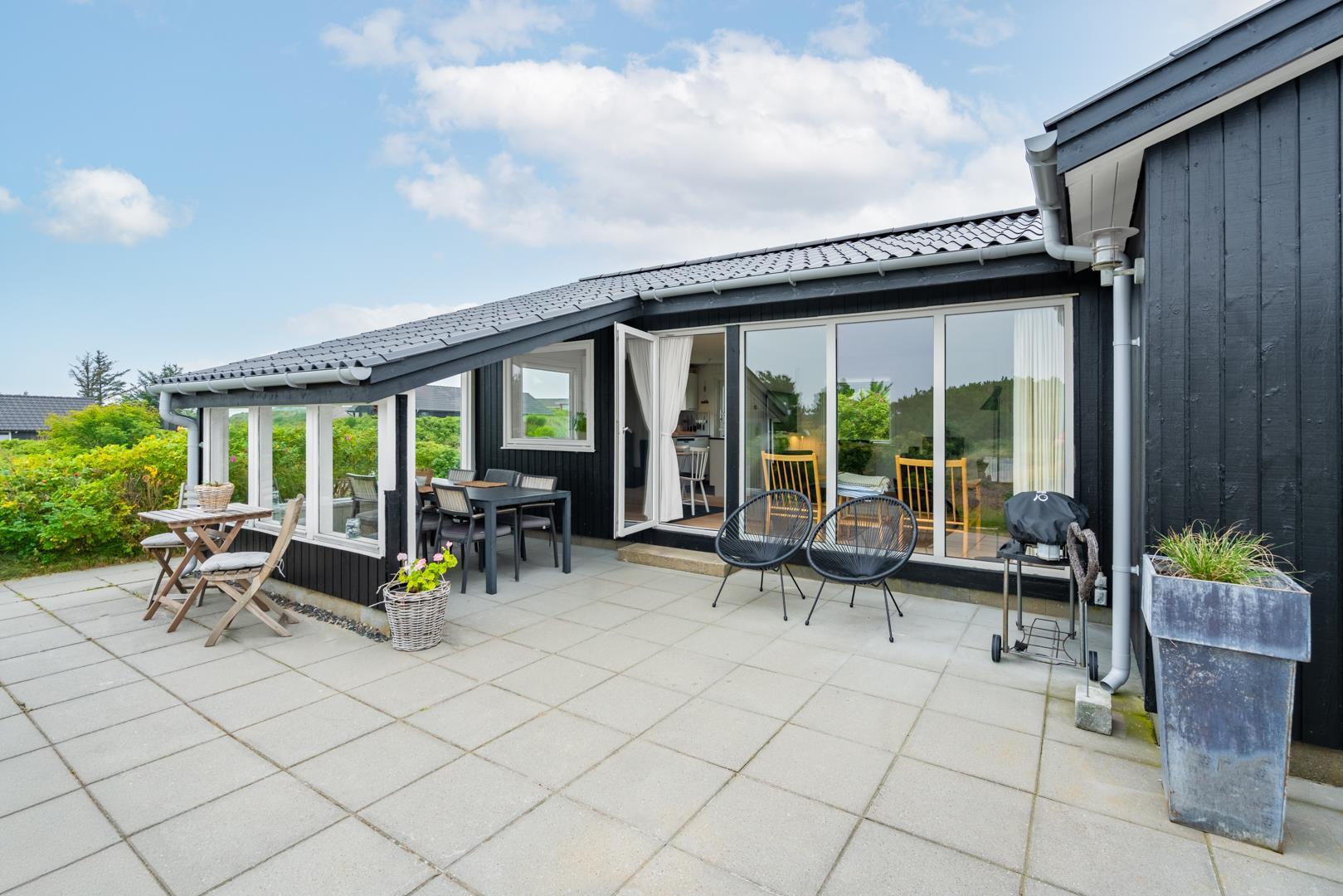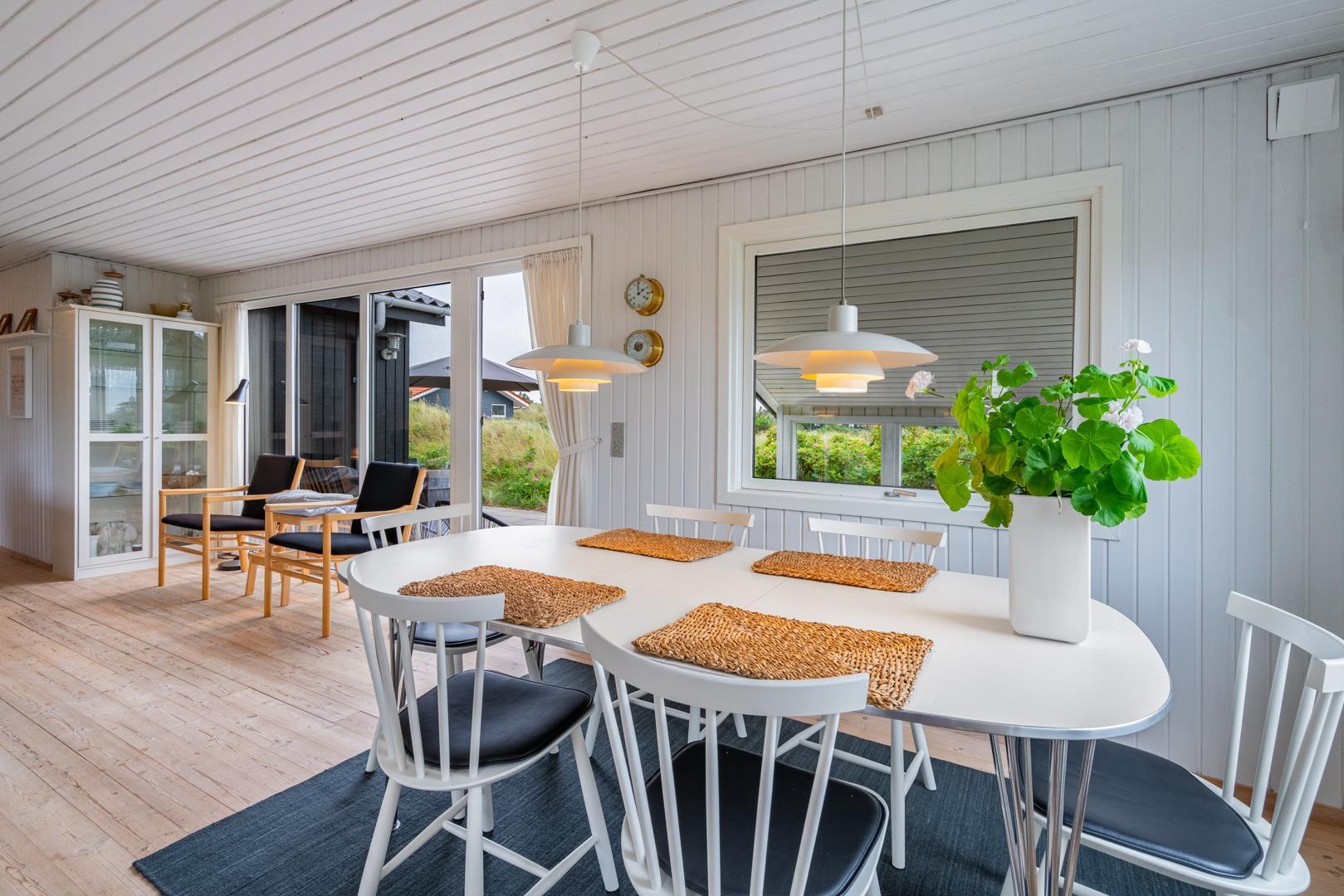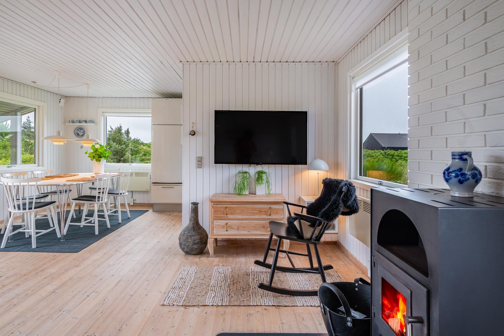 Oplev dette hyggelige og personligt indrettede sommerhus på en højtliggende klitgrund nær Vesterhavet.