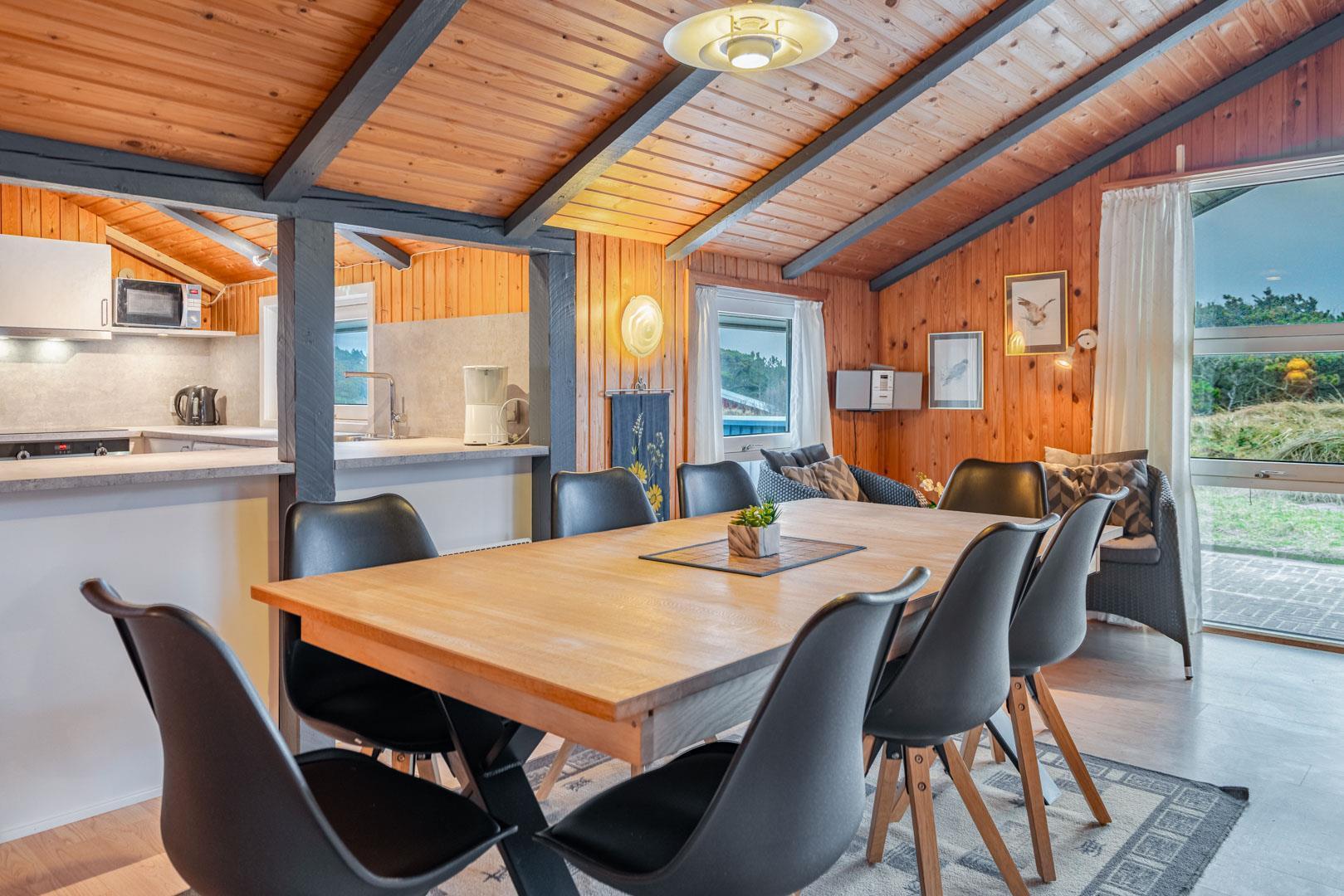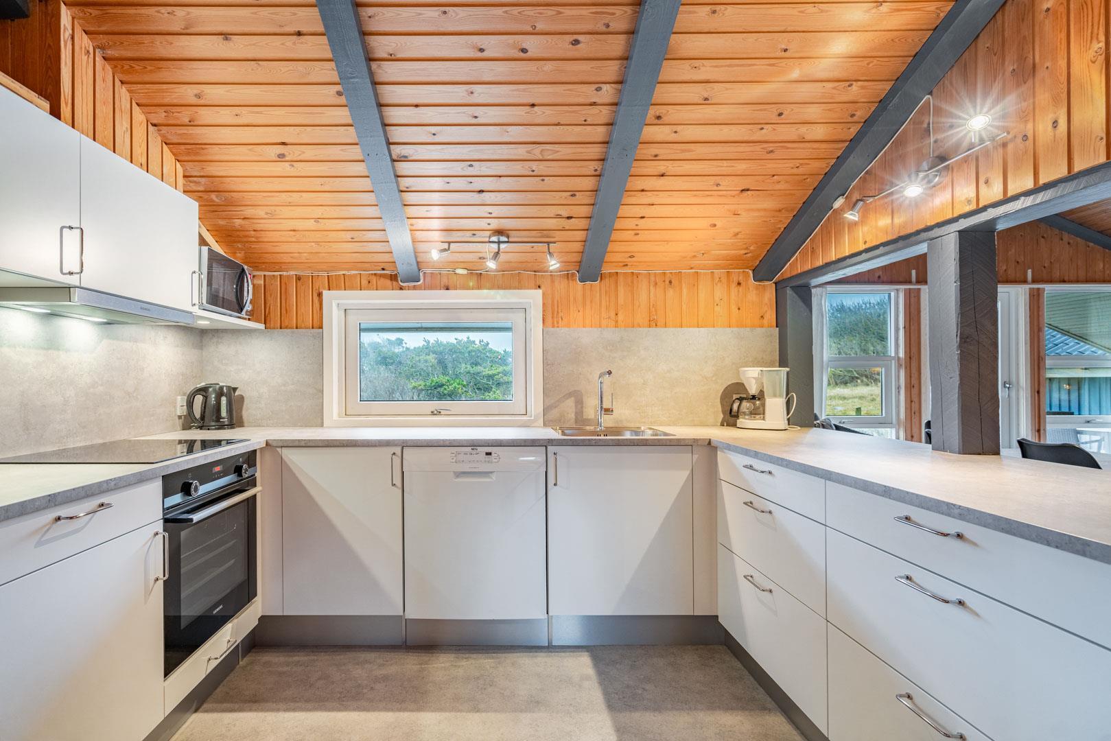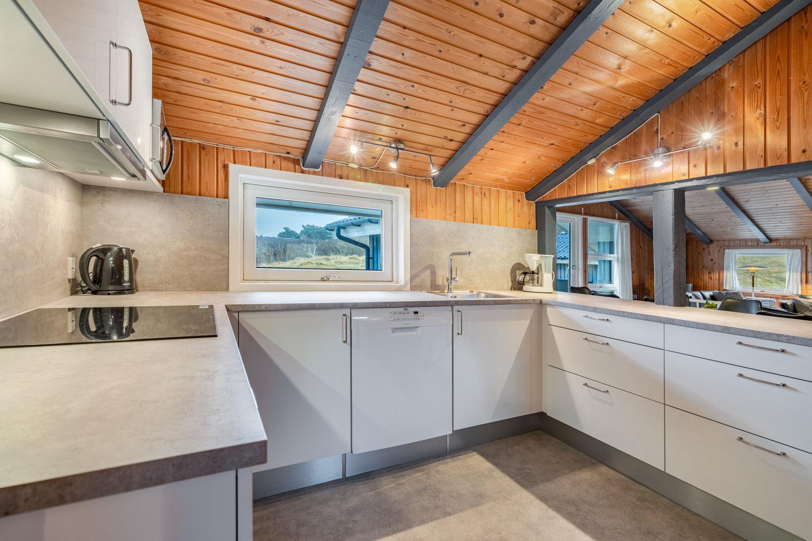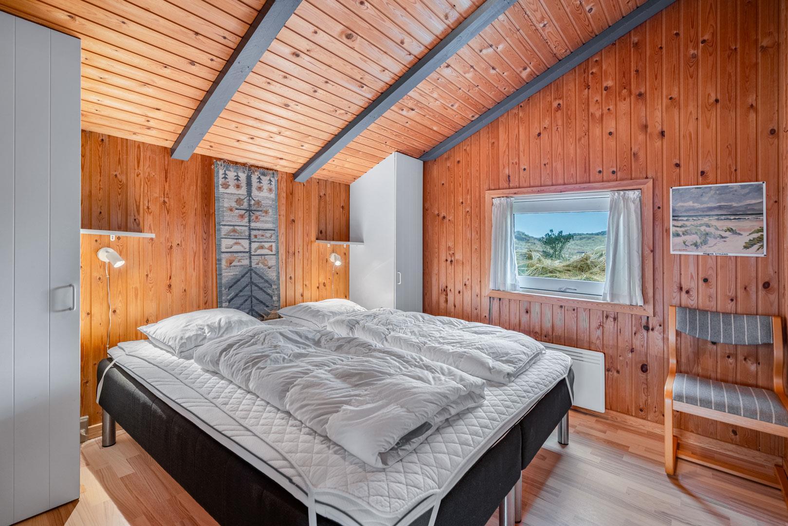 På en pragtfuld kuperet klitgrund tæt ved Henne Mølle Å og Vesterhavet ligger dette hyggelige og velholdte feriehus. Nyere badeværelser, hvoraf det ene er med spa og sauna. Stort køkken i åben forbindelse til rummelig stue. Herfra udgang til delvis overdækket, stor og ugenert terrasse hvorfra der er en flot udsigt over klitterne. Der forefindes en anneks/redskabsrum på grunden.