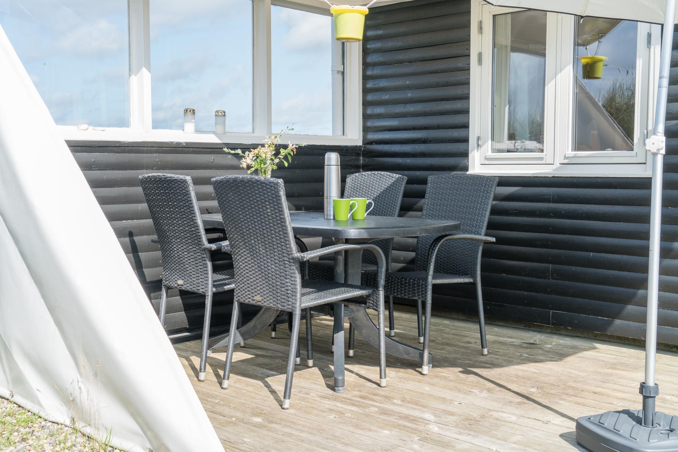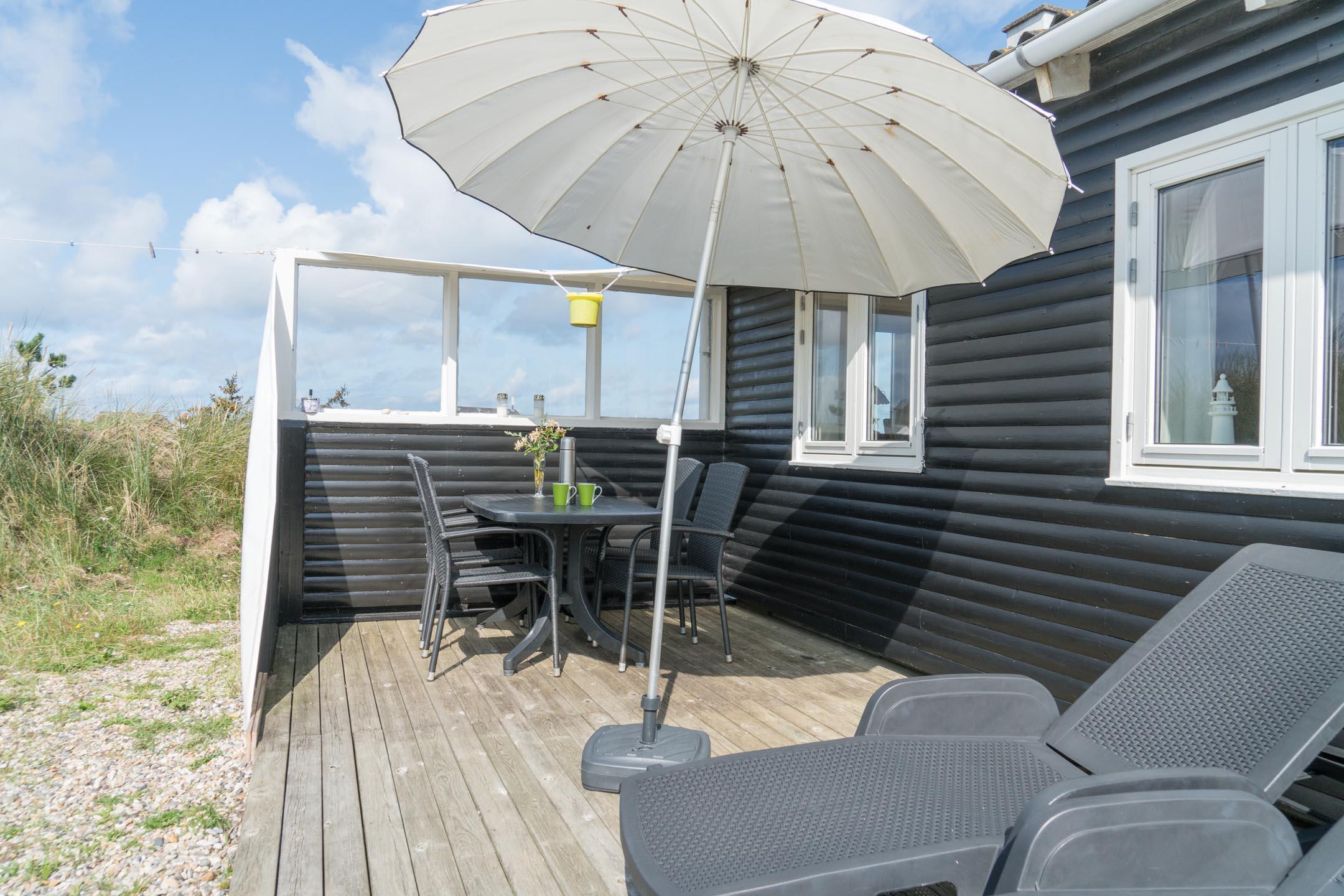 Hyggeligt sommerhus ved Henne Strand med havudsigt og god terrasse, perfekt til en lille familie eller par.