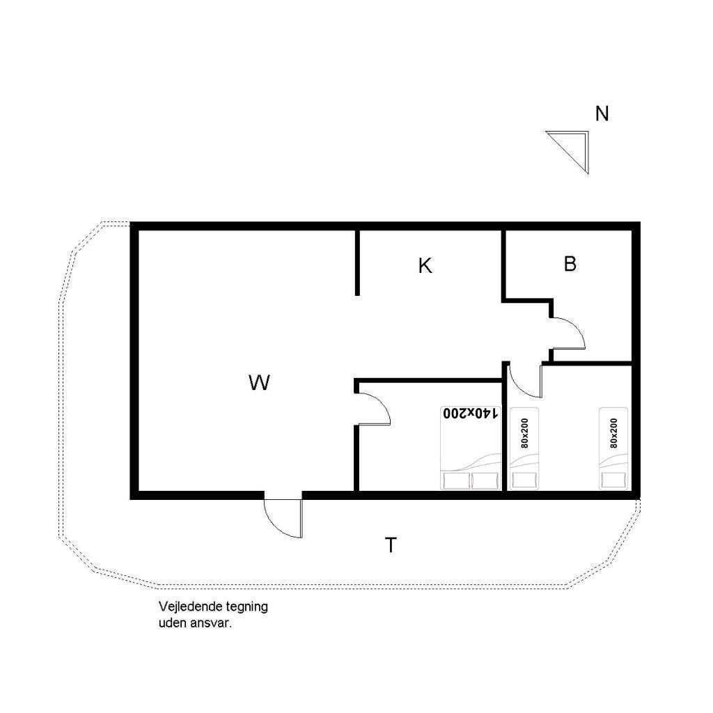 Sengestørrelse: 1 dobbeltseng 140 x 200 cm + 2 enkeltsenge 80 x 200 cm.