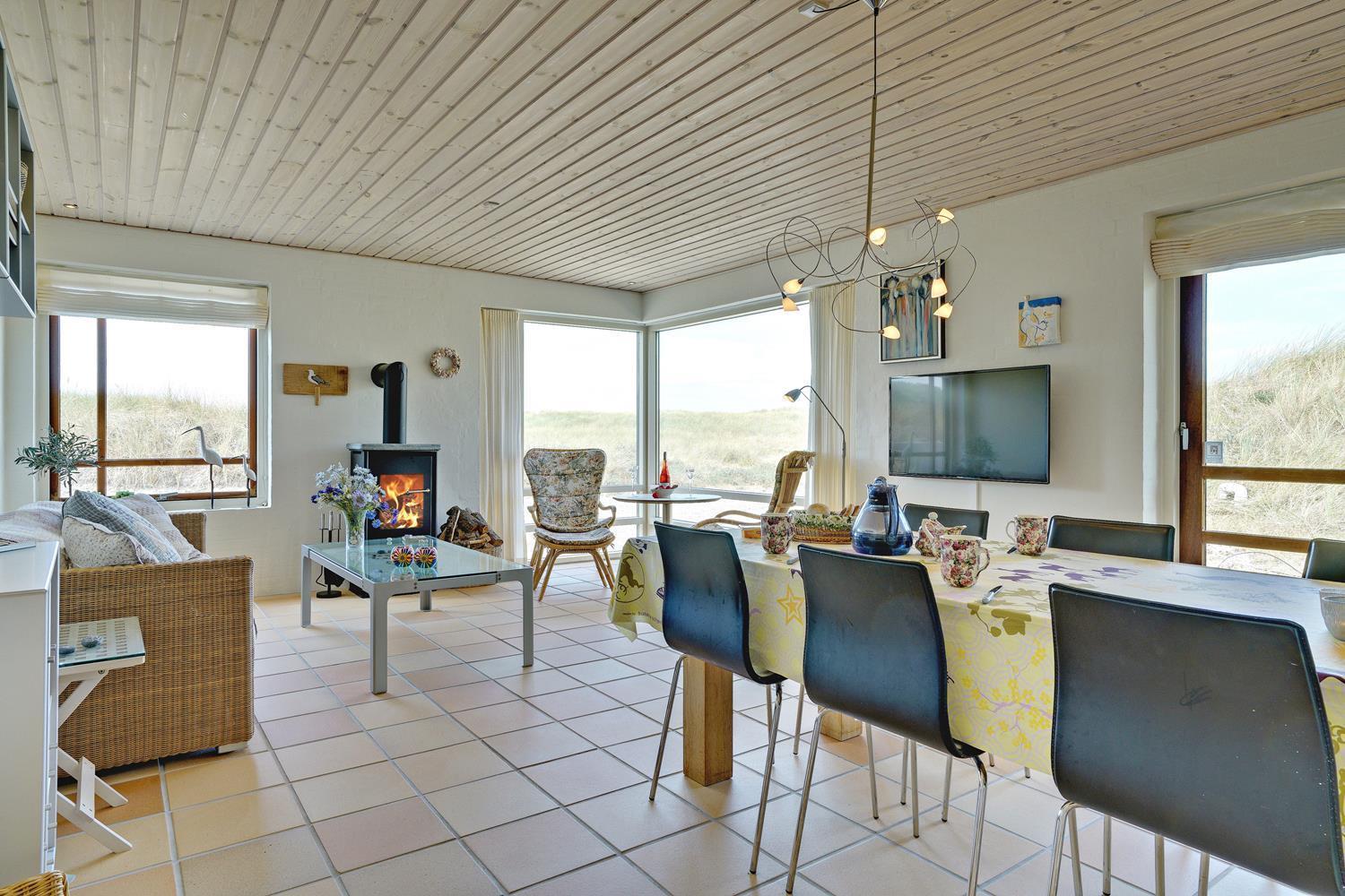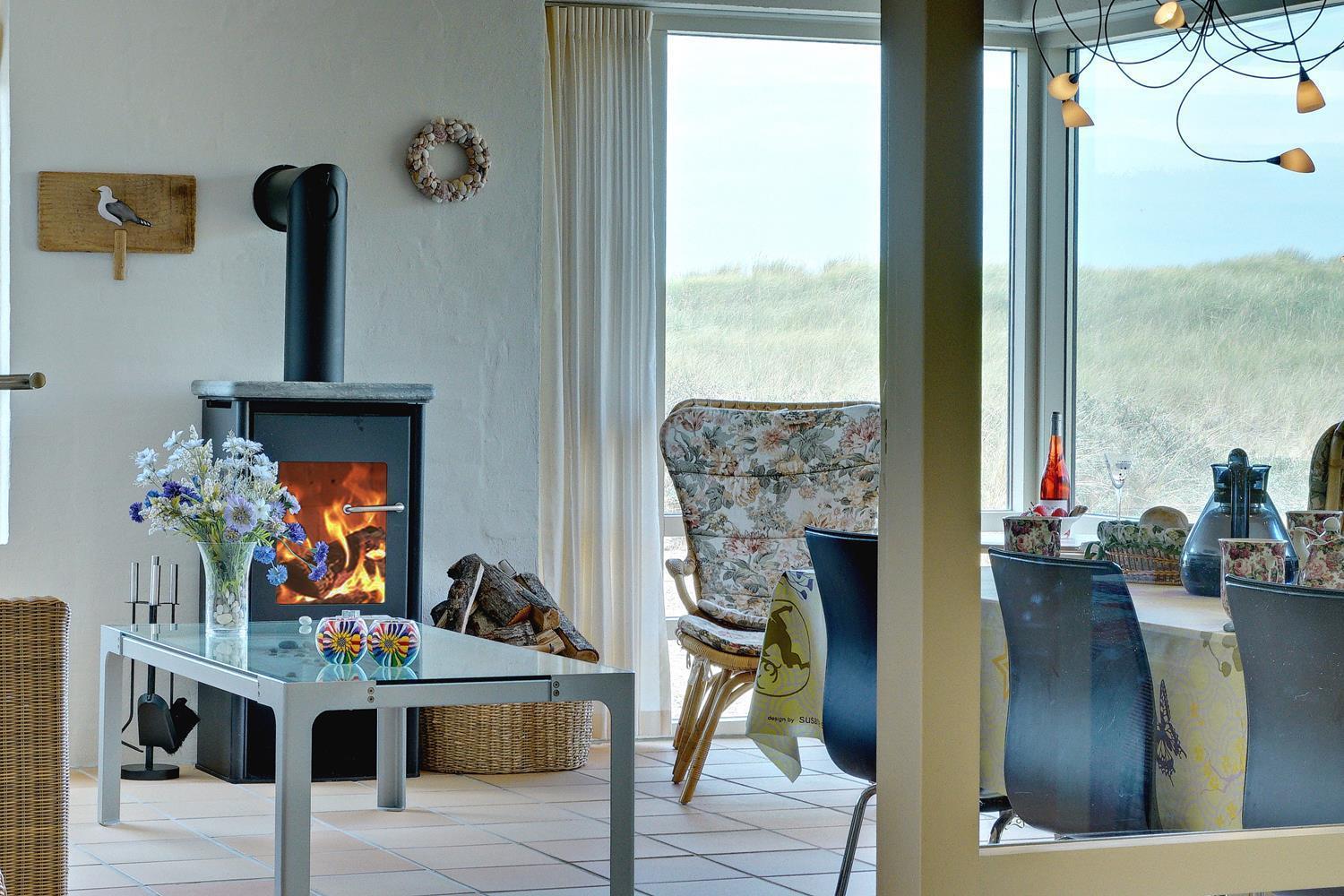 Midt i kuperet, ugeneret klitlandskab og i første klitrække find du dette skønne og meget velholdte feriehus. Huset er overalt renoveret i bedste materialer og fremstår indbydende og i yderst velholdt stand. Lækkert badeværelse med badekar. Stor stue hvorfra den gode udsigt over klitterne kan nydes. Det flotte køkken ligger i forlængelse af stuen. 2 gode soveværelse med god skabsplads. Fremhæves skal også den gode garderobeplads i husets bryggers og gangareal. Stor lukket og læfuld terrasse som er velegnet til familien med hund. Et pragtfuld feriehus med et stenkast til Vesterhavets bølger og få minutter til Henne Strands byliv. Senge: 2 x 90*200 2 madrasser 1 Dobbelt 180*200 1 Madras.