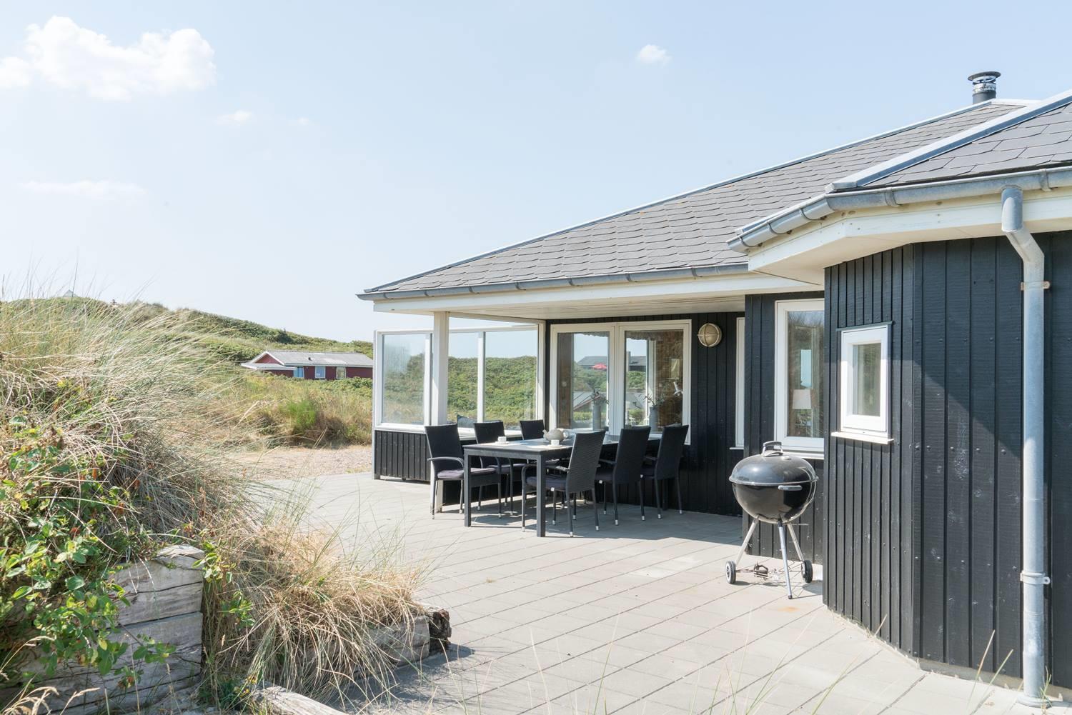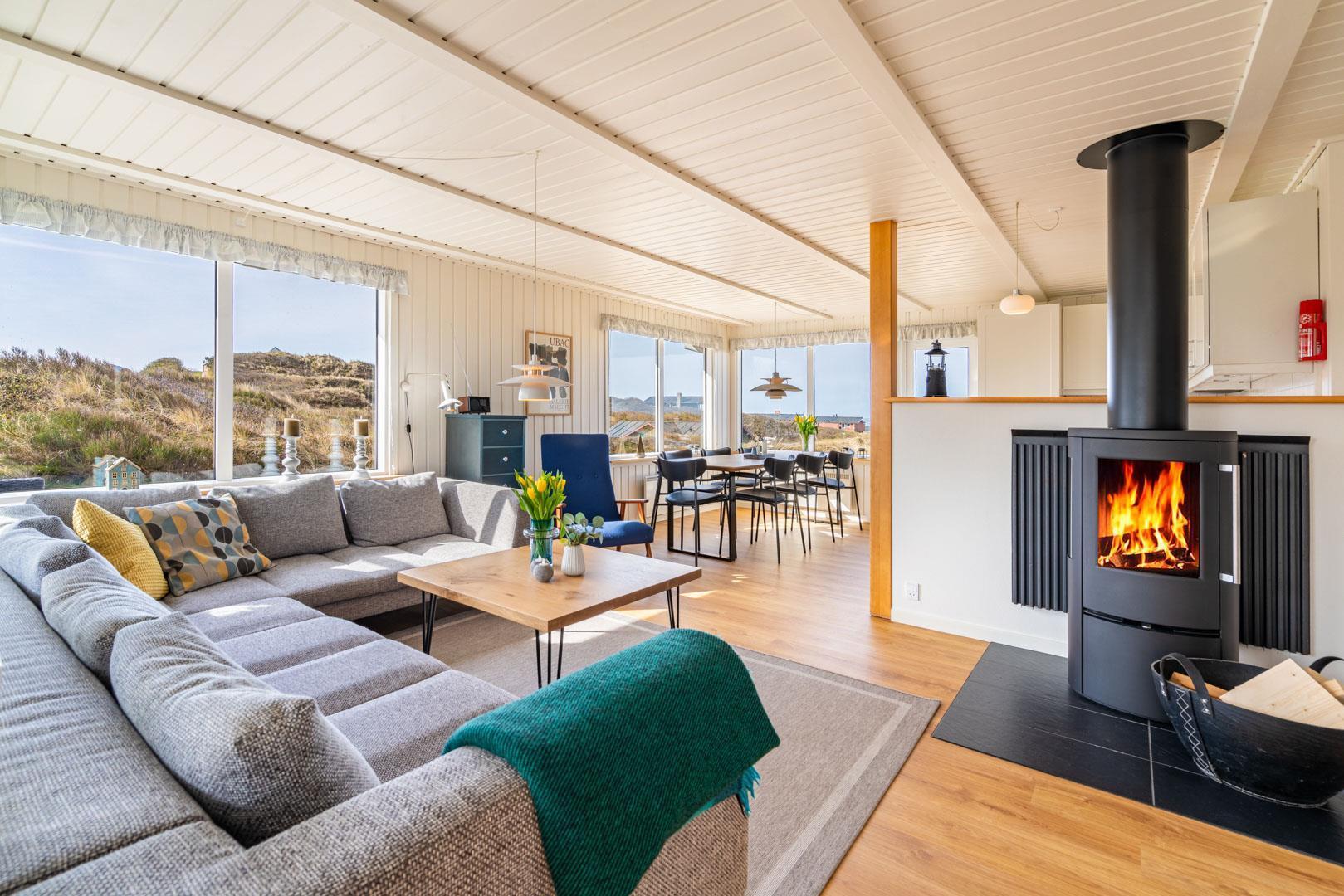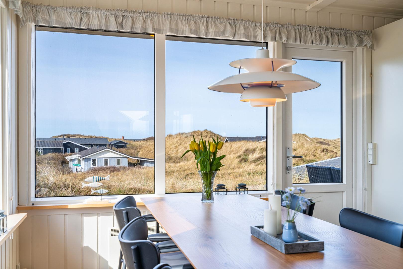 Dette skønne og meget velholdte feriehus med stor garage er beliggende på en af de bedste klitgrunde få hundrede meter fra stranden - med pragtfuld udsigt over havet og området. Huset er smagfuldt og personligt indrettet. Det flotte nye køkken (2021) er i åben forbindelse huset hyggelige stue. Der er tv i alle soveværelser Huset råder over 2 badeværelse med bruser, det ene har spabad. Der er terrasser rundt om hele huset - med gode læ muligheder. Aktivitetsrum i anneks med Playstation 2 og bordfodbold, samt depotrum med ekstra fryser/køleskab og med plads til cykler mm. Huset ligger i gåafstand til Henne Strand hvide sandstrand og byens livlige handelsliv. Skal golfspillet afprøves, er der ikke langt til Henne Golfbanen som både har Pay and Play og en udfordrende 18 hulles bane.