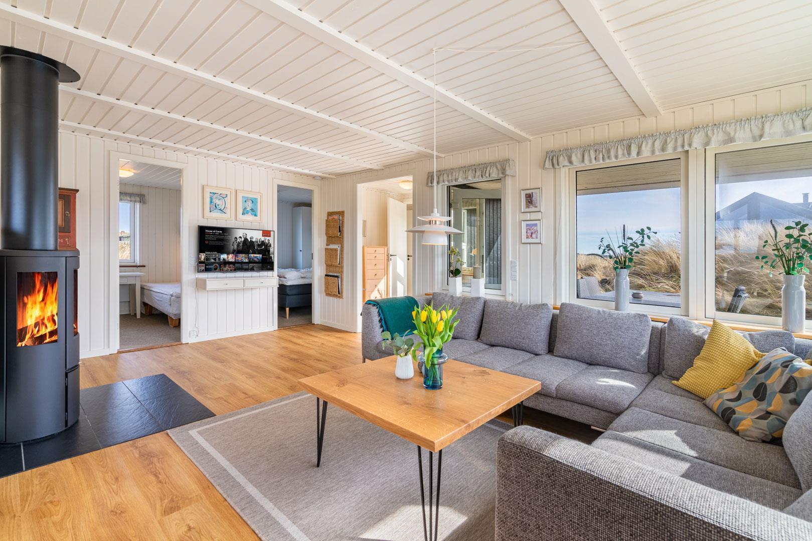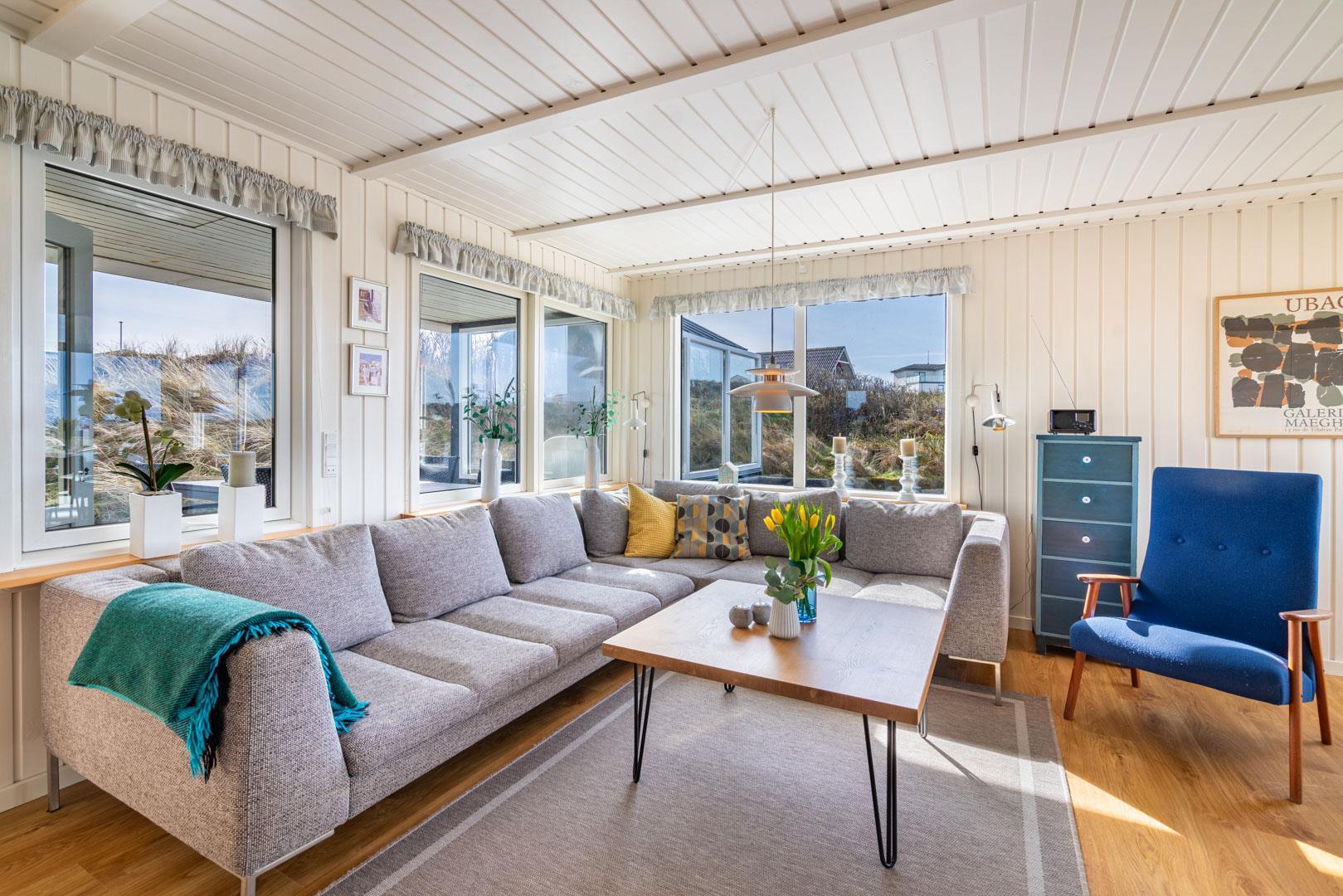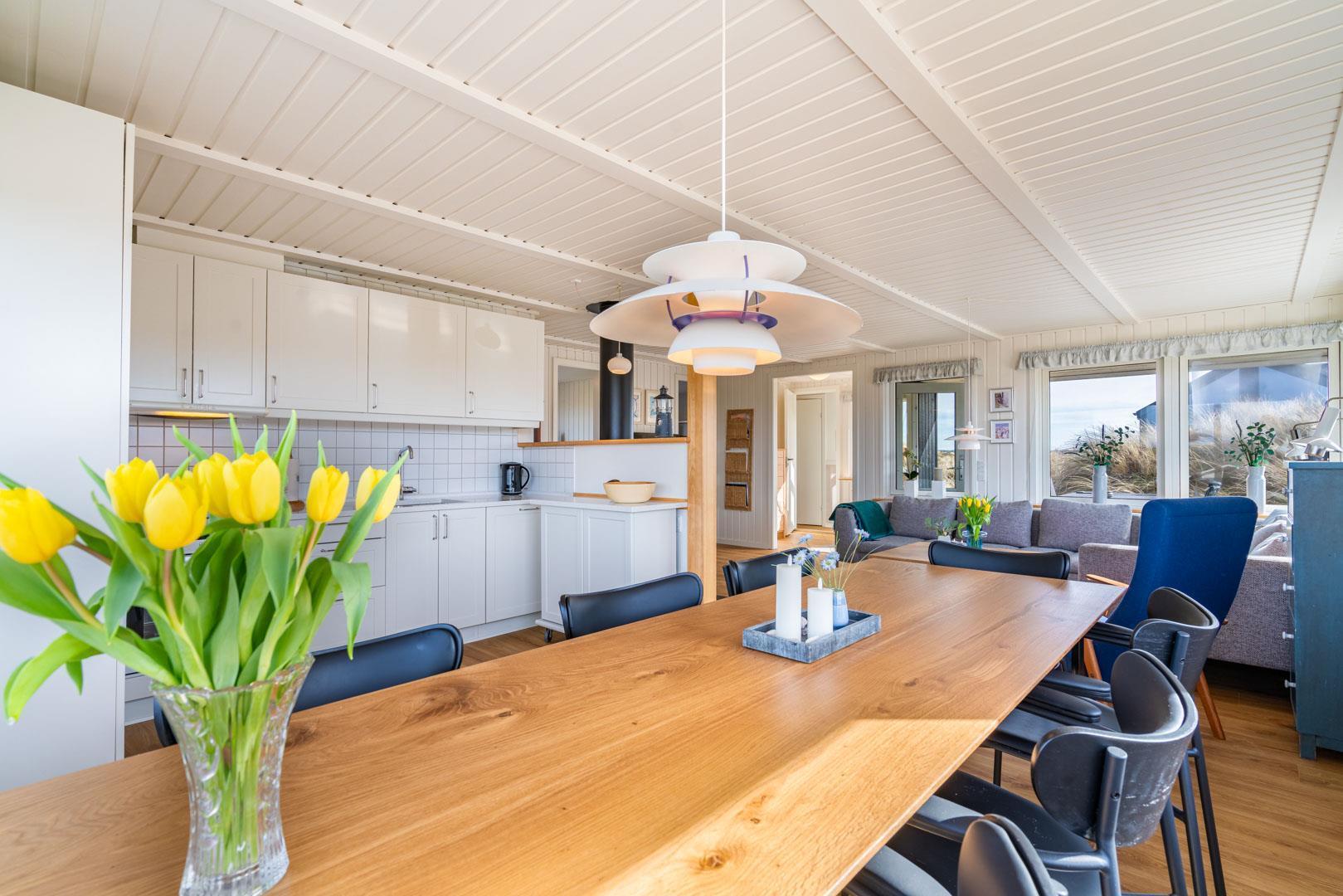 Dette skønne og meget velholdte feriehus med stor garage er beliggende på en af de bedste klitgrunde få hundrede meter fra stranden - med pragtfuld udsigt over havet og området. Huset er smagfuldt og personligt indrettet. Det flotte nye køkken (2021) er i åben forbindelse huset hyggelige stue. Der er tv i alle soveværelser Huset råder over 2 badeværelse med bruser, det ene har spabad. Der er terrasser rundt om hele huset - med gode læ muligheder. Aktivitetsrum i anneks med Playstation 2 og bordfodbold, samt depotrum med ekstra fryser/køleskab og med plads til cykler mm. Huset ligger i gåafstand til Henne Strand hvide sandstrand og byens livlige handelsliv. Skal golfspillet afprøves, er der ikke langt til Henne Golfbanen som både har Pay and Play og en udfordrende 18 hulles bane.