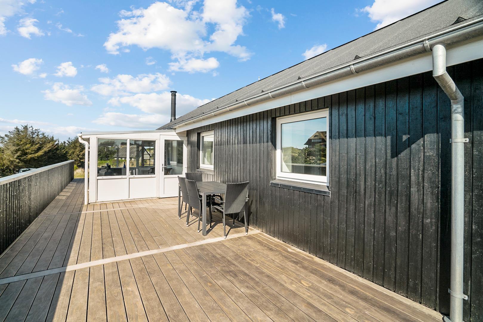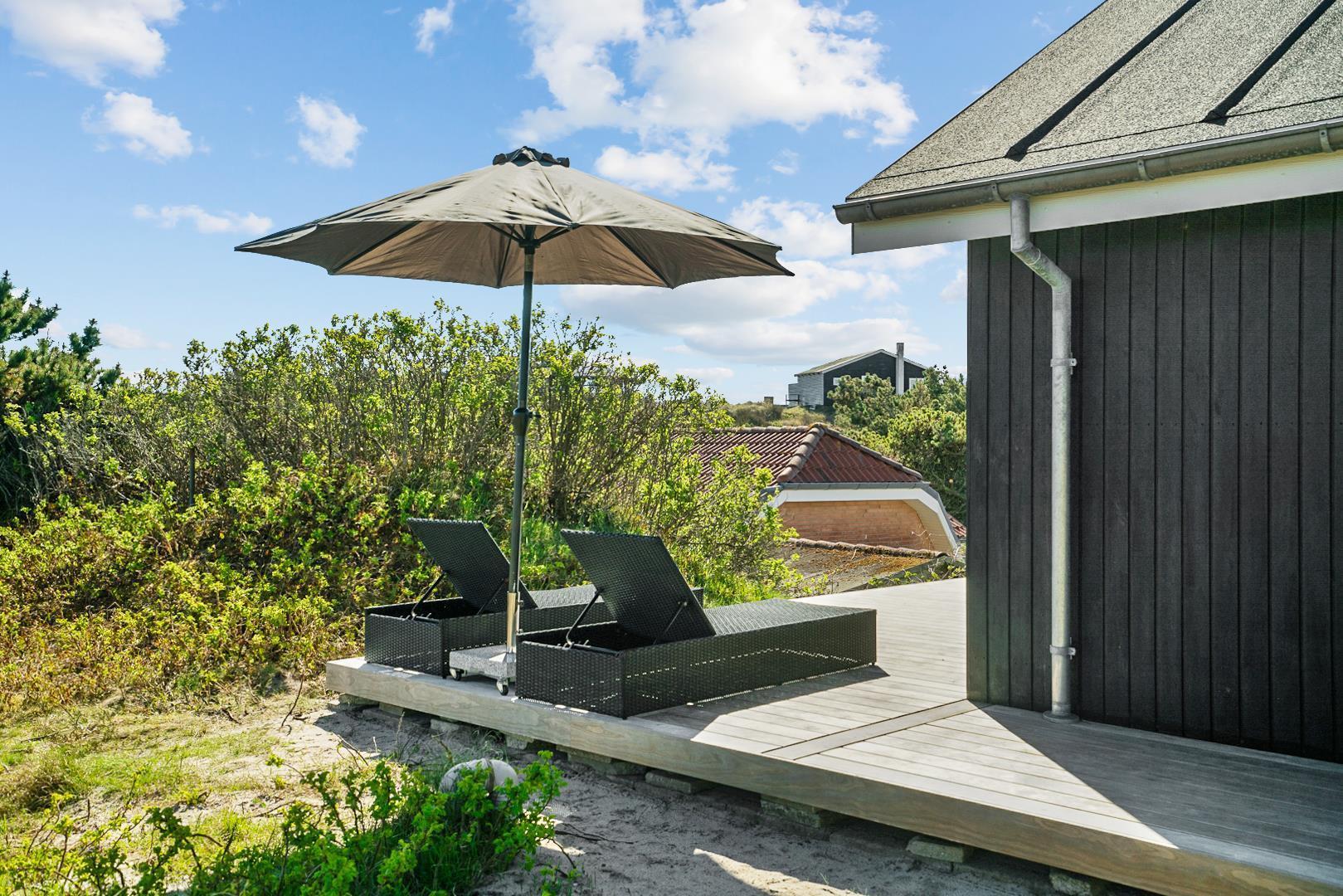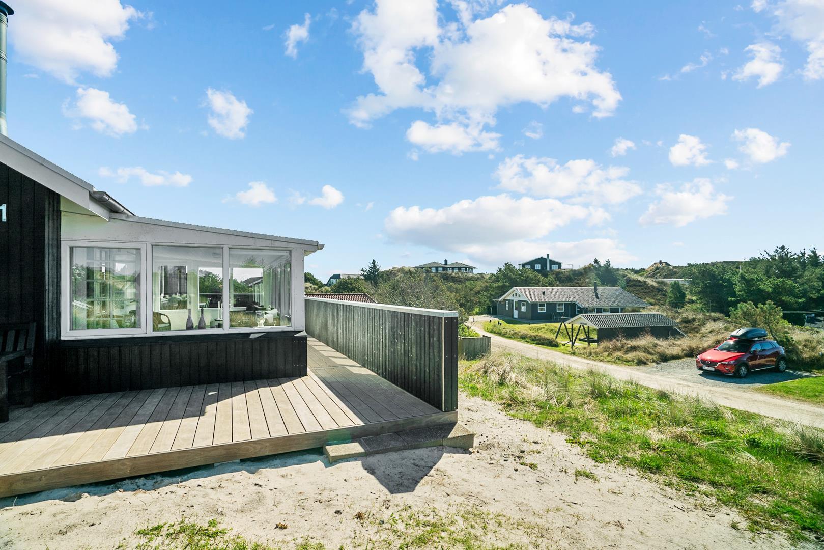 På en skøn klitgrund i rolige omgivelser ligger dette dejligt lyse feriehus. Huset er fremstår overalt meget velpasset og indrettet med gode møbler. Godt køkken som er kombineret med stuen. Fra den dejlige udestue kan udsigten over området nydes eller man kan finde en lækrog på den skønne træterrasse der er omkring huset.