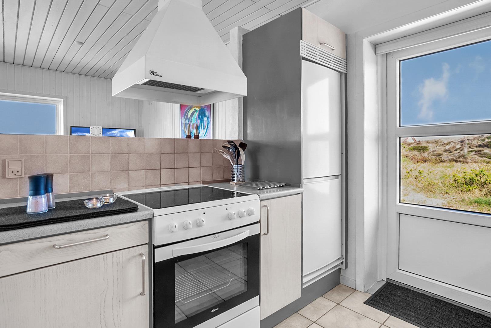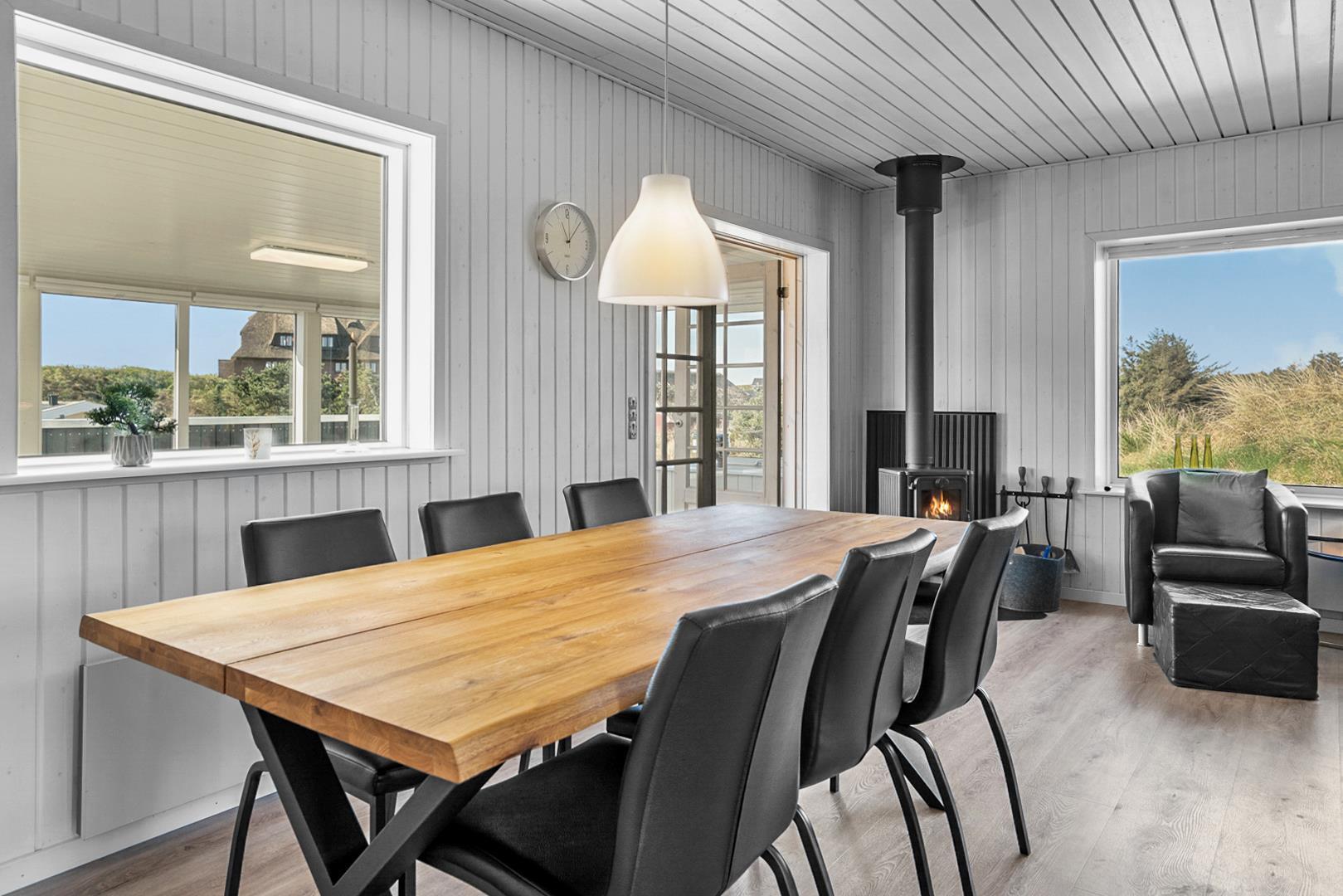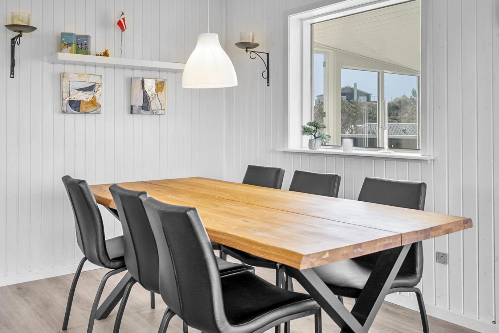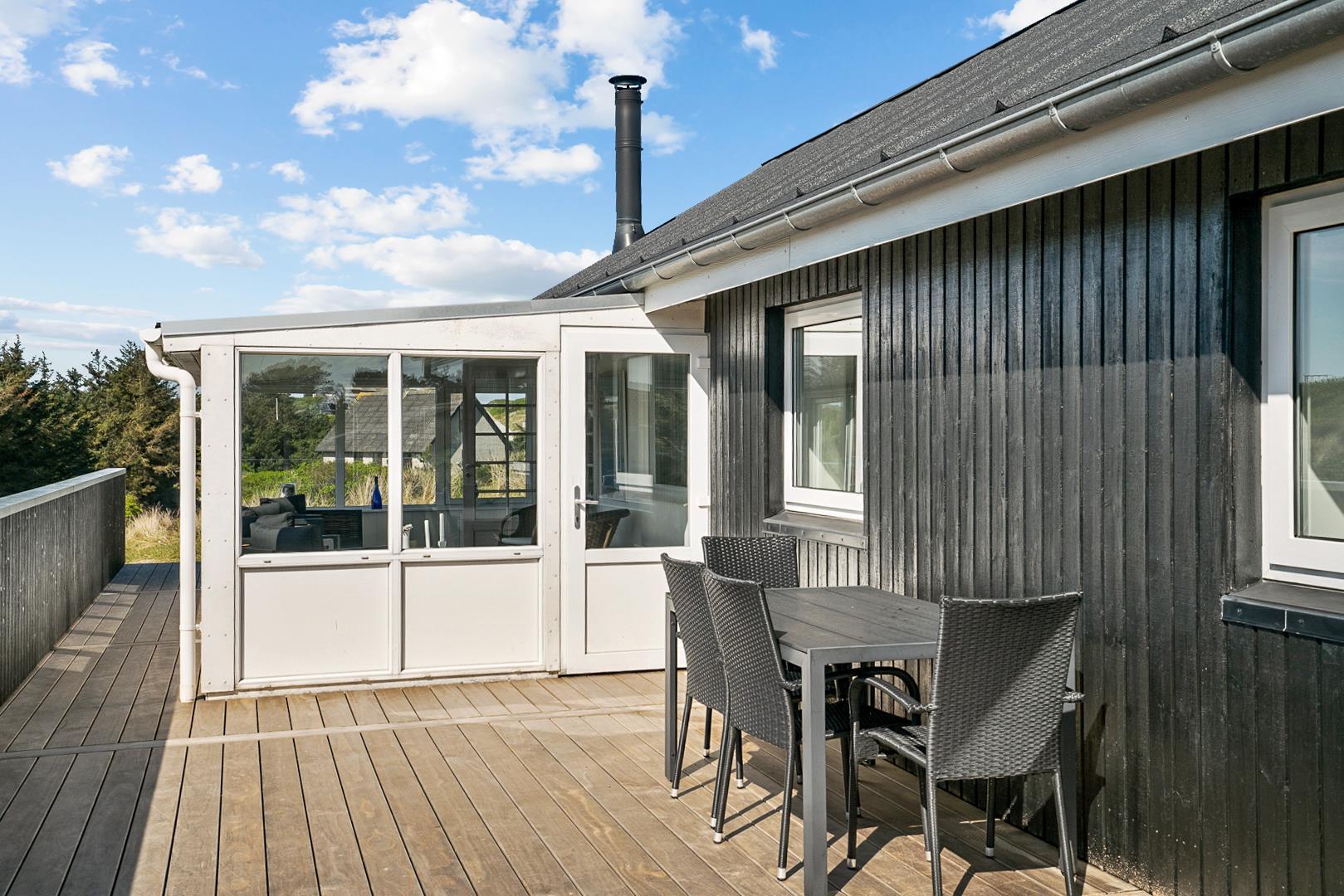 På en skøn klitgrund i rolige omgivelser ligger dette dejligt lyse feriehus. Huset er fremstår overalt meget velpasset og indrettet med gode møbler. Godt køkken som er kombineret med stuen. Fra den dejlige udestue kan udsigten over området nydes eller man kan finde en lækrog på den skønne træterrasse der er omkring huset.