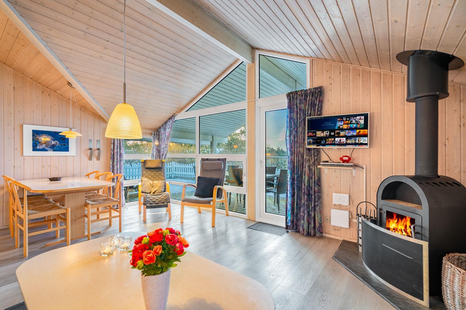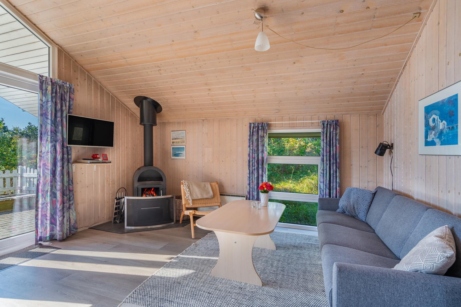 Velkommen til dette charmerende og velholdte sommerhus, beliggende i rolige og naturskønne omgivelser ved enden af en blind vej, hvilket giver en følelse af fred og privatliv. Den indbydende stue med brændeovn tilføjer varme til de køligere måneder og skaber den perfekte ramme for hyggelige stunder. Fra stuen er der direkte udgang til en delvis overdækket terrasse, perfekt til både afslapning og måltider udendørs.