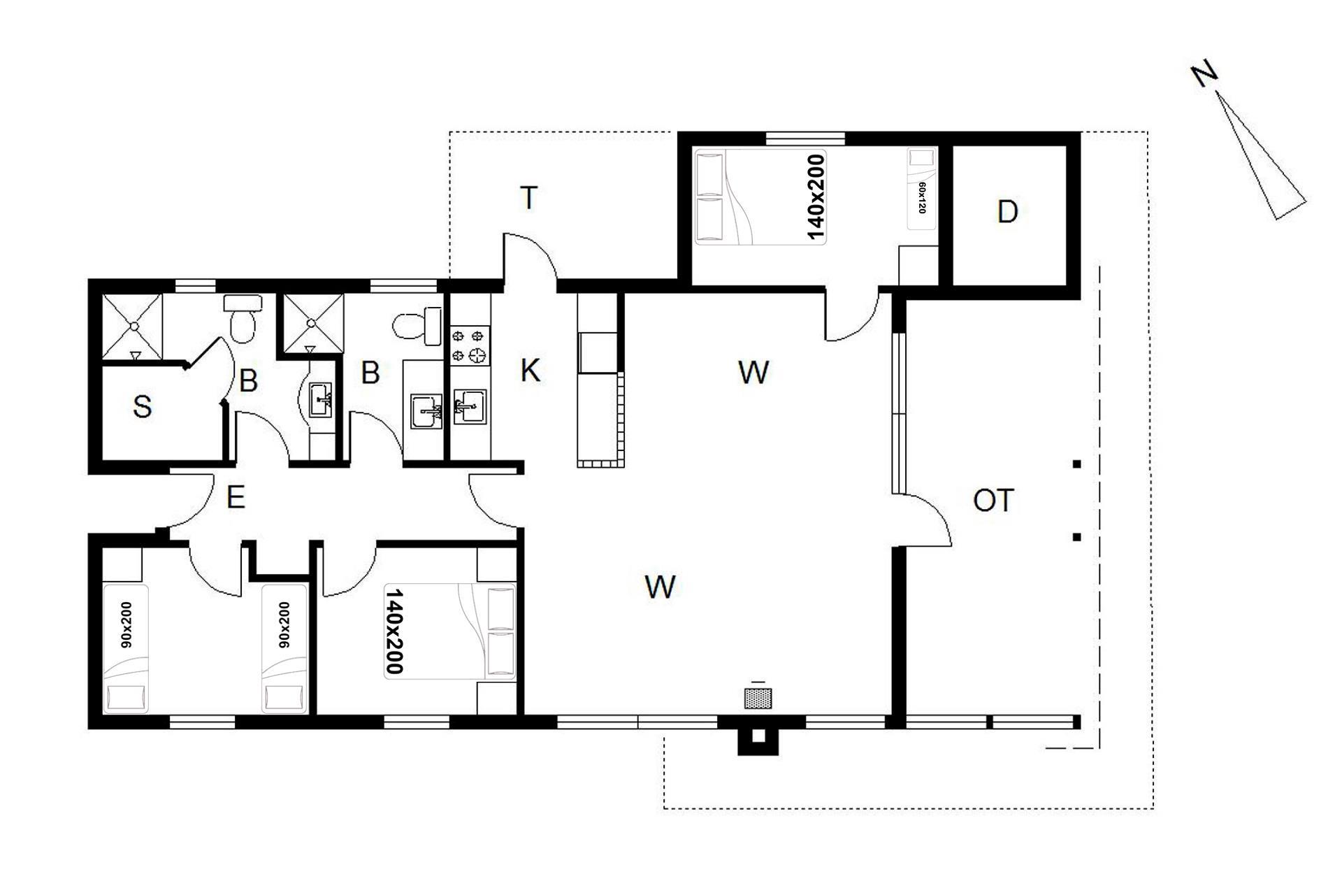 Sommerhuset rummer to badeværelser, hvoraf det ene har direkte adgang til sauna – perfekt til wellness og afslapning efter en aktiv dag ved havet. Det velindrettede køkken-alrum er udstyret med brændeovn og energivenlig varmepumpe, og herfra er der direkte udgang til en delvist overdækket træterrasse.