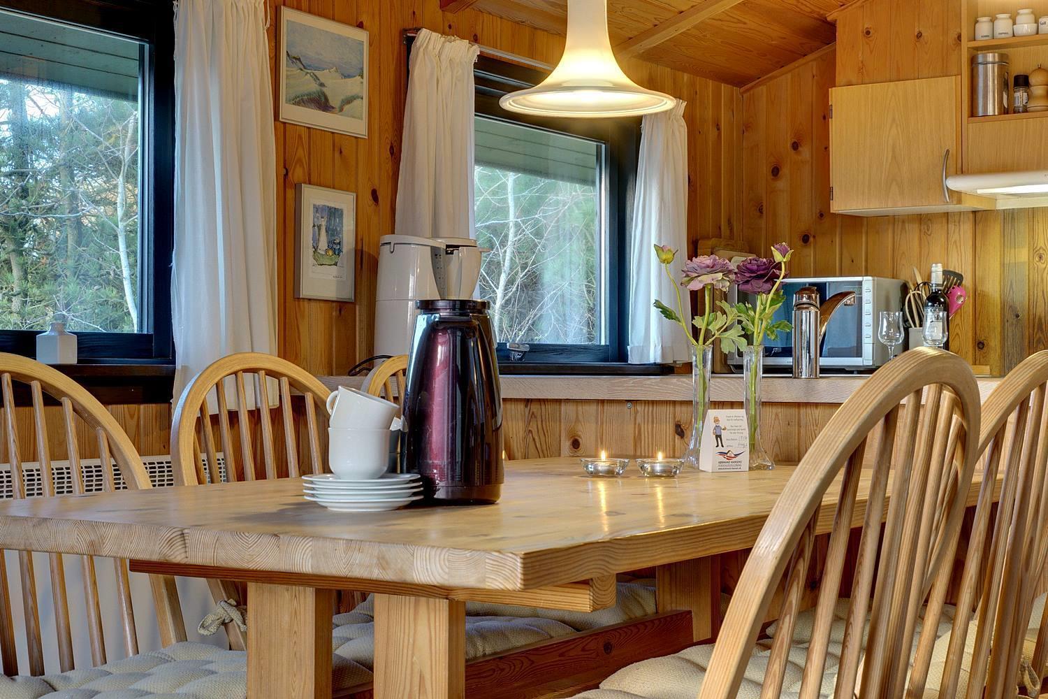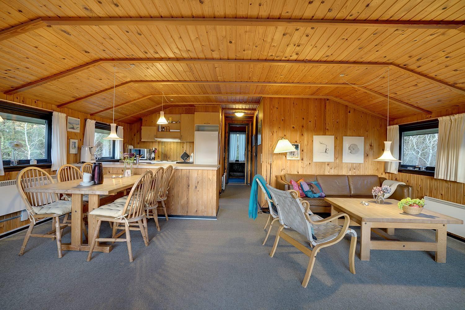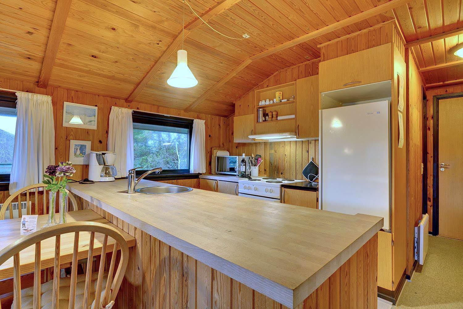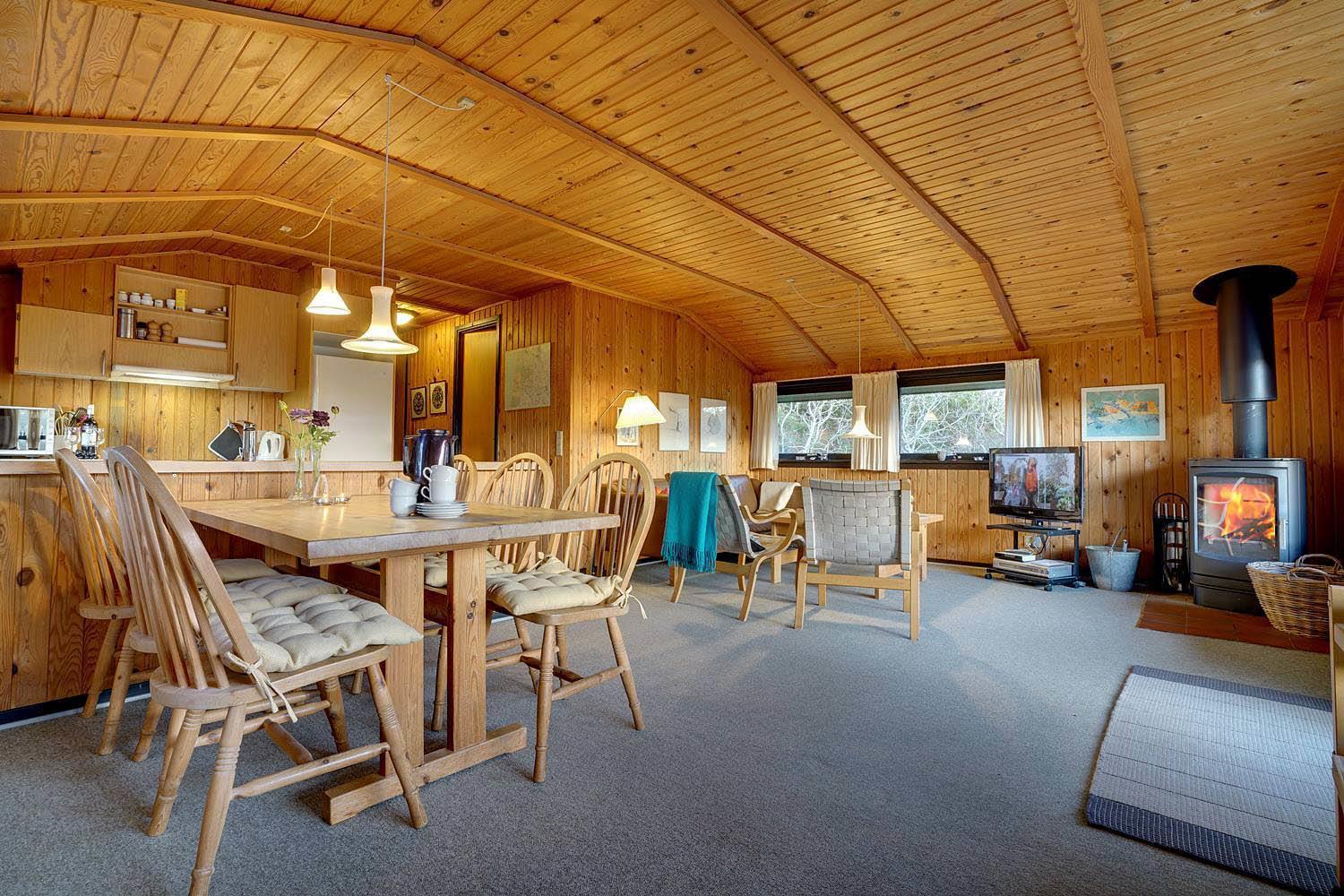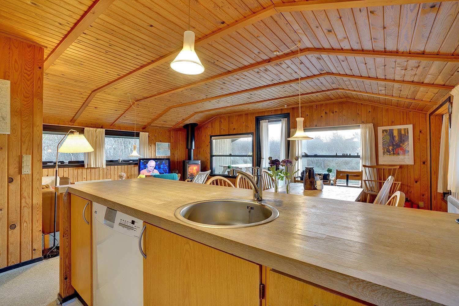 Hyggeligt sommerhus på lys naturskøn grund, med udsigt iver strandklitterne. Der 50 m til en natursti til stranden og 400 m til stranden. Der er 3. terrasser og derfor altid mulighed for sol. Køkkenet er i forbindelse med stuen, der har alkove, brændeovn og udgang til overdækket terrasse. Badeværelse i forbindelse med sauna.