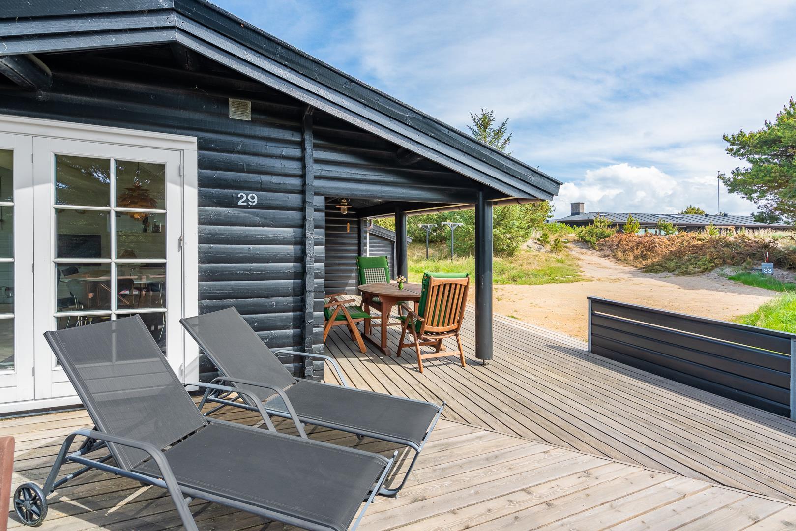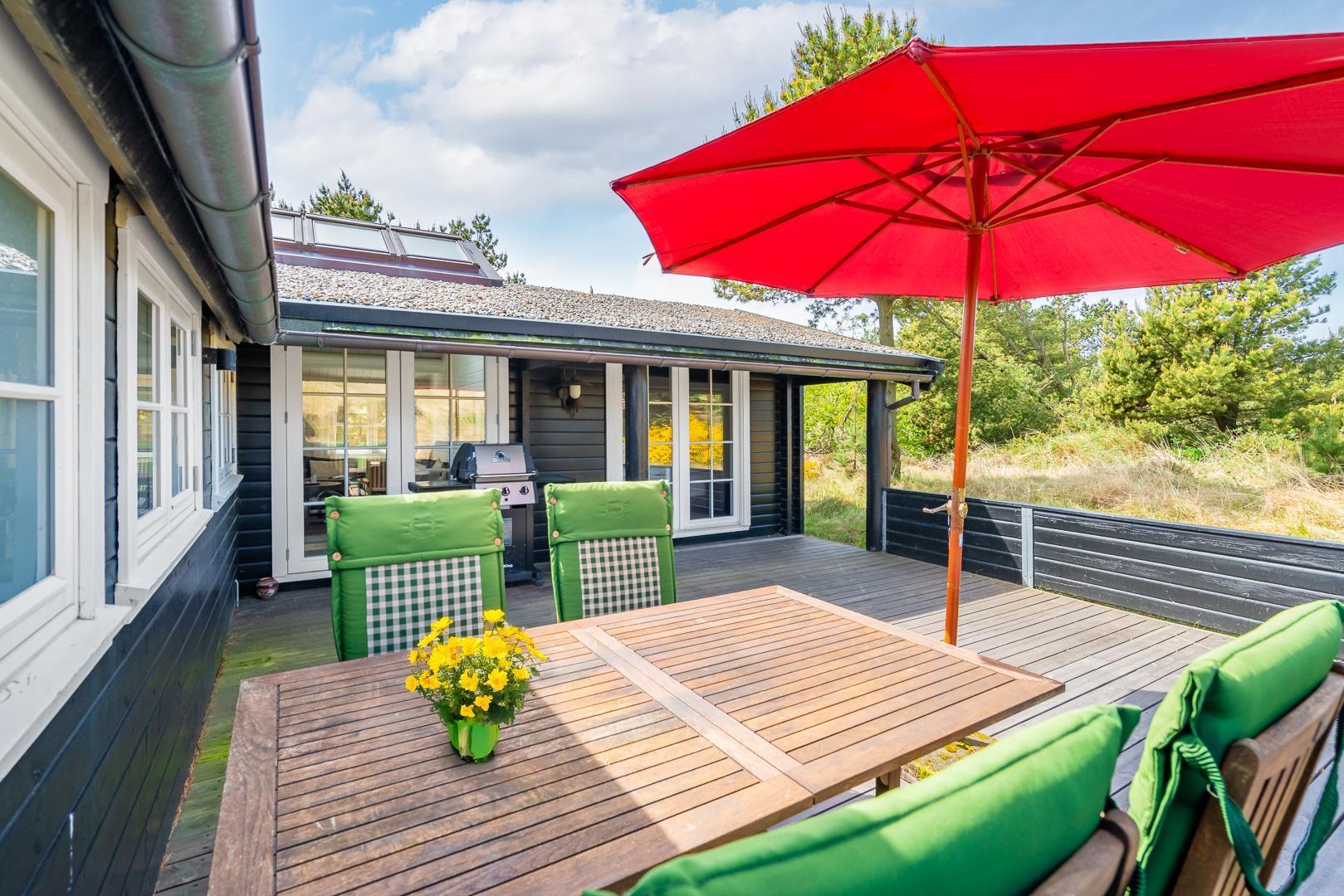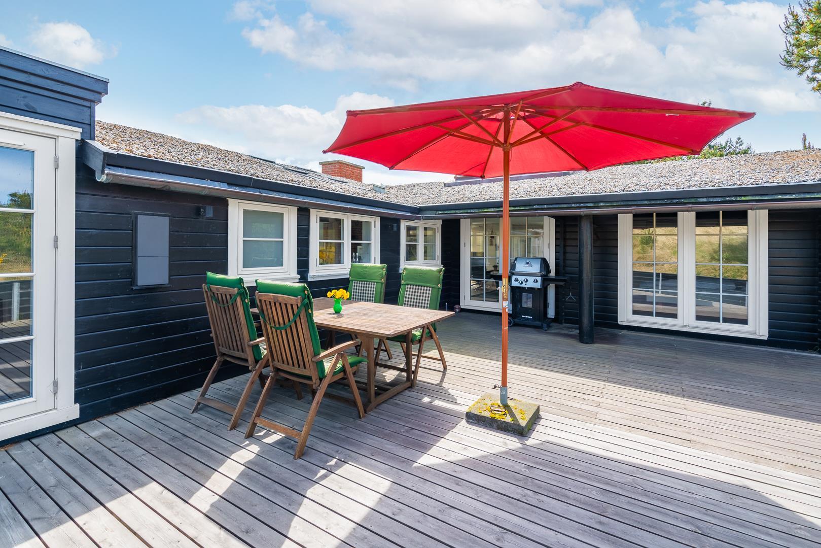 Husets terrasser fortjener særlig opmærksomhed – her er der rig mulighed for at finde sol og læ hele dagen, mens naturens ro og det fredelige hedelandskab danner en smuk og afslappende kulisse.