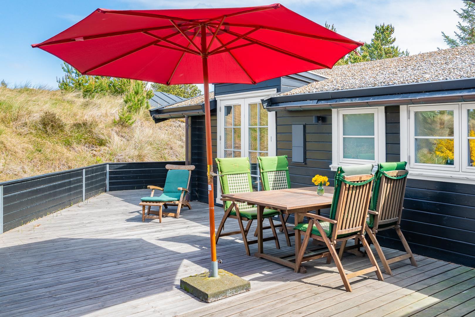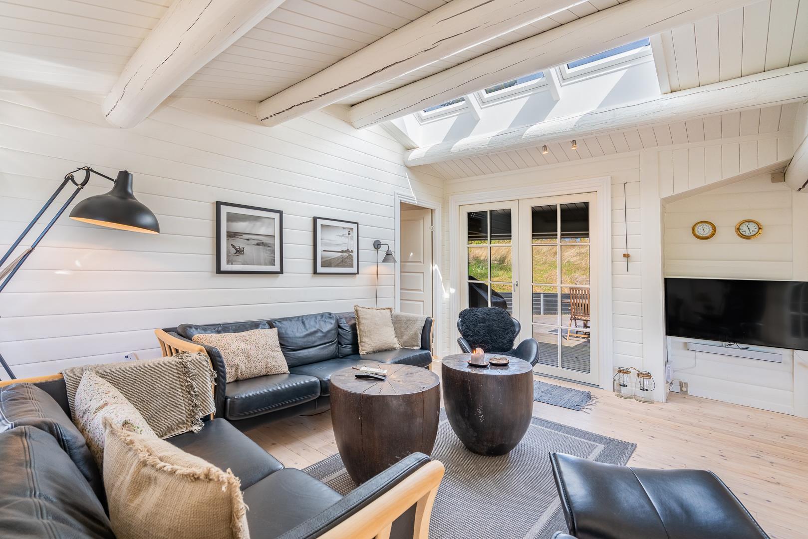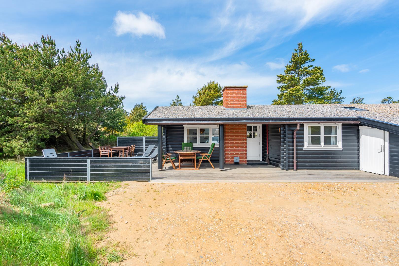På en af Henne Strands mest naturskønne og kuperede grunde, direkte op til fredet hedeareal og med flot udsigt til klitterne, ligger dette skønne og hyggelige bjælkehus – et perfekt sted til ro, nærvær og ægte feriestemning.