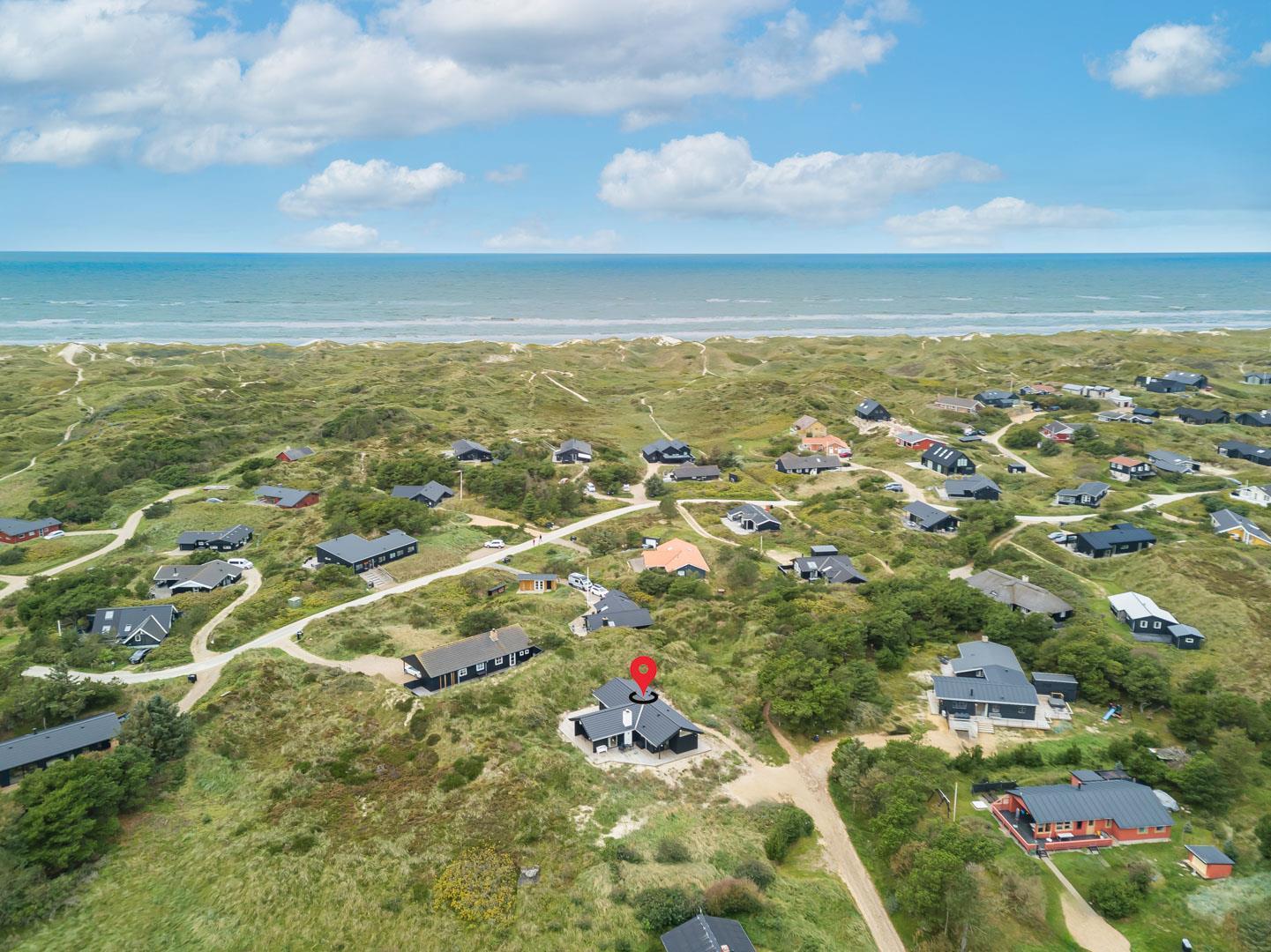 Sommerhuset ligger i gå afstand fra Henne Strand by med de gode handelsmuligheder, samt flere restauranter og den brusende Vesterhav.