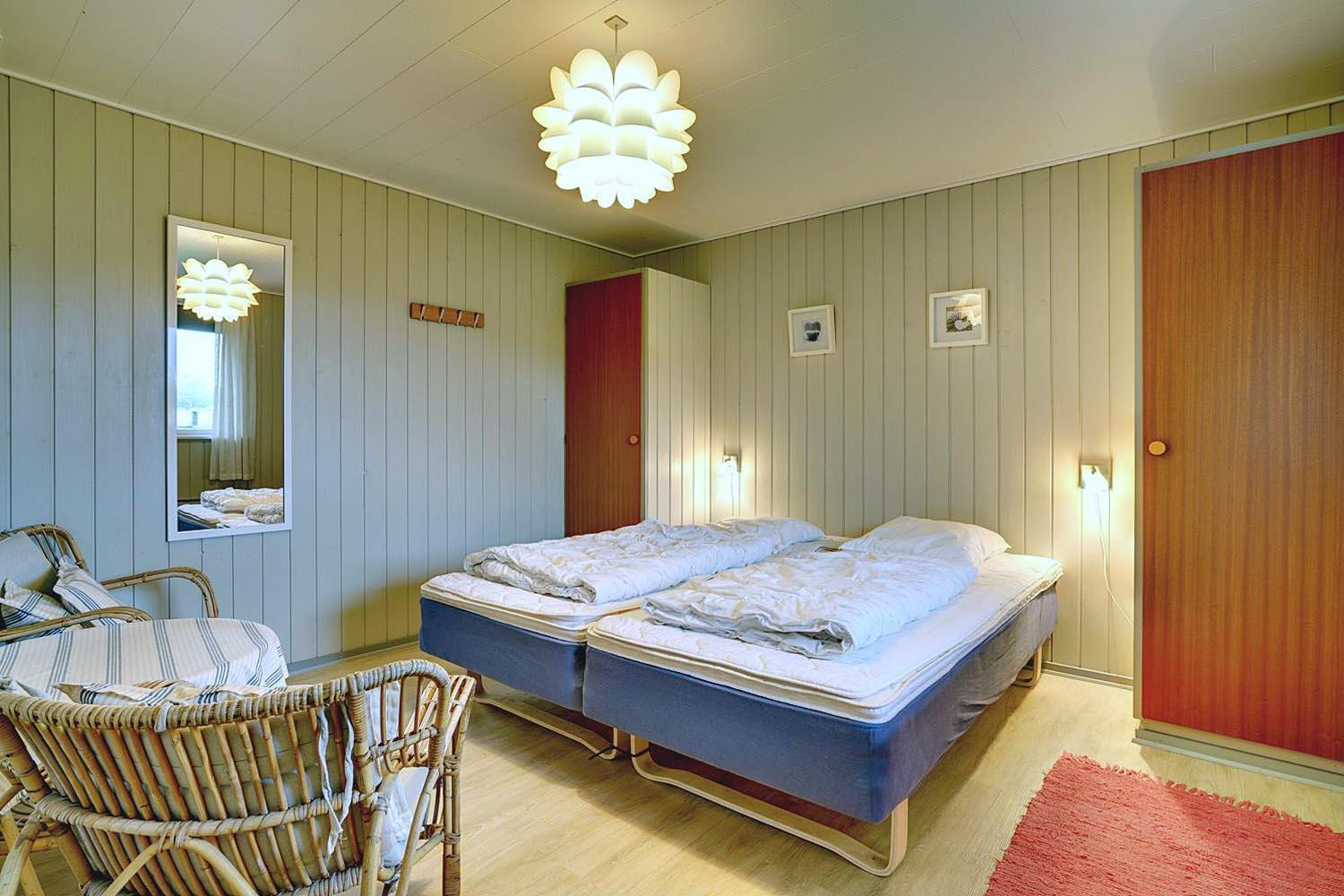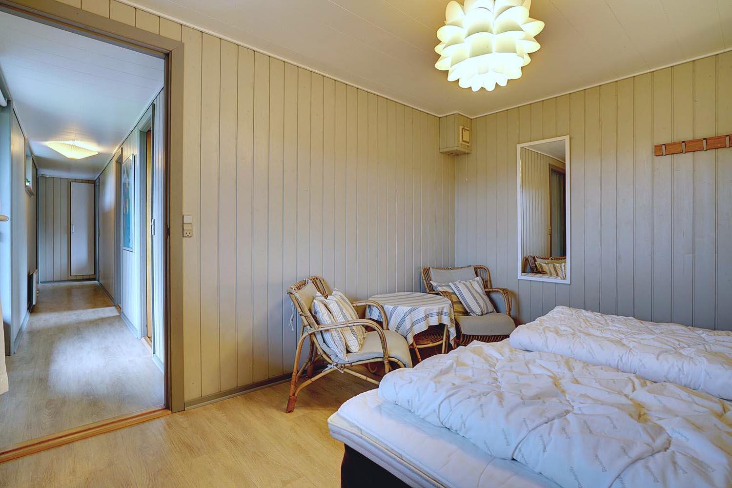 Sengestørrelse: 1 dobbeltseng med 2 madrasser 90 x 200 cm + 1 dobbeltseng 140 x 200 cm + 1 enkeltseng 80 x 190 cm + 1 køjeseng 80 x 190 cm.