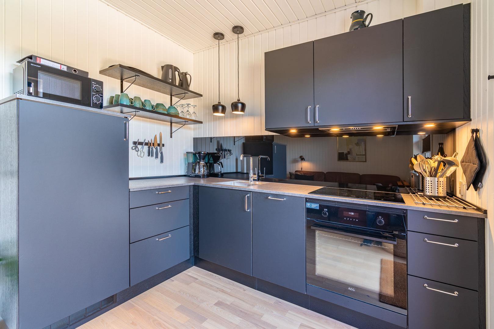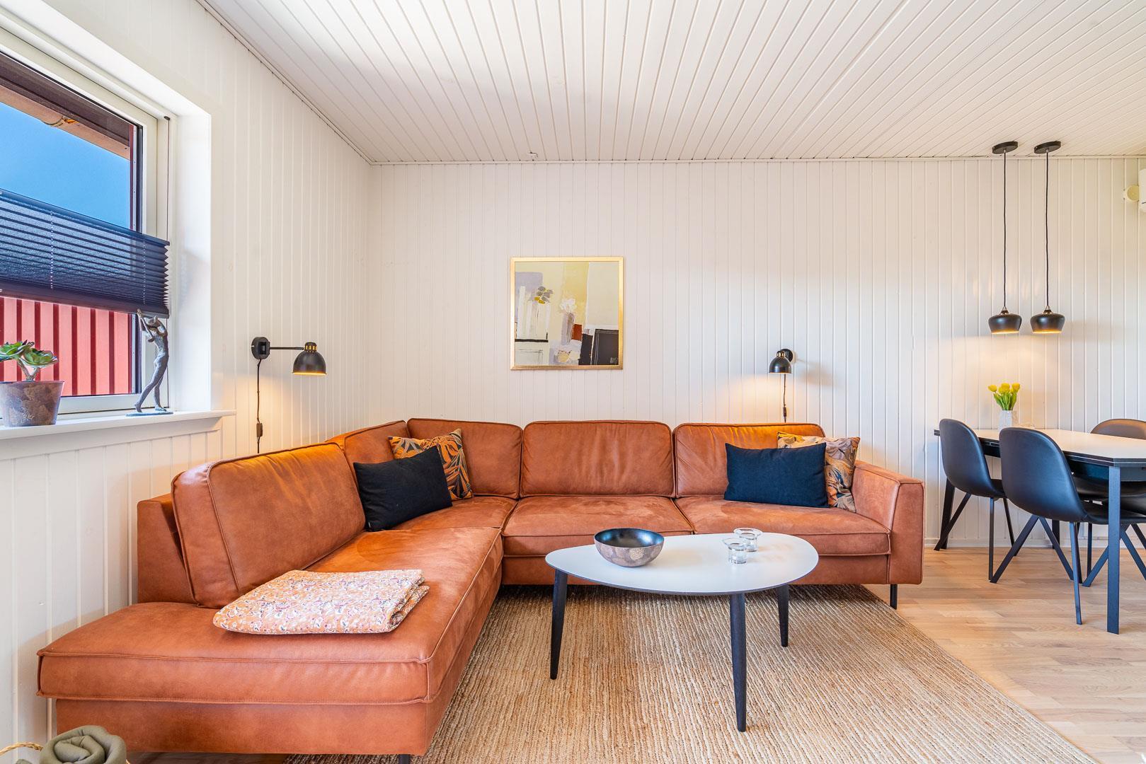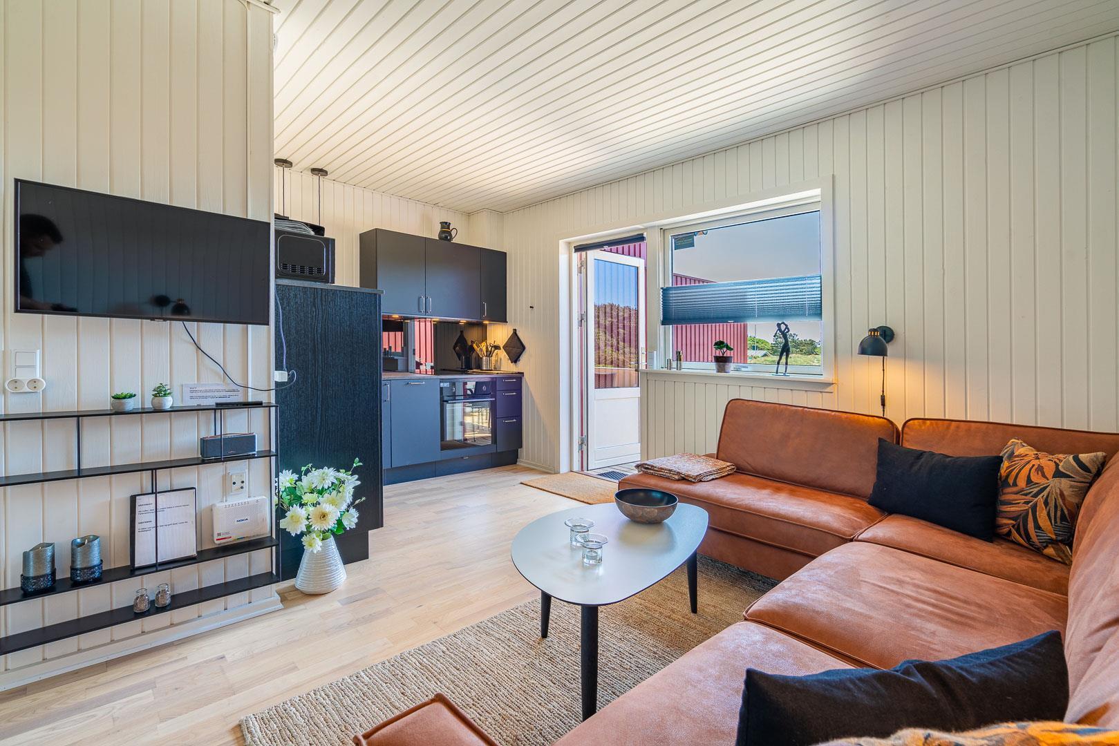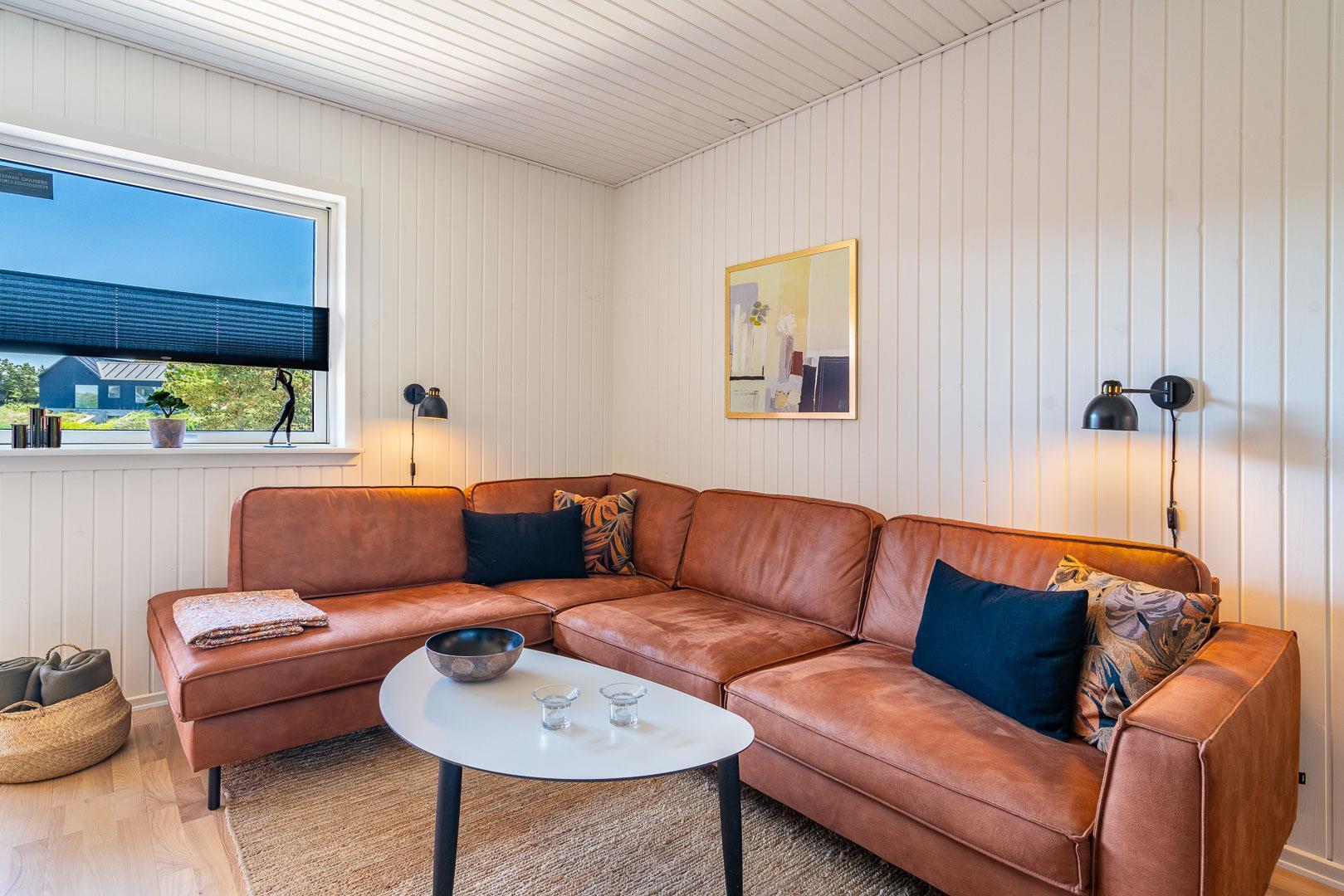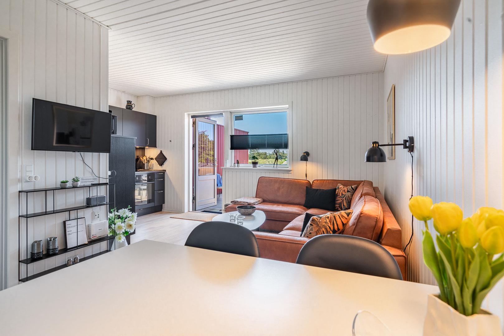 Lys og moderne bungalowlejlighed kun 300 meter fra Vesterhavet med to soveværelser og sydvestvendt terrasse.