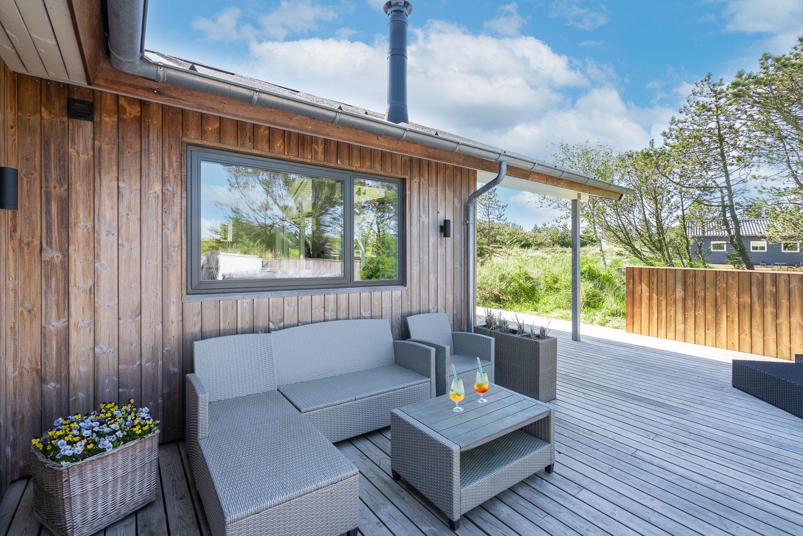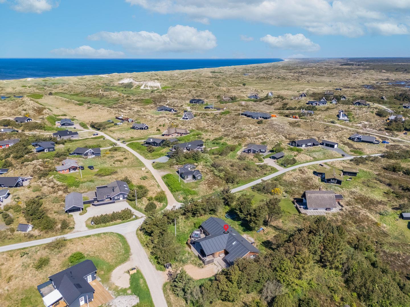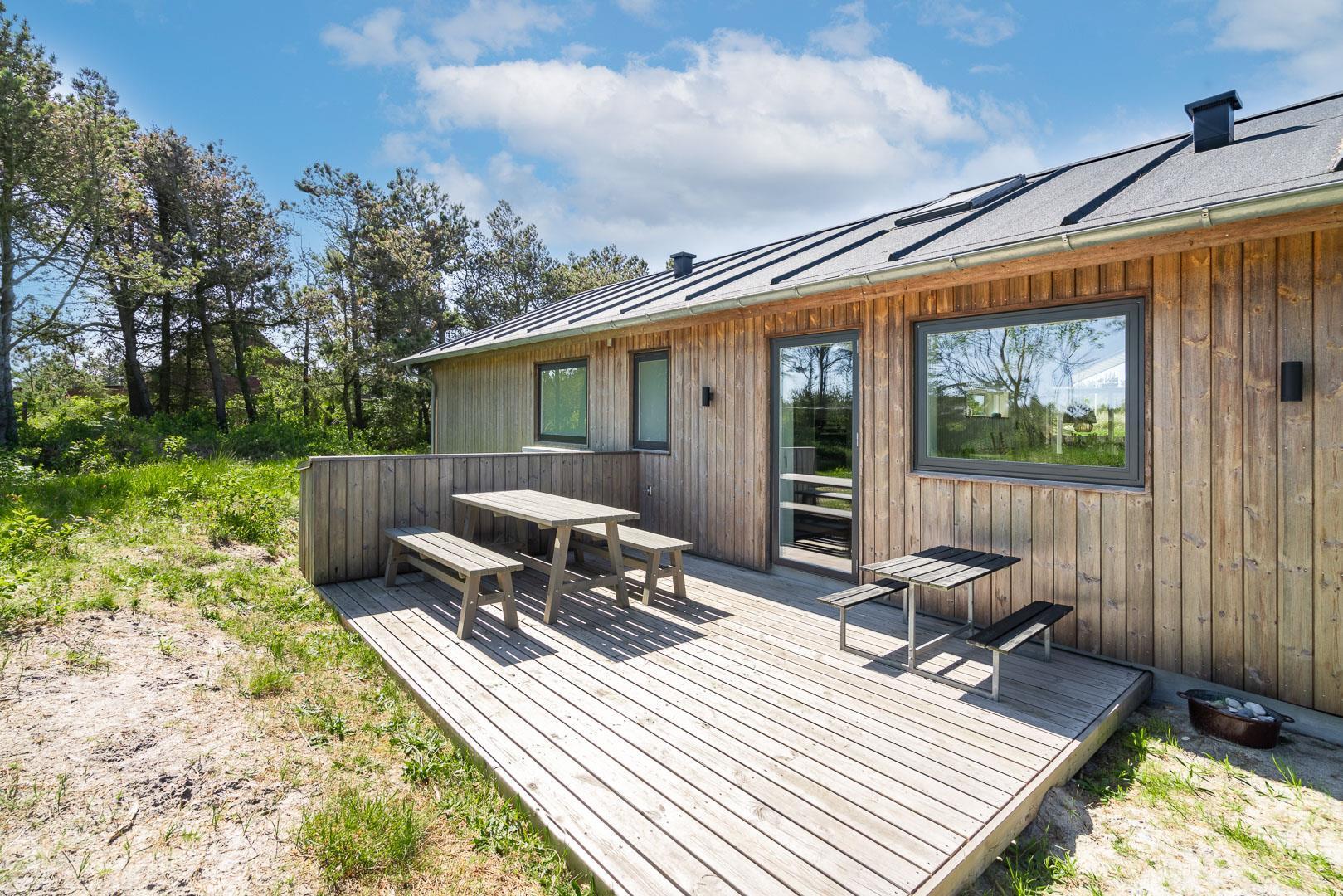 Huset har en skøn beliggenhed på en læfuld klitgrund ikke langt fra Lyngbos Hede og 10 minutters rask gå tur, så er man på stranden.