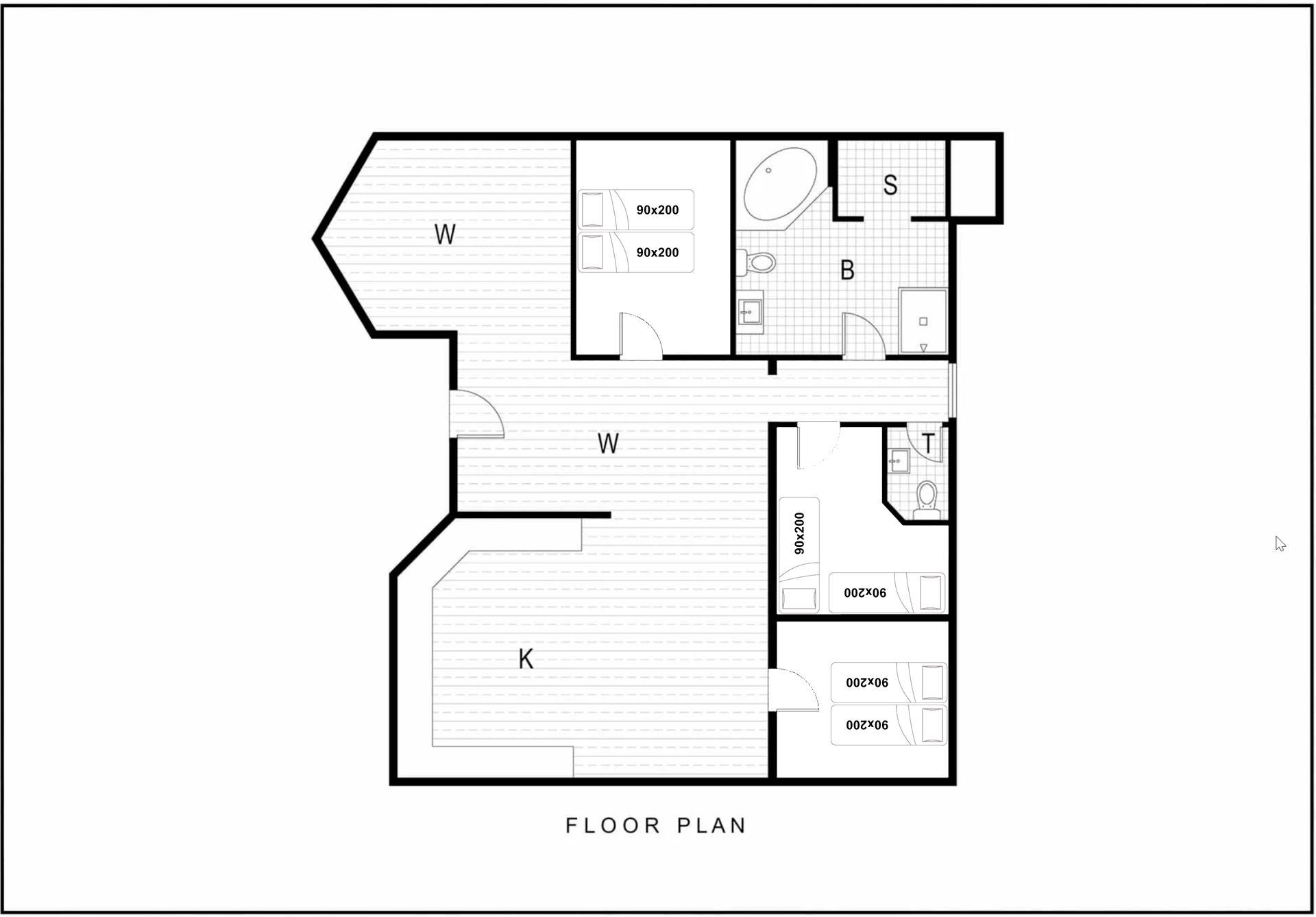 Sengestørrelse: 2 dobbeltsenge med 2 madrasser 90 x 200 cm + 2 enkeltsenge 90 x 200 cm.